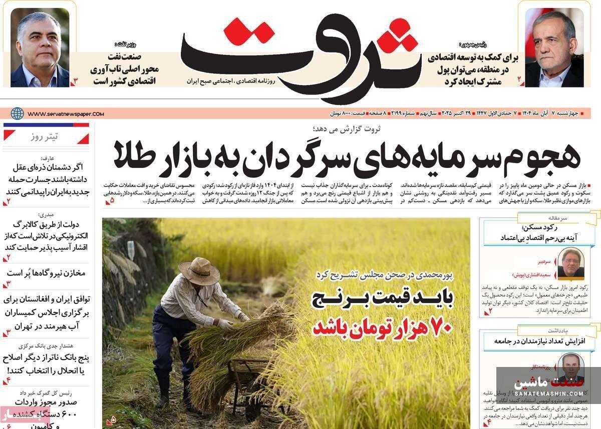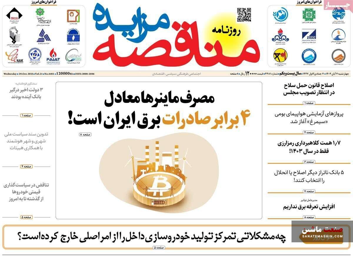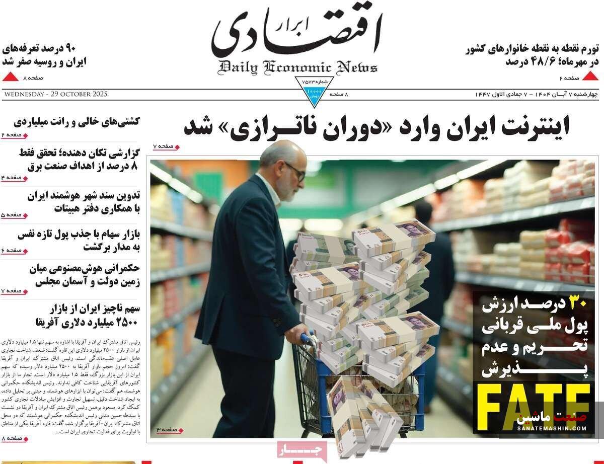 صفحه نخست روزنامه های اقتصادی 29 مهر 1404