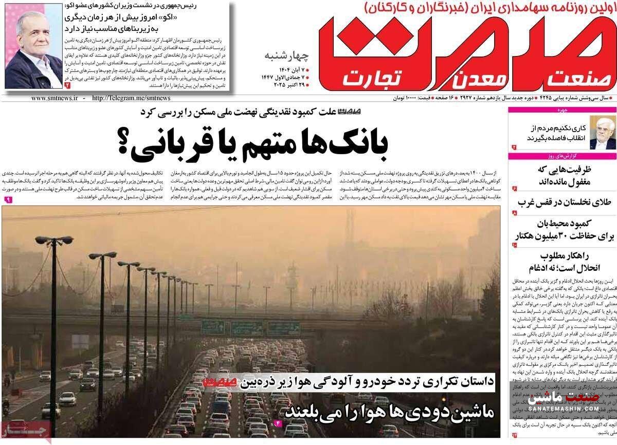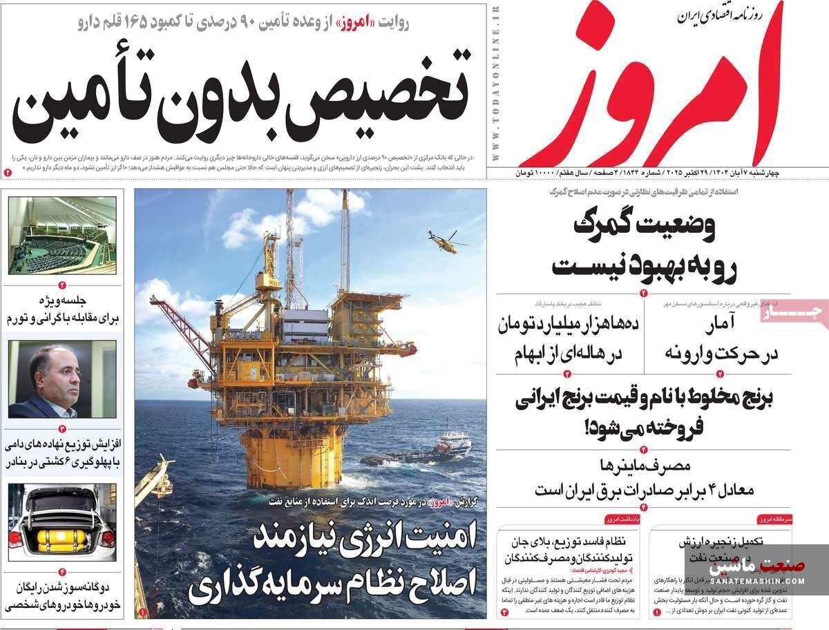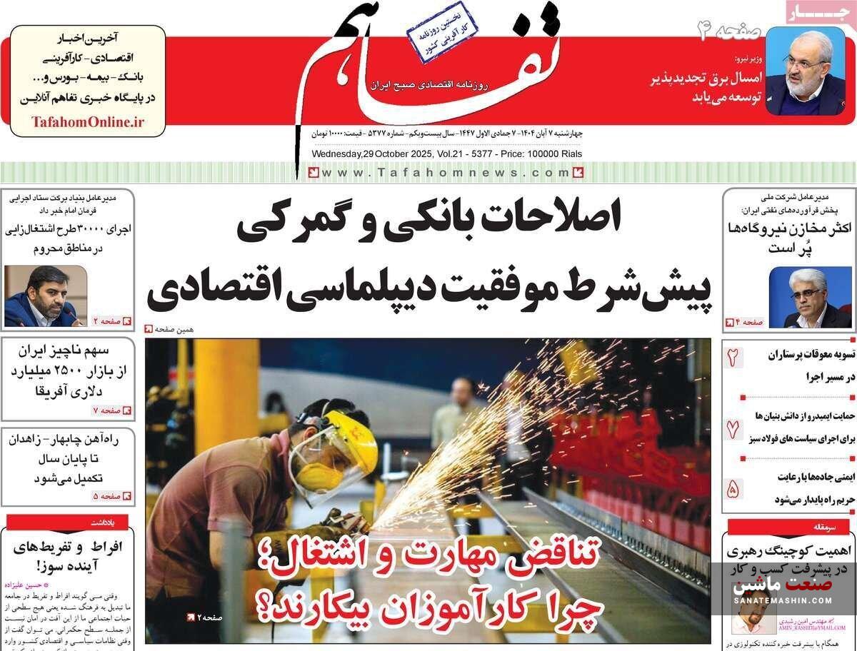 صفحه نخست روزنامه های اقتصادی 29 مهر 1404