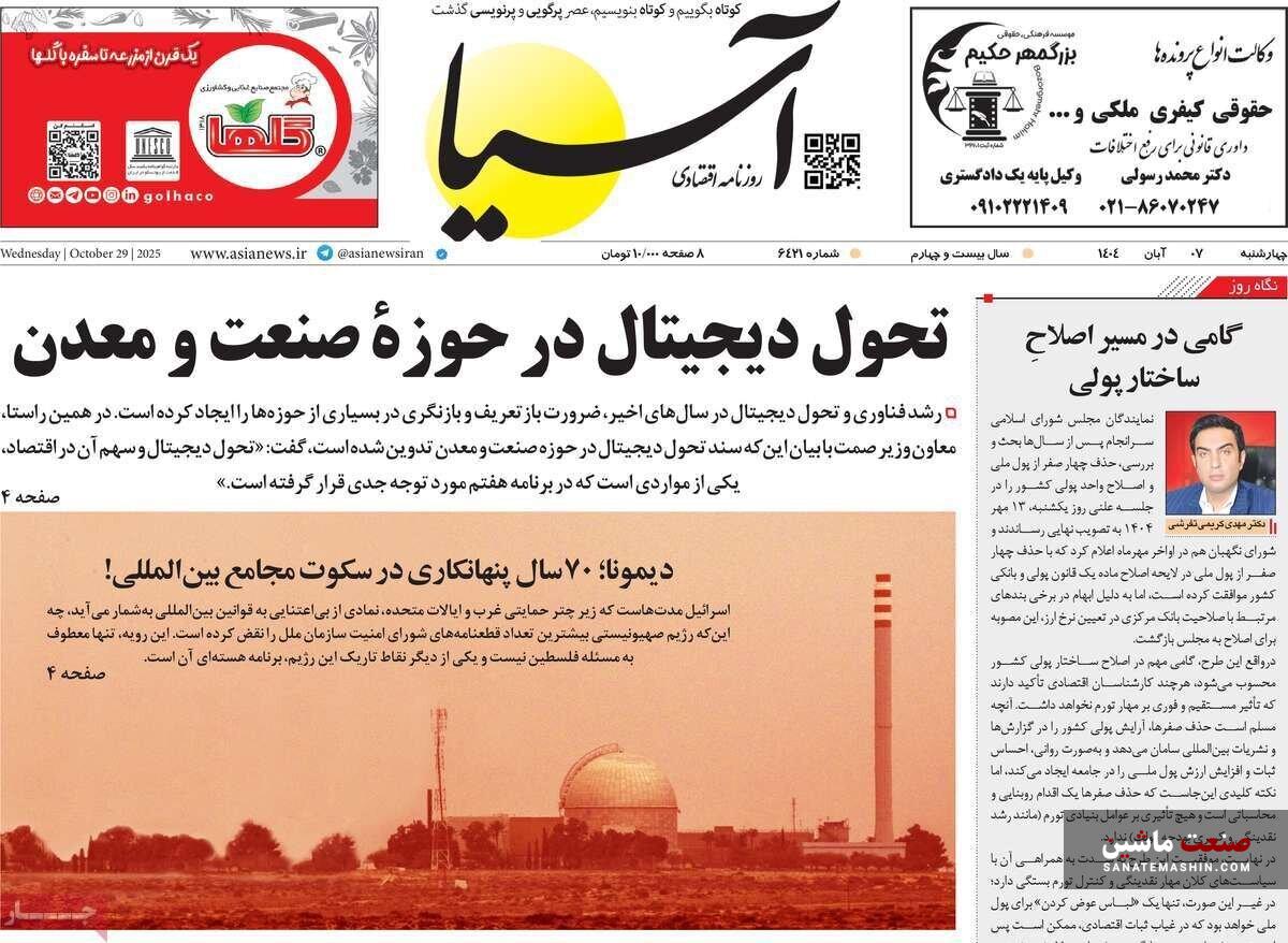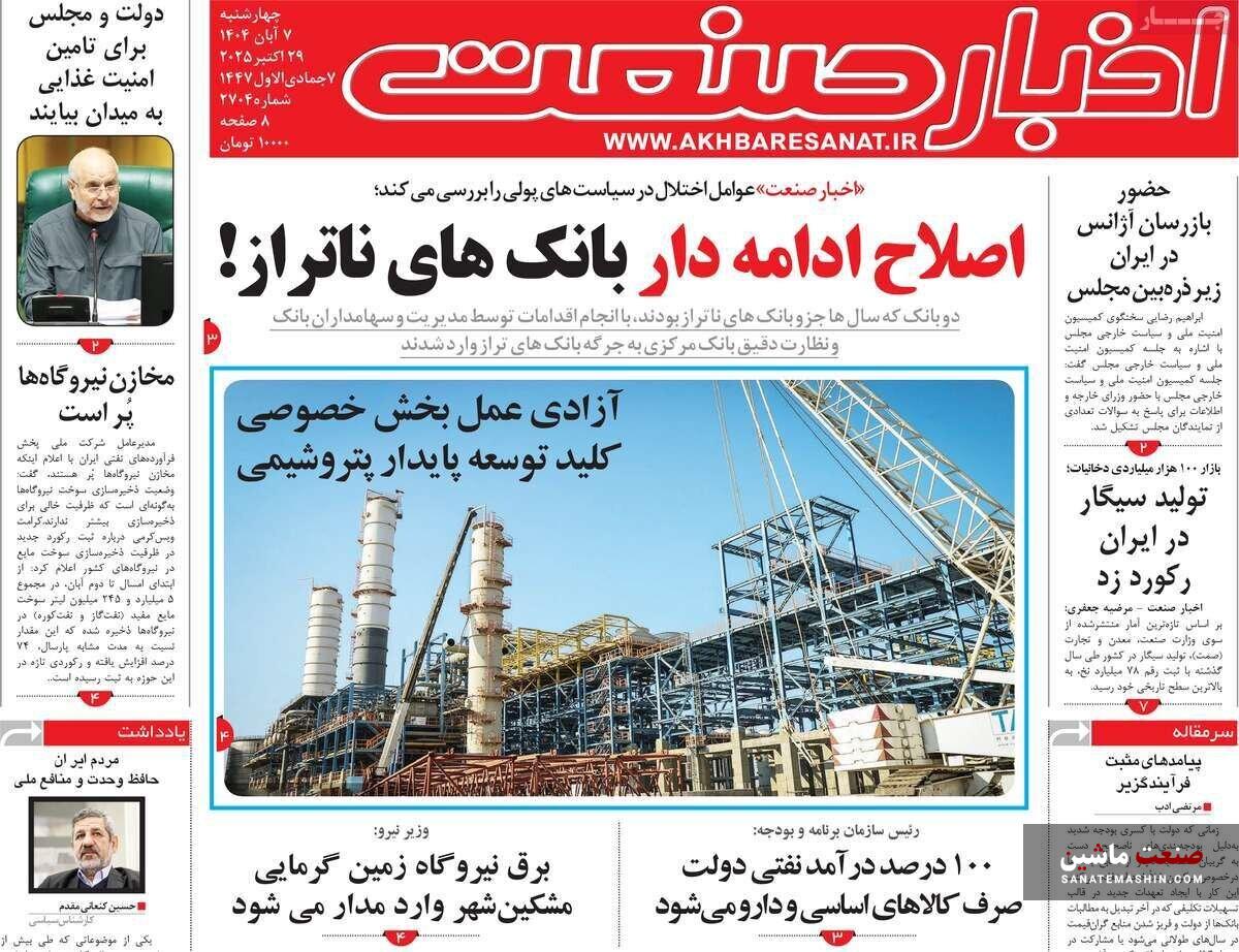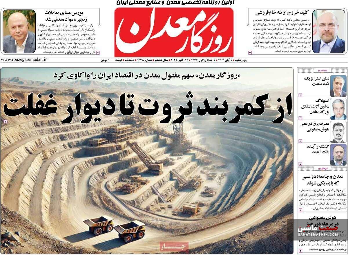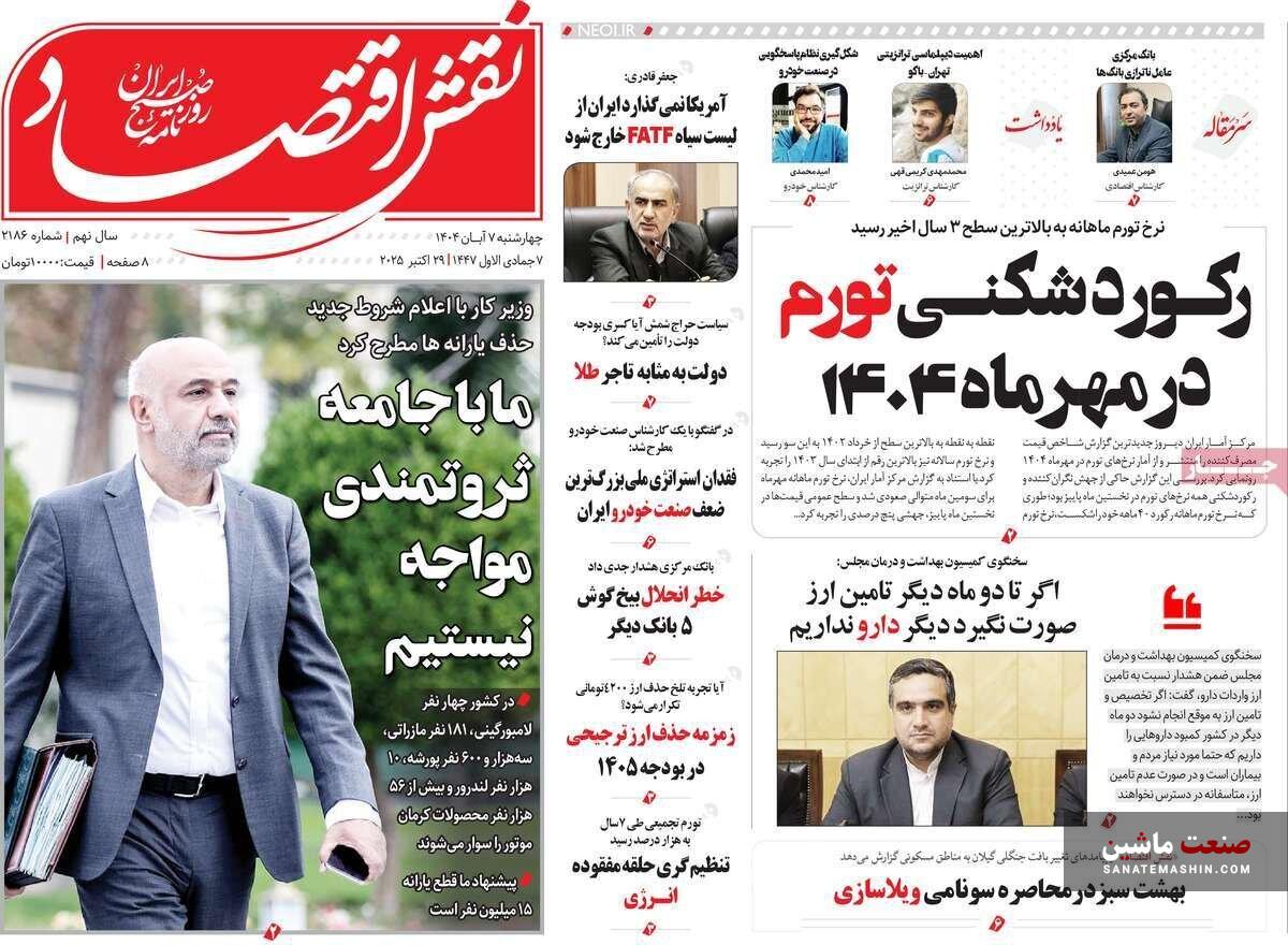 به گزارش صنعت ماشین ؛ صفحه نخست روزنامه های اقتصادی 7 آبان 1404 به شرح زیر است: