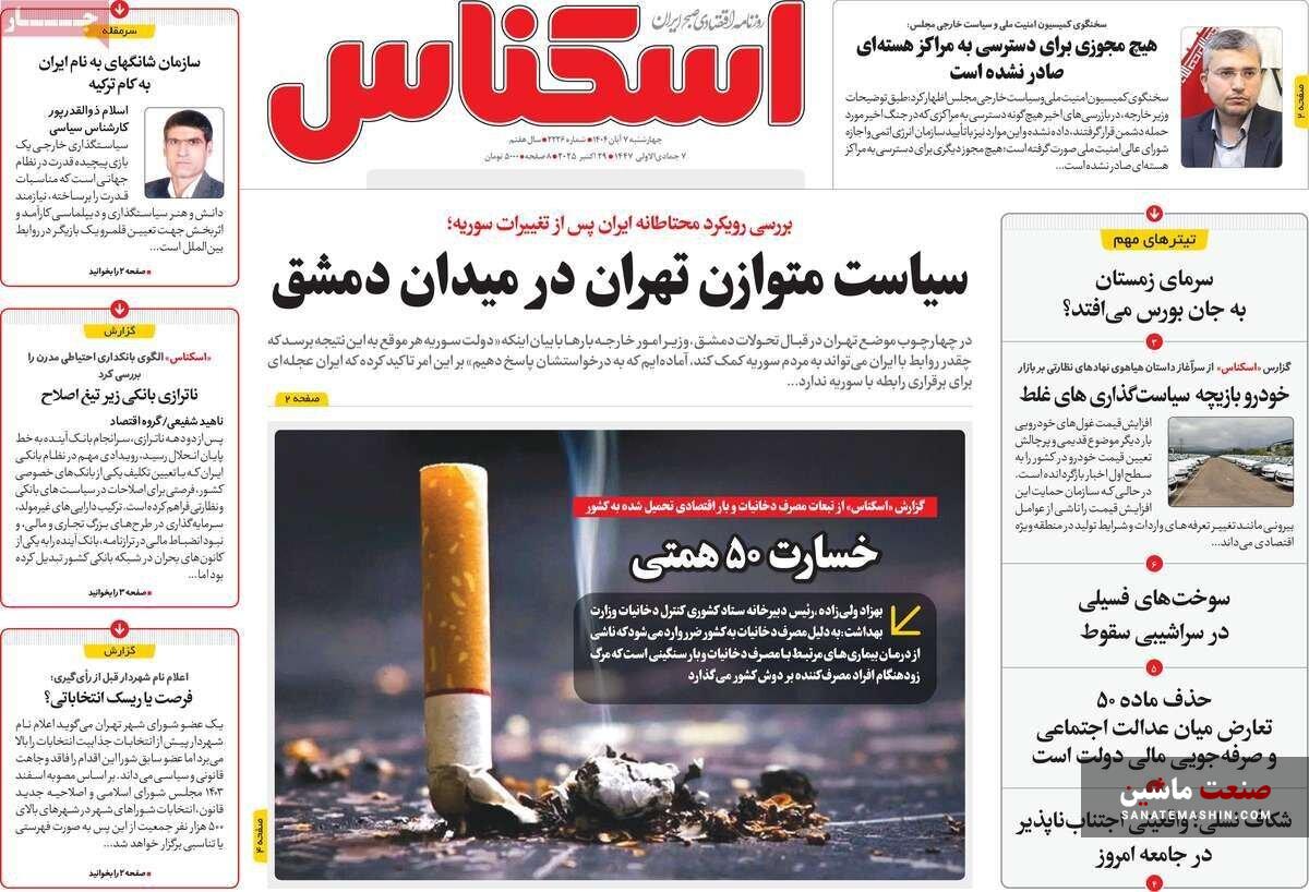 صفحه نخست روزنامه های اقتصادی 3 آبان 1404