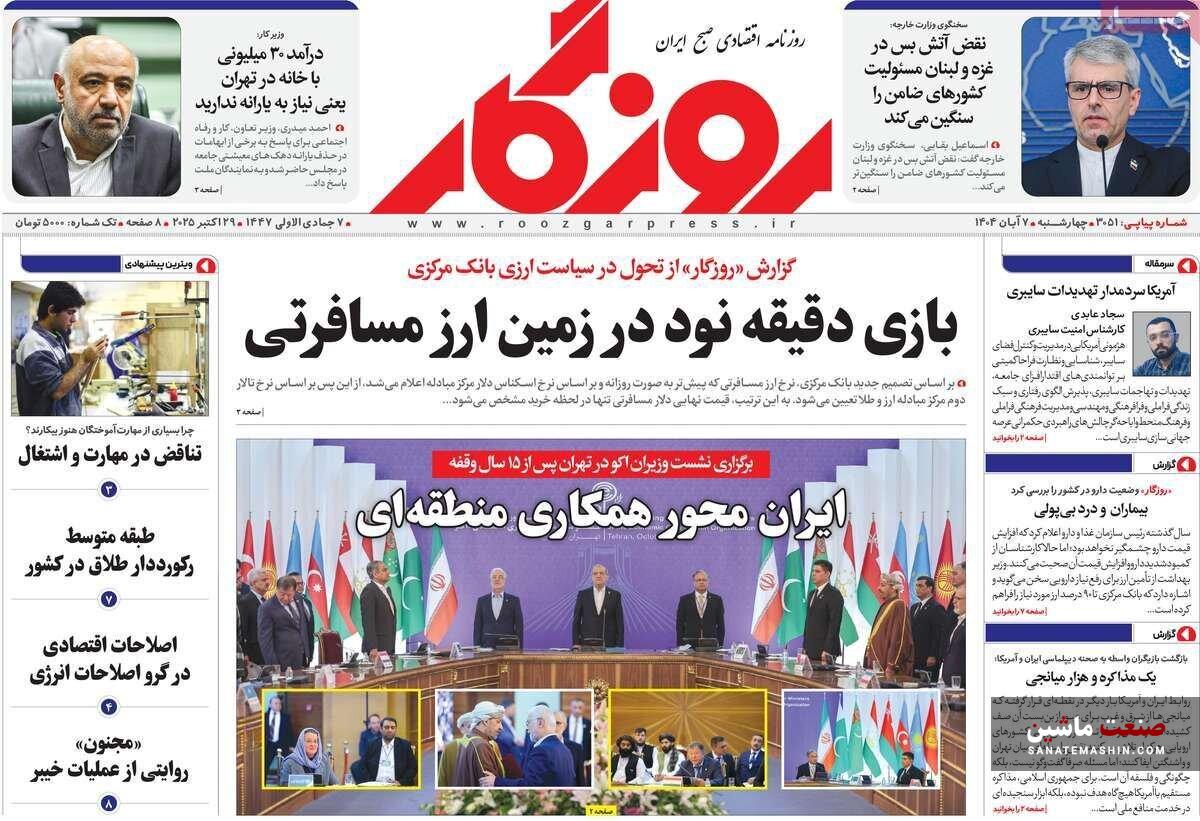 صفحه نخست روزنامه های اقتصادی 5 آبان 1404