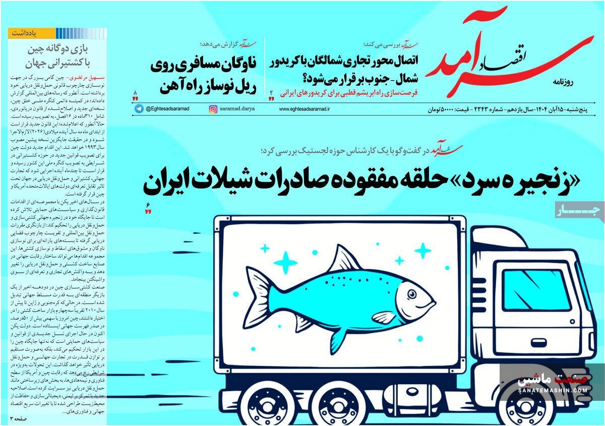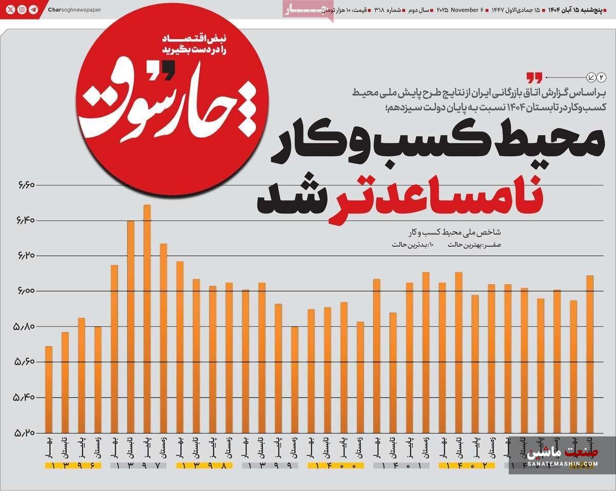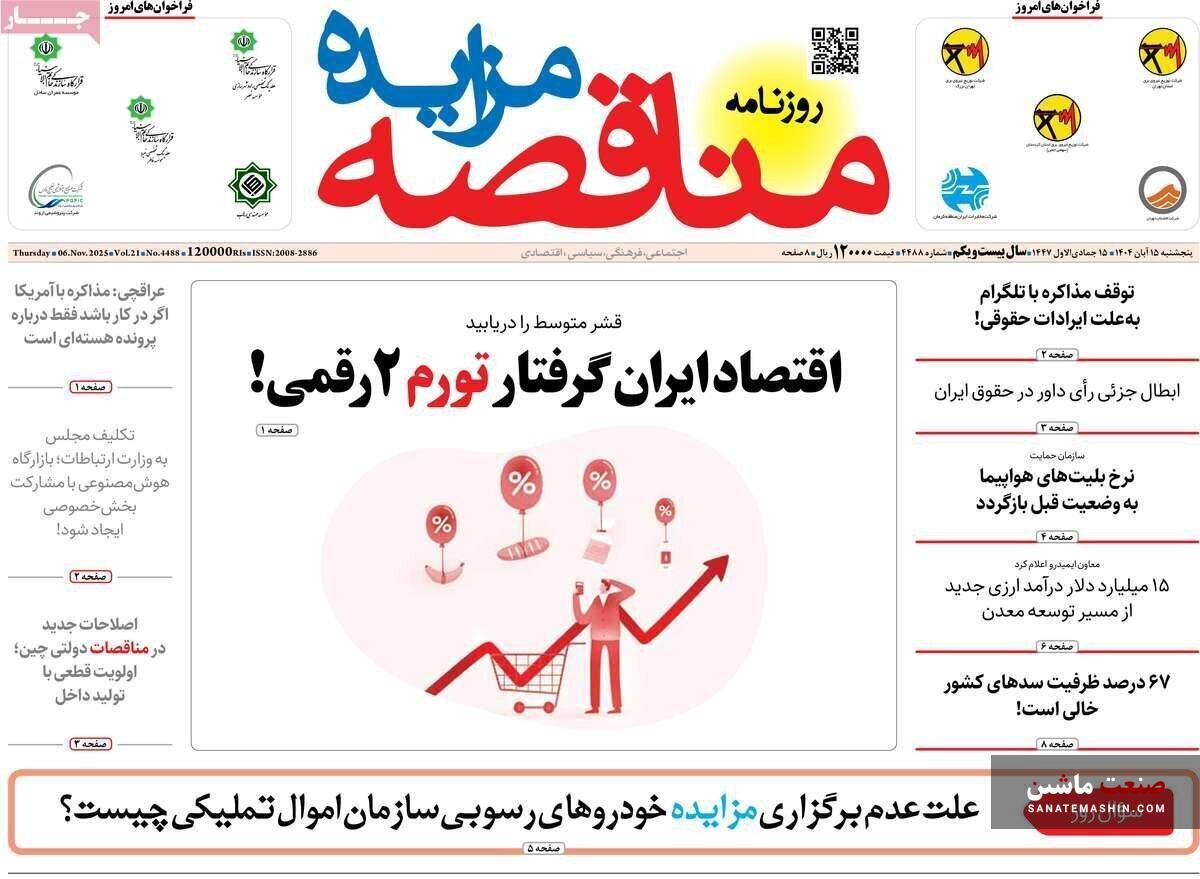 صنعت ماشین: صفحه نخست روزنامه های اقتصادی 15 آبان 1404 در صنعت ماشین منتشر شد.