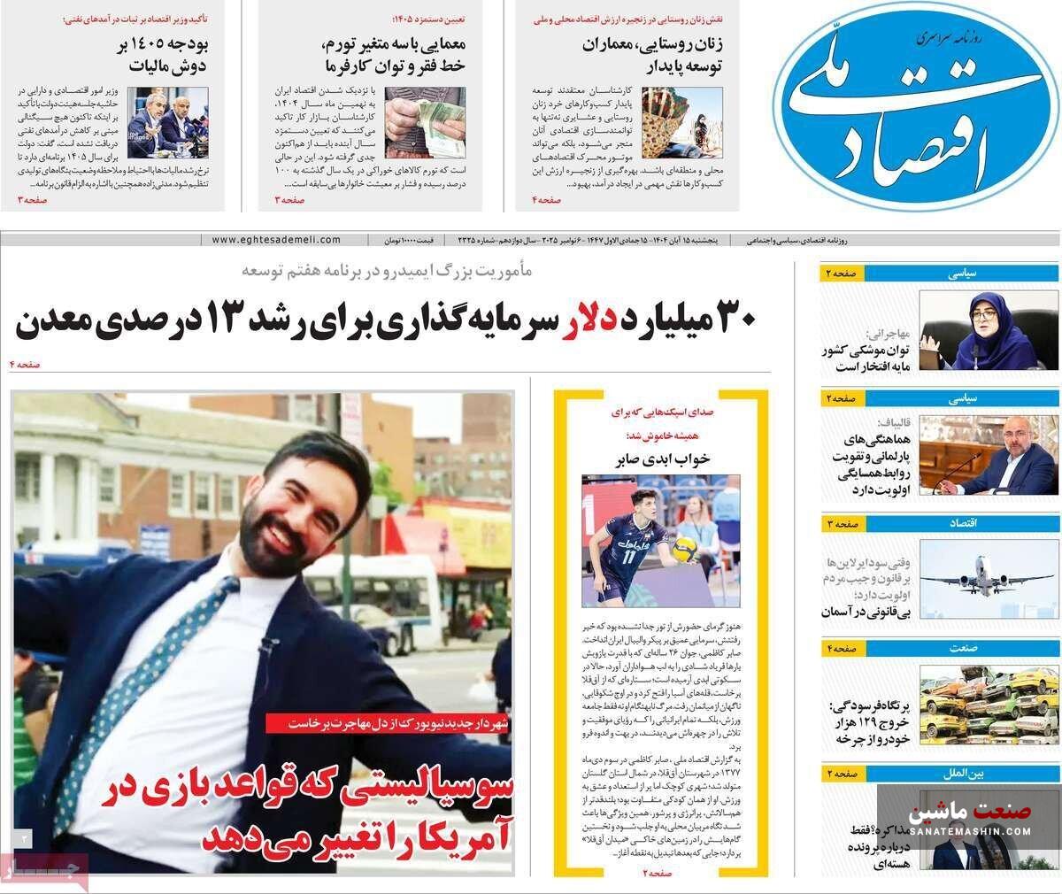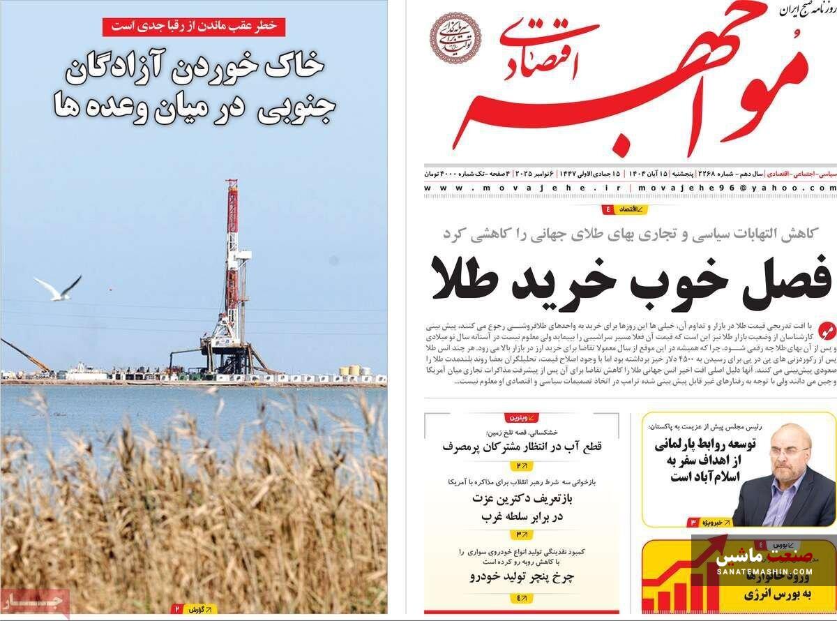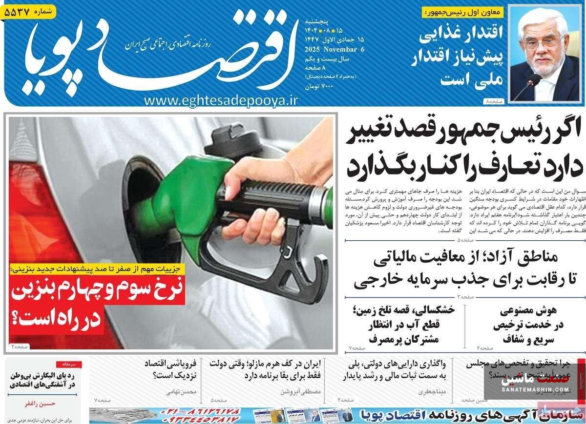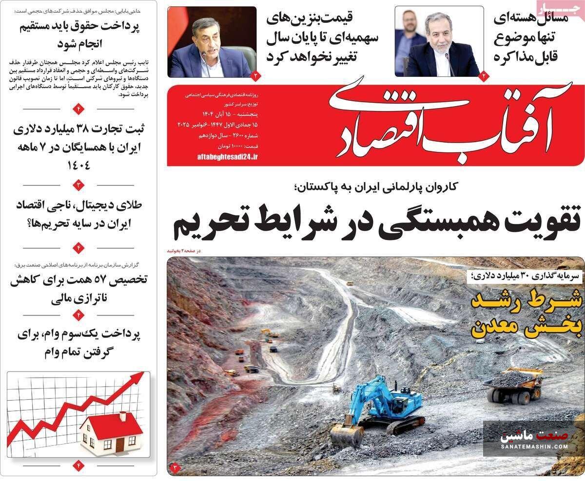 صفحه نخست روزنامه های اقتصادی 15 آبان 1404