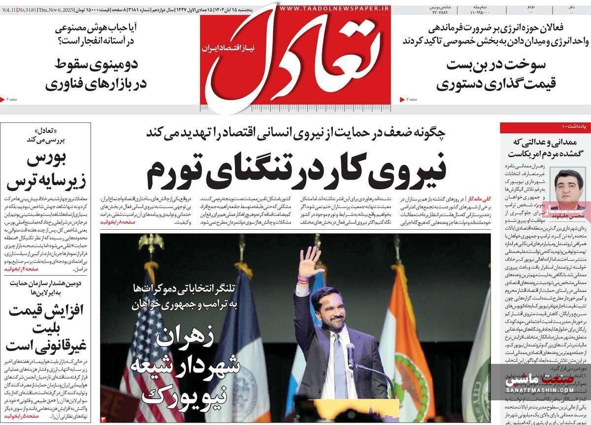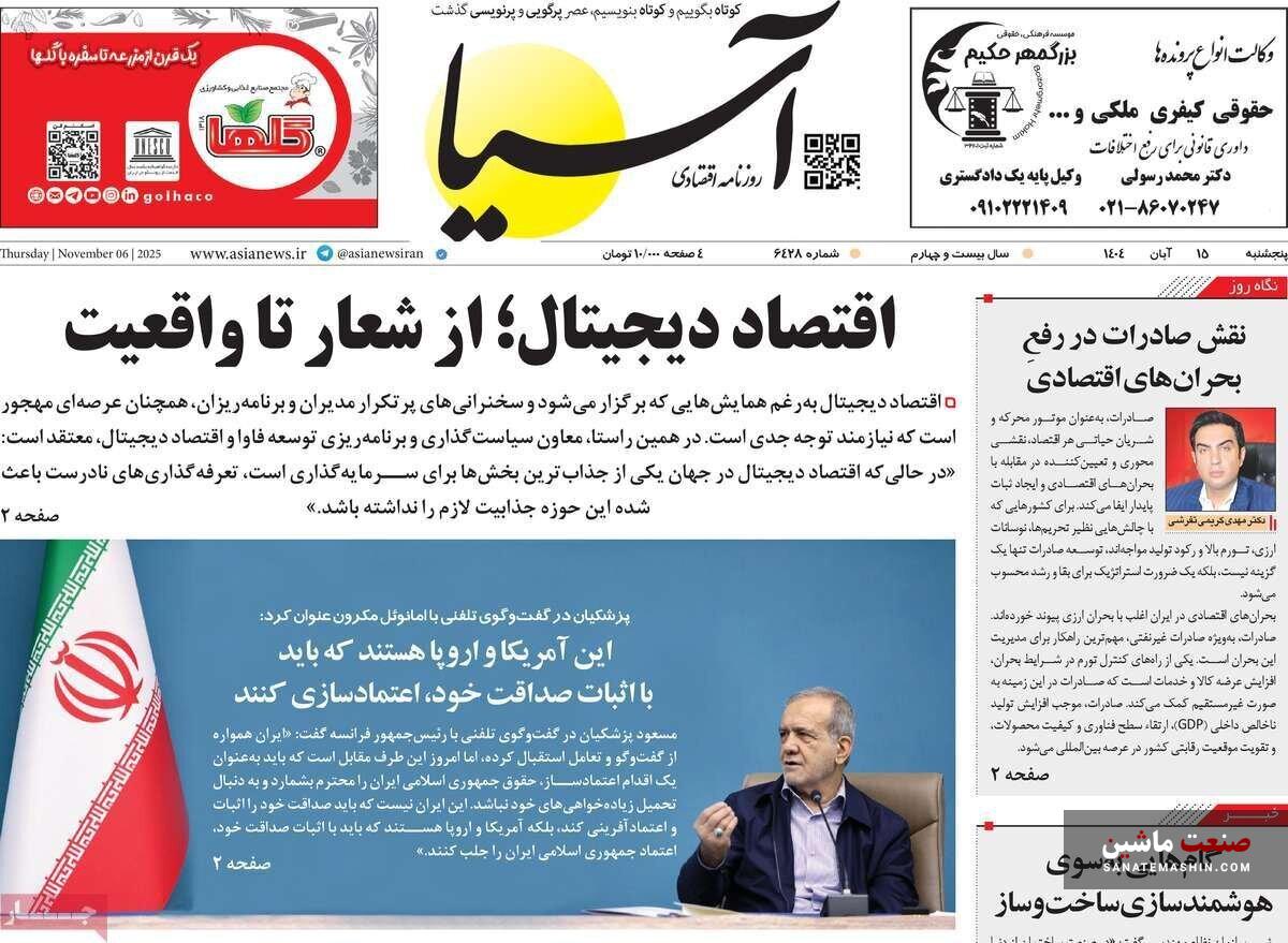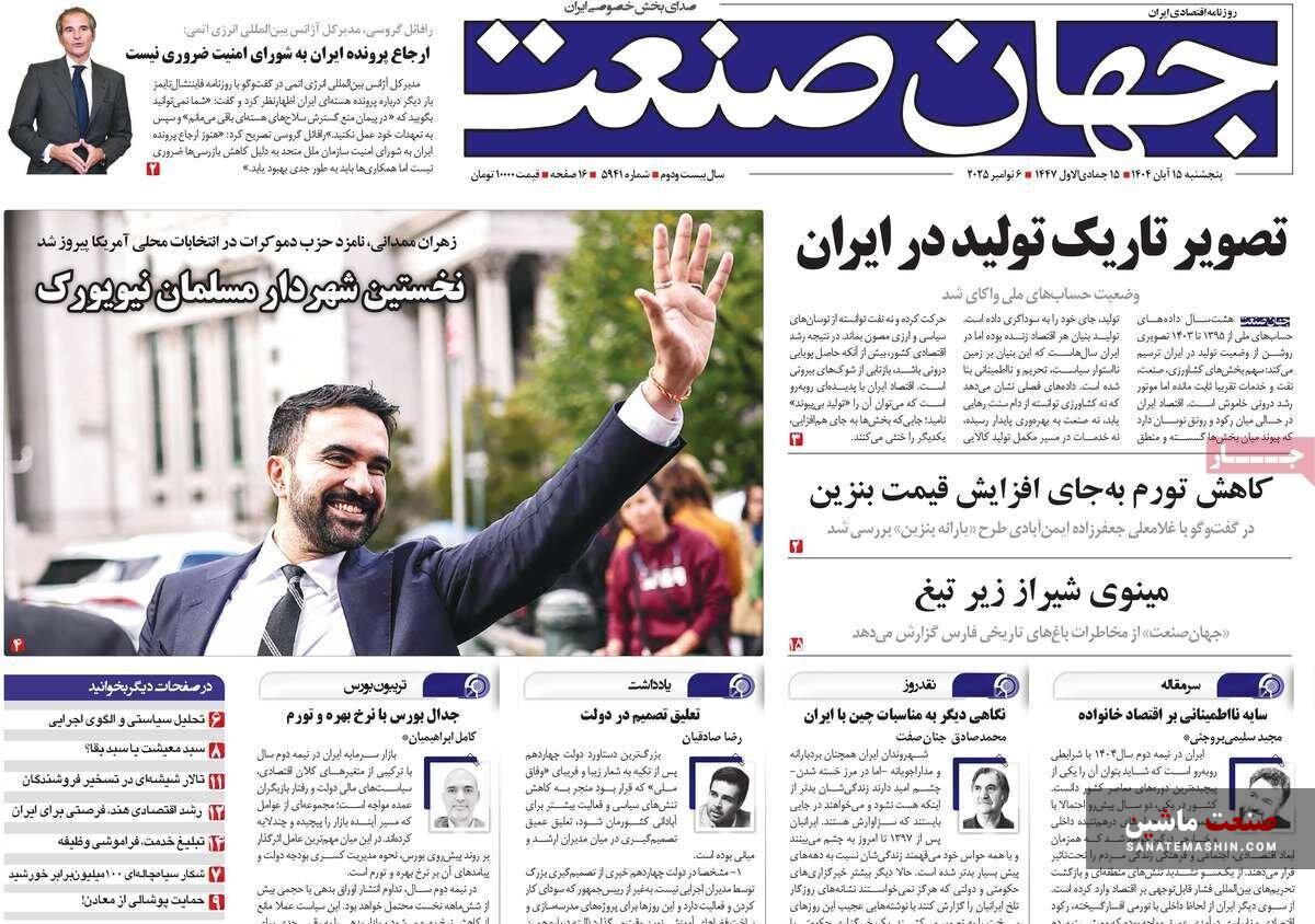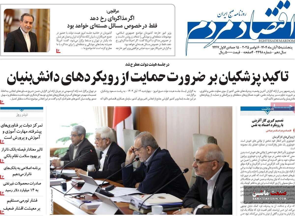 صفحه نخست روزنامه های اقتصادی 15 آبان 1404