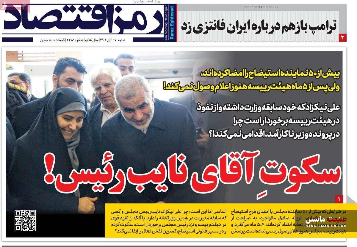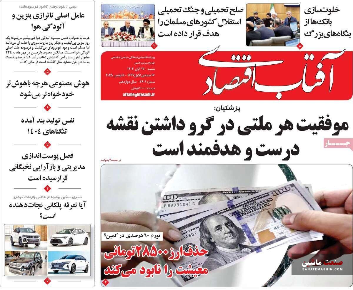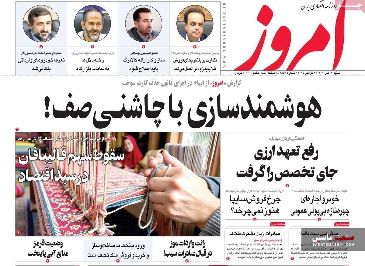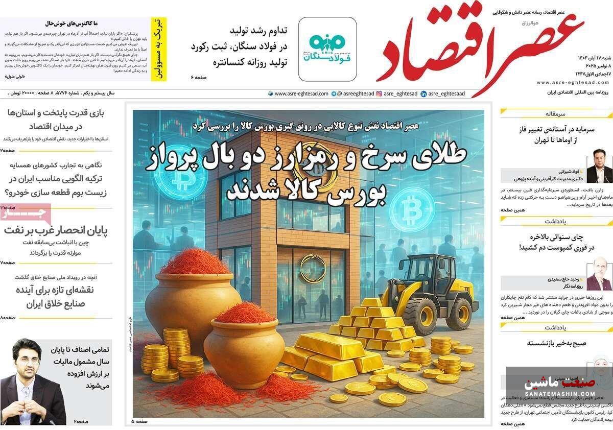 به گزارش صنعت ماشین ؛ صفحه نخست روزنامه های اقتصادی 17 آبان 1404 به شرح زیر است: