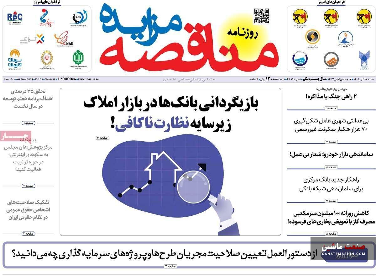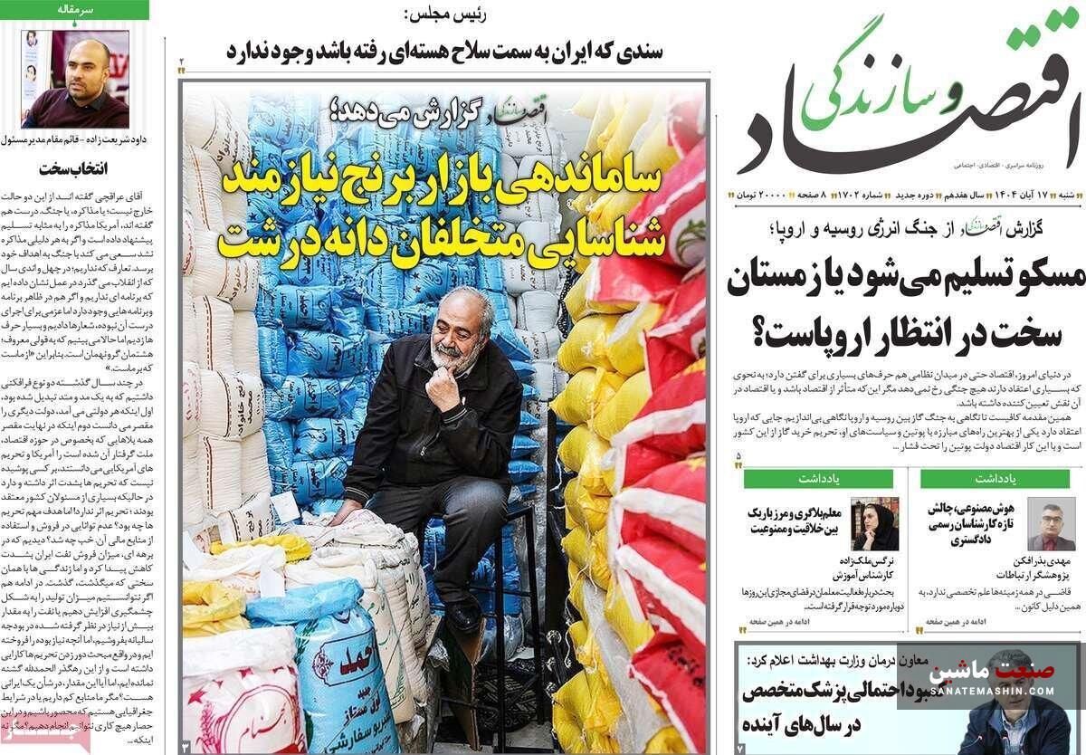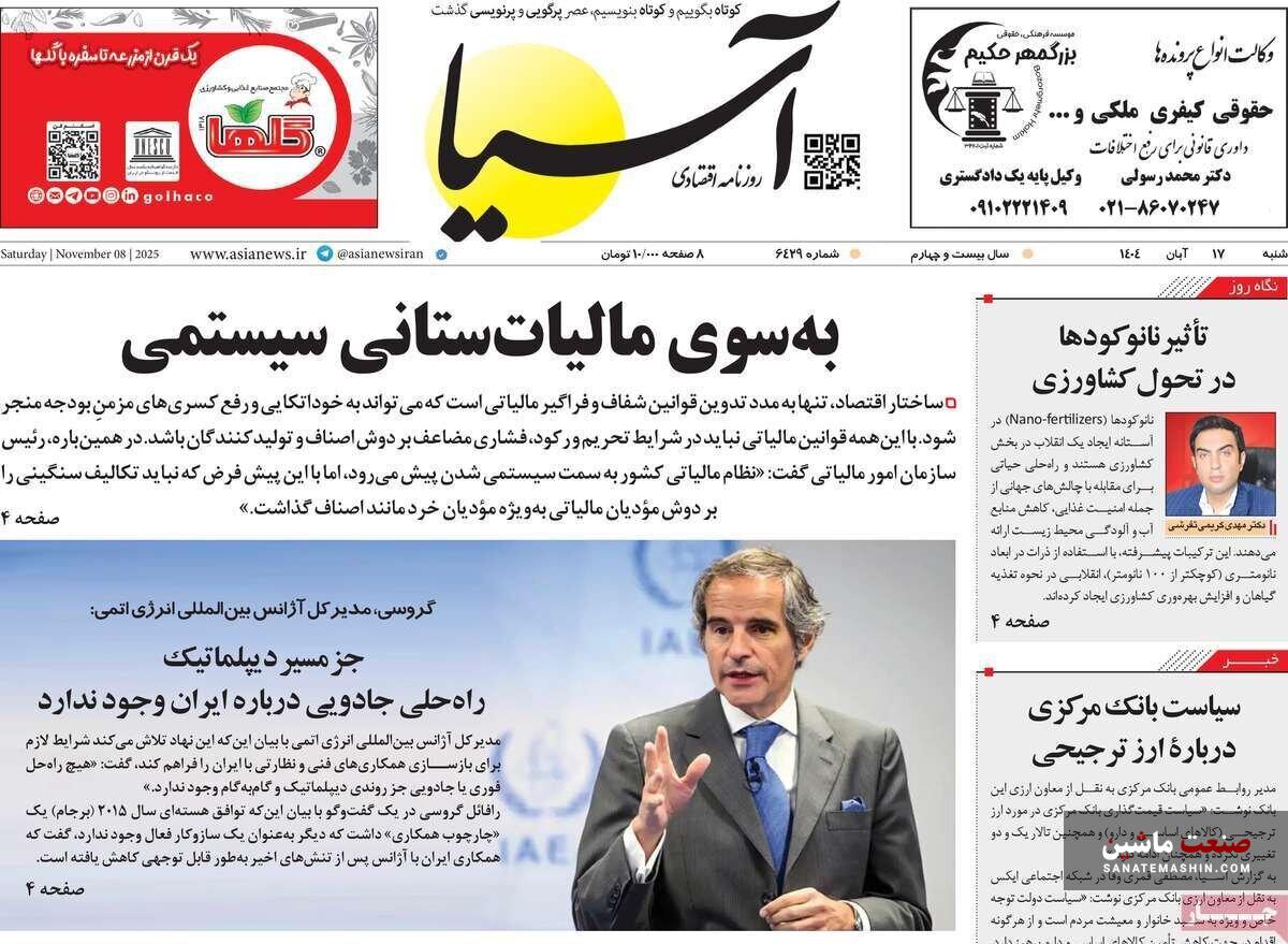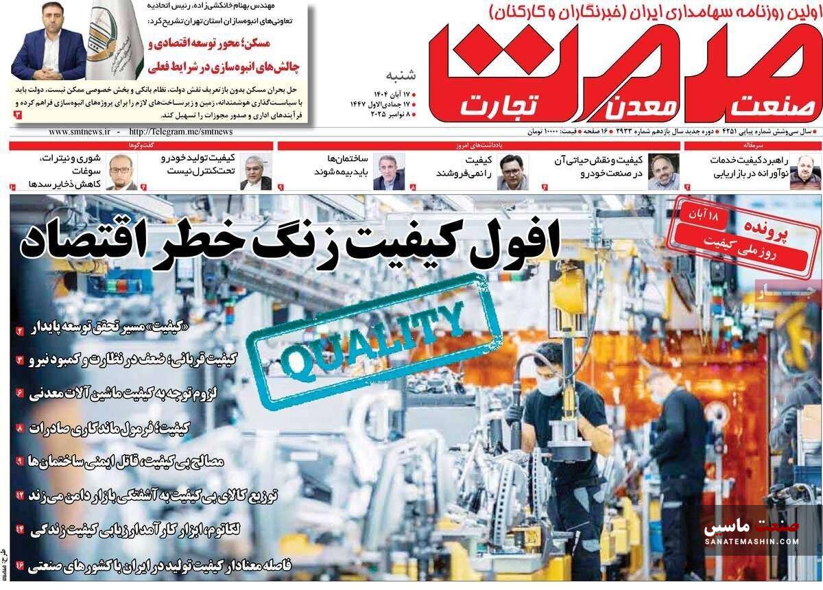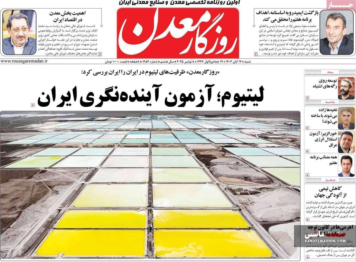 به گزارش صنعت ماشین ؛ صفحه نخست روزنامه های اقتصادی 17 آبان 1404 به شرح زیر است: