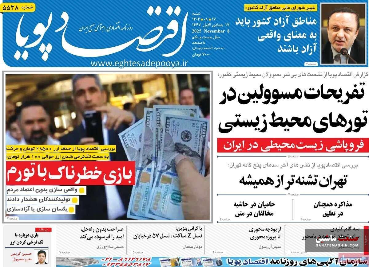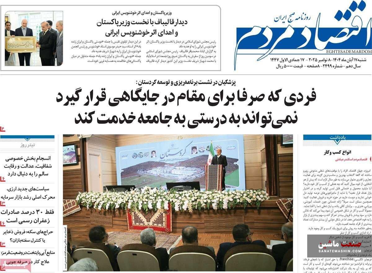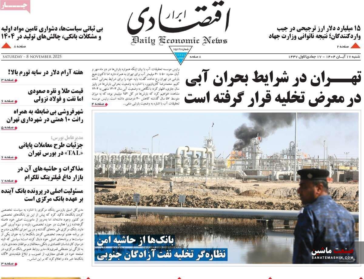 صفحه نخست روزنامه های اقتصادی 8 آبان 1404