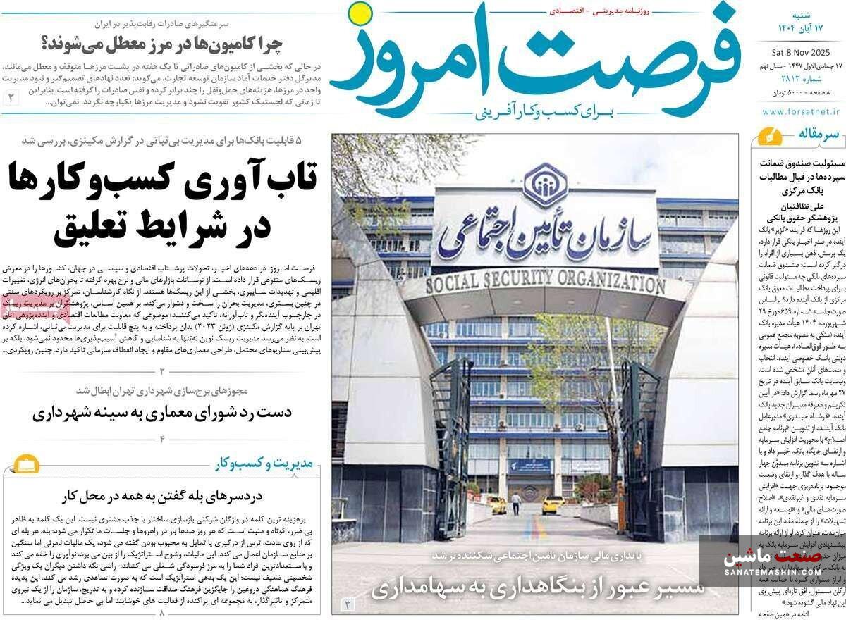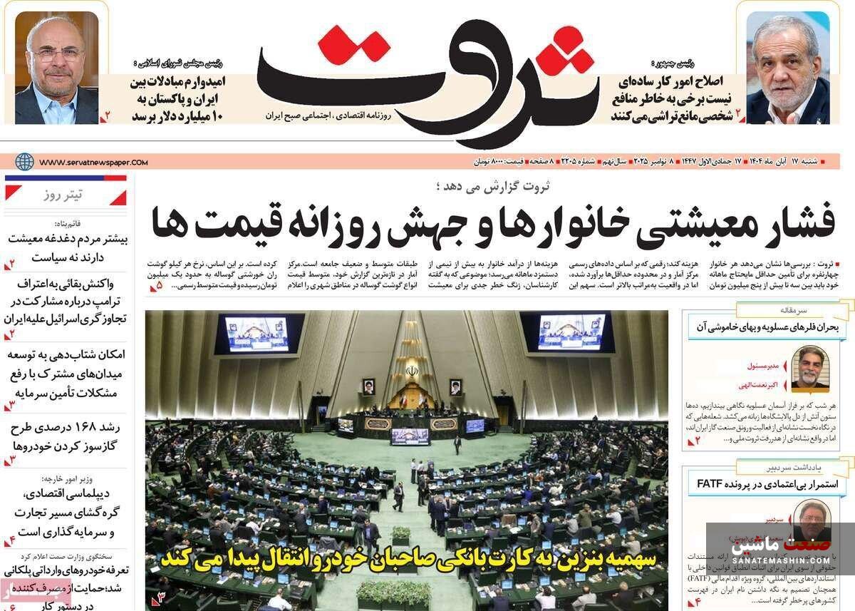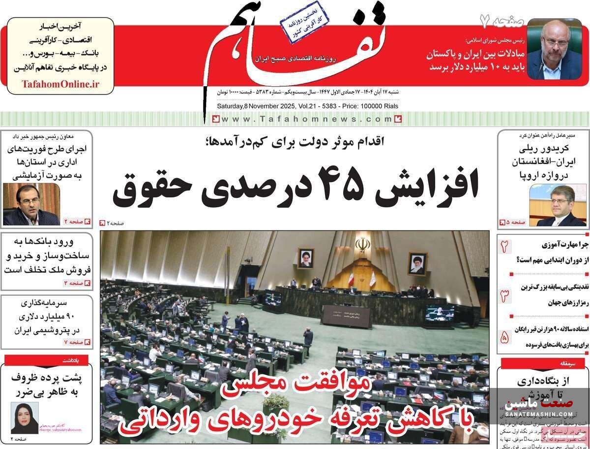 صفحه نخست روزنامه های اقتصادی 8 آبان 1404