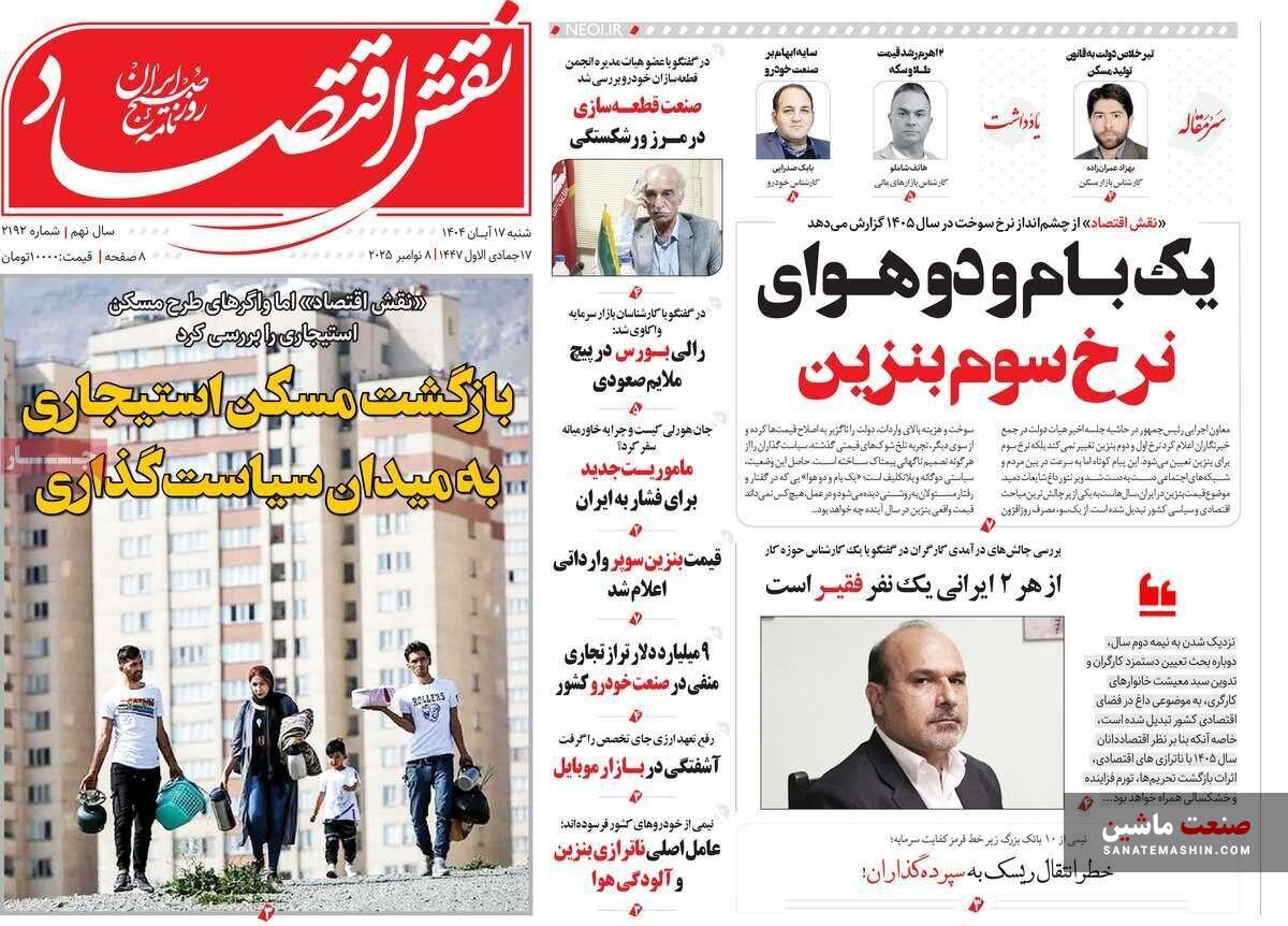 صفحه نخست روزنامه های اقتصادی 14 آبان 1404