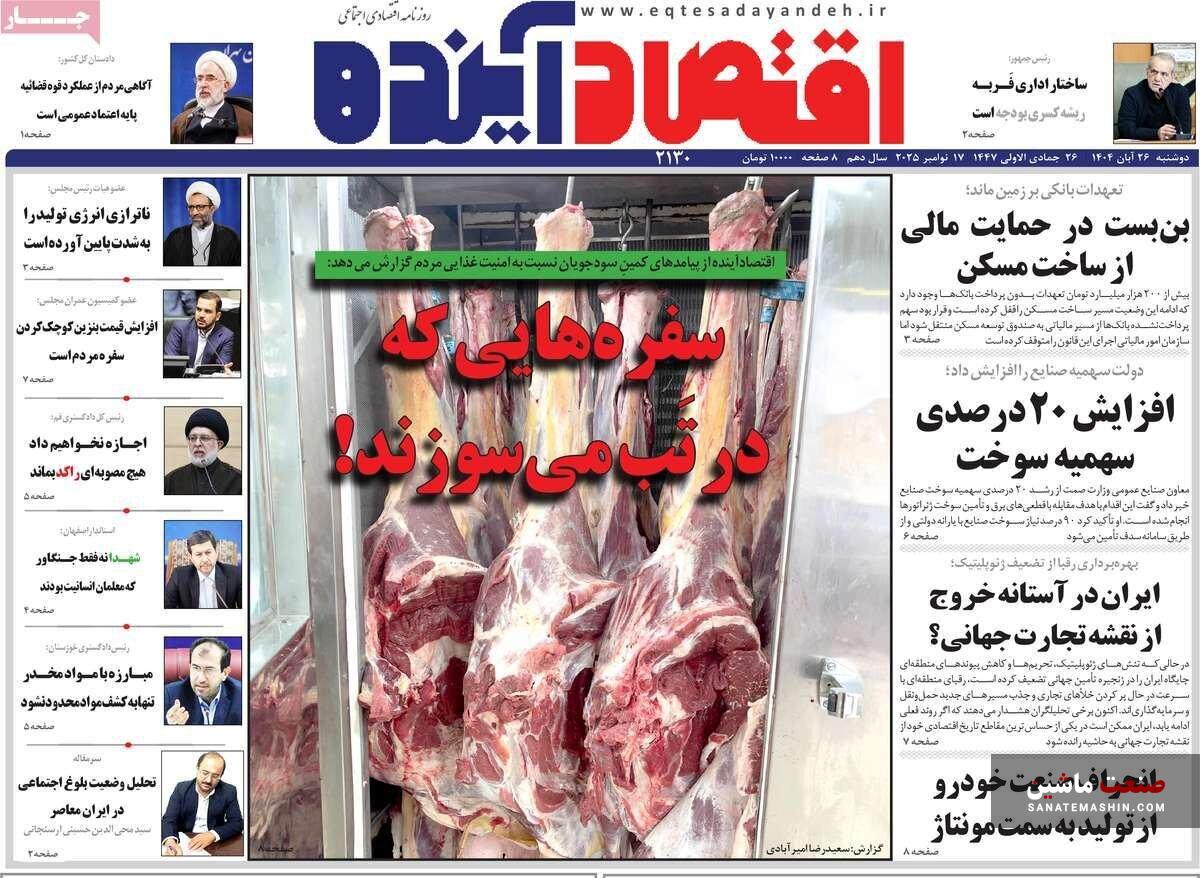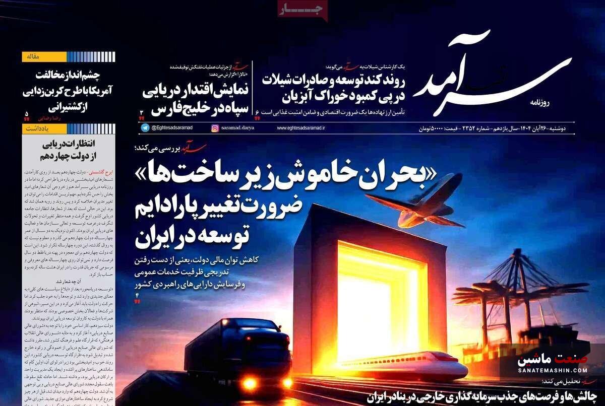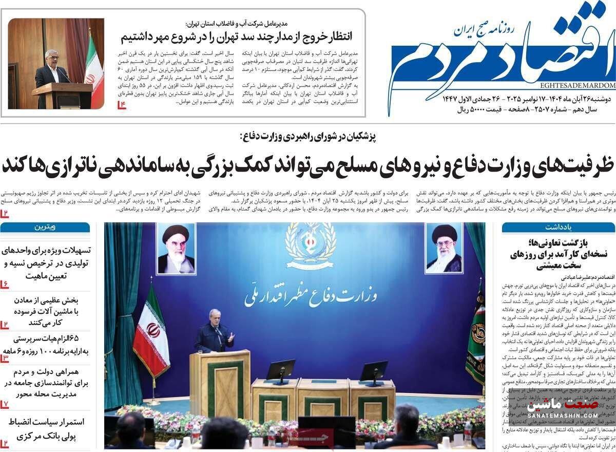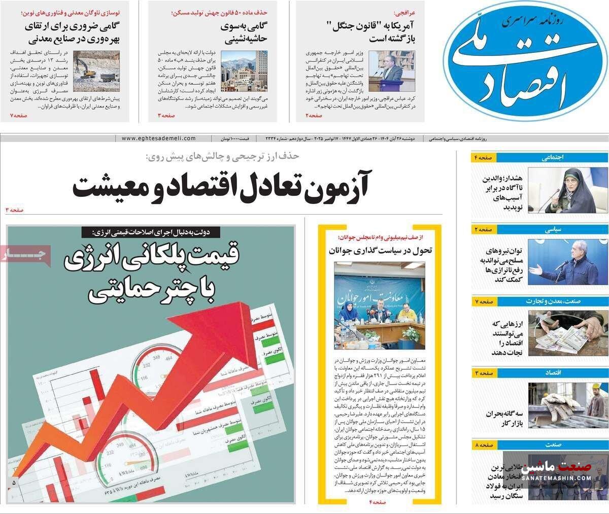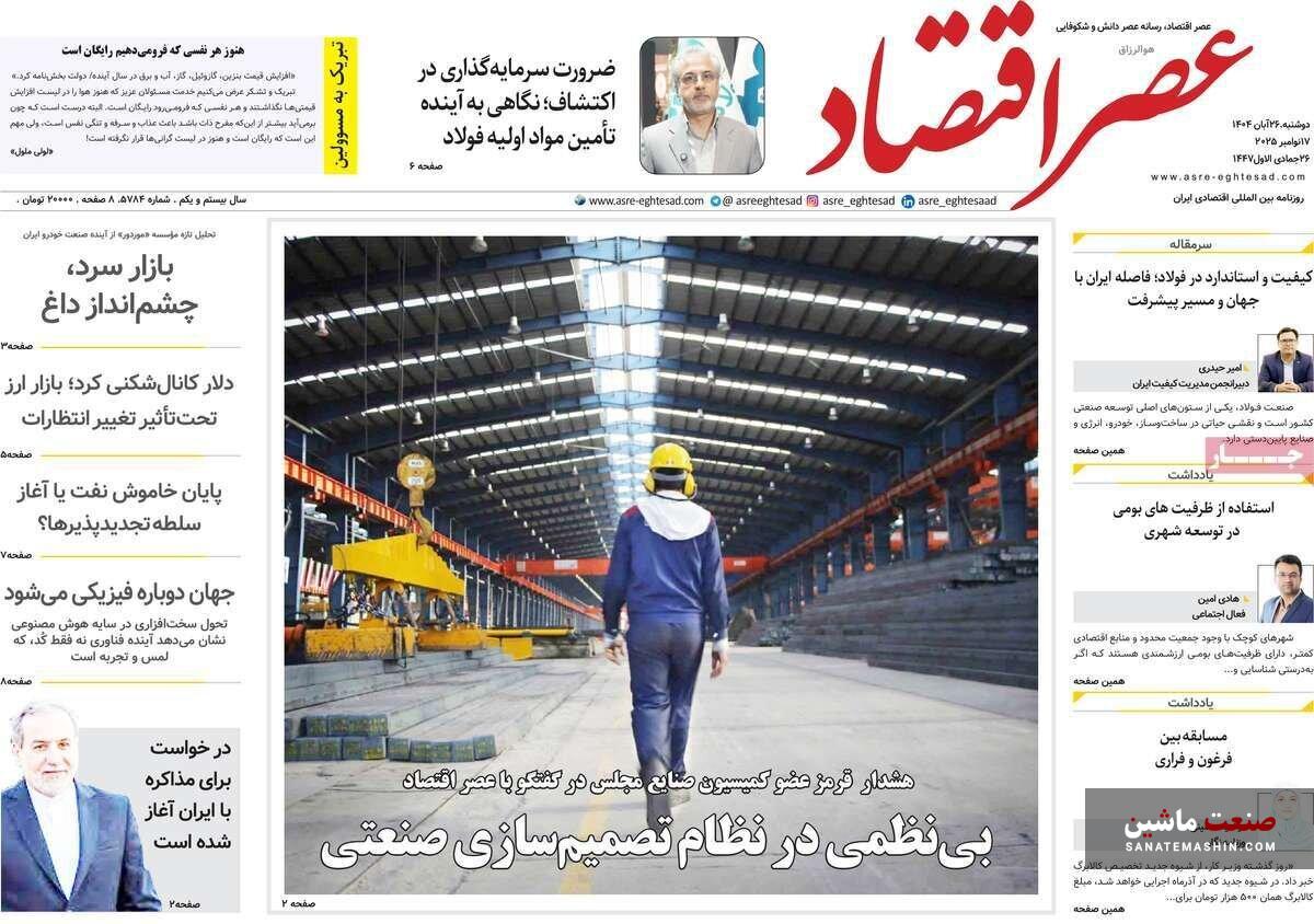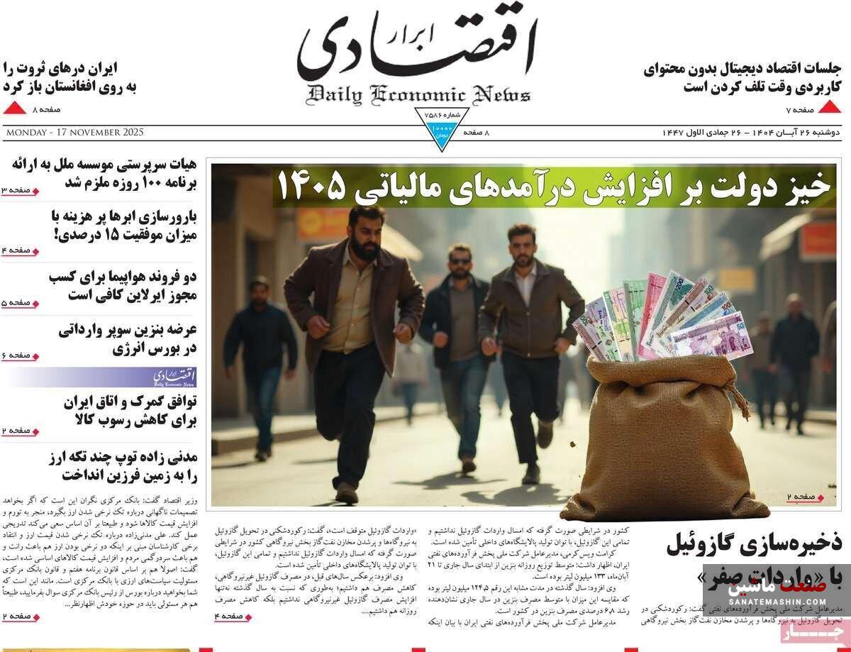 صفحه نخست روزنامه های اقتصادی 26 آبان 1404