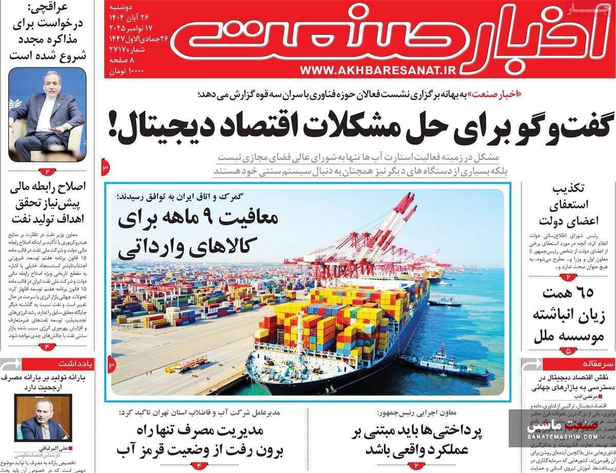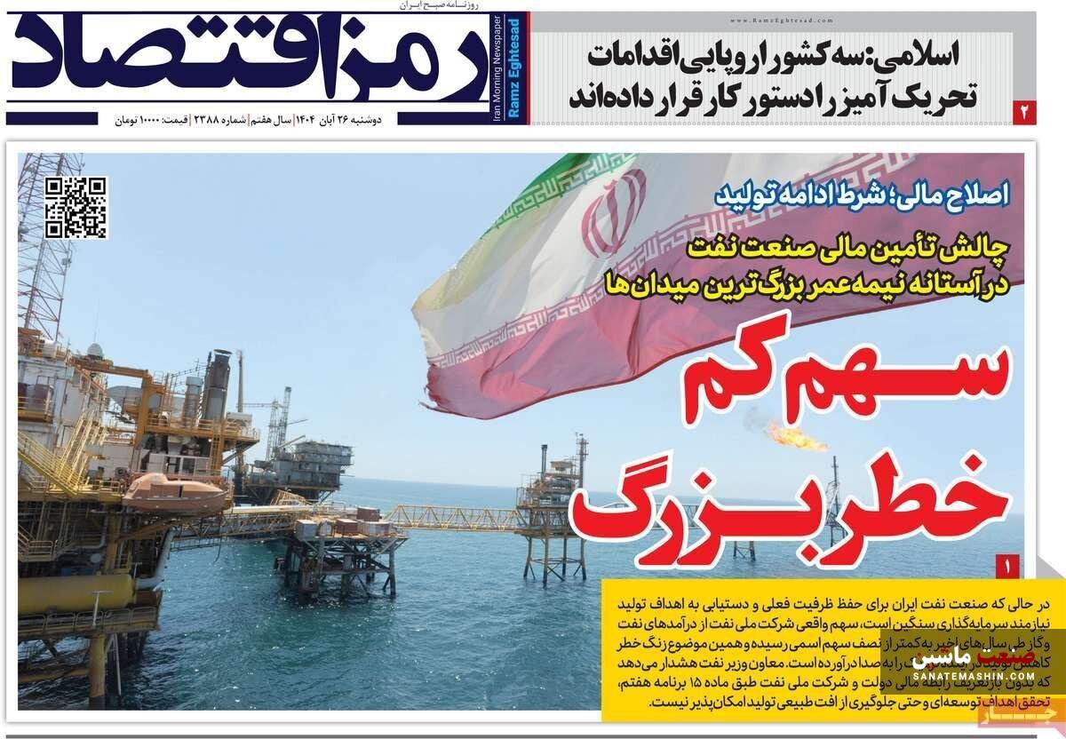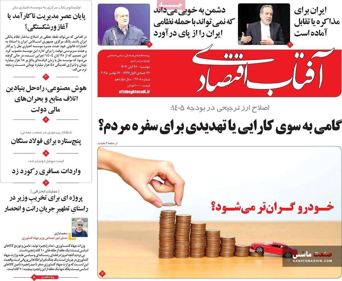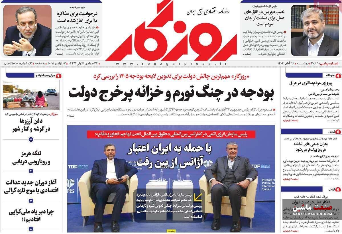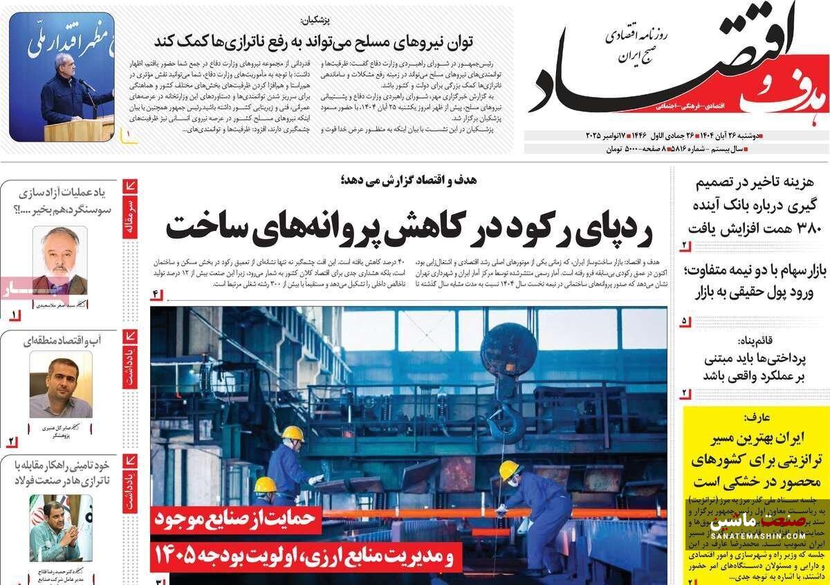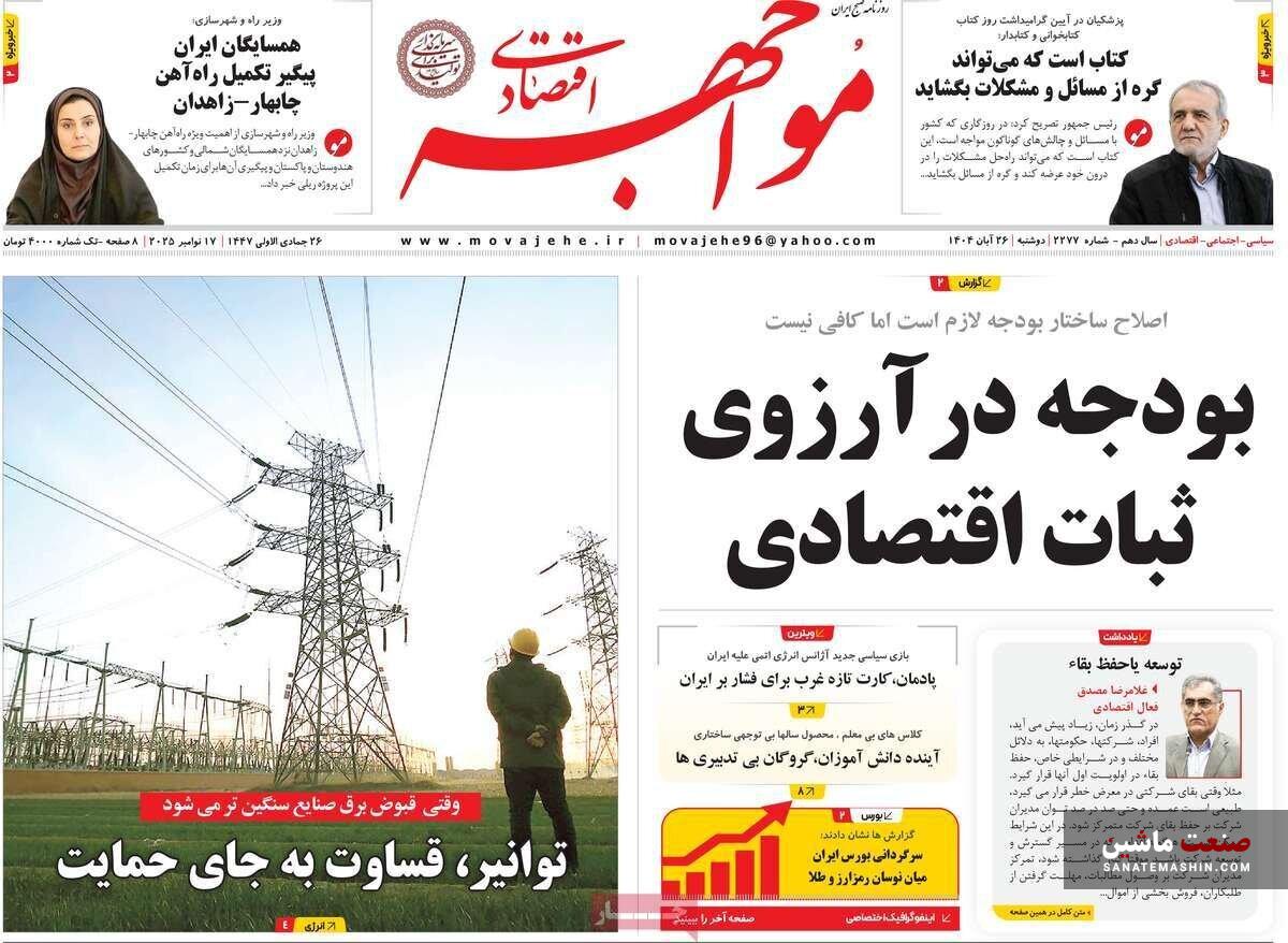 صفحه نخست روزنامه های اقتصادی 26 آبان 1404