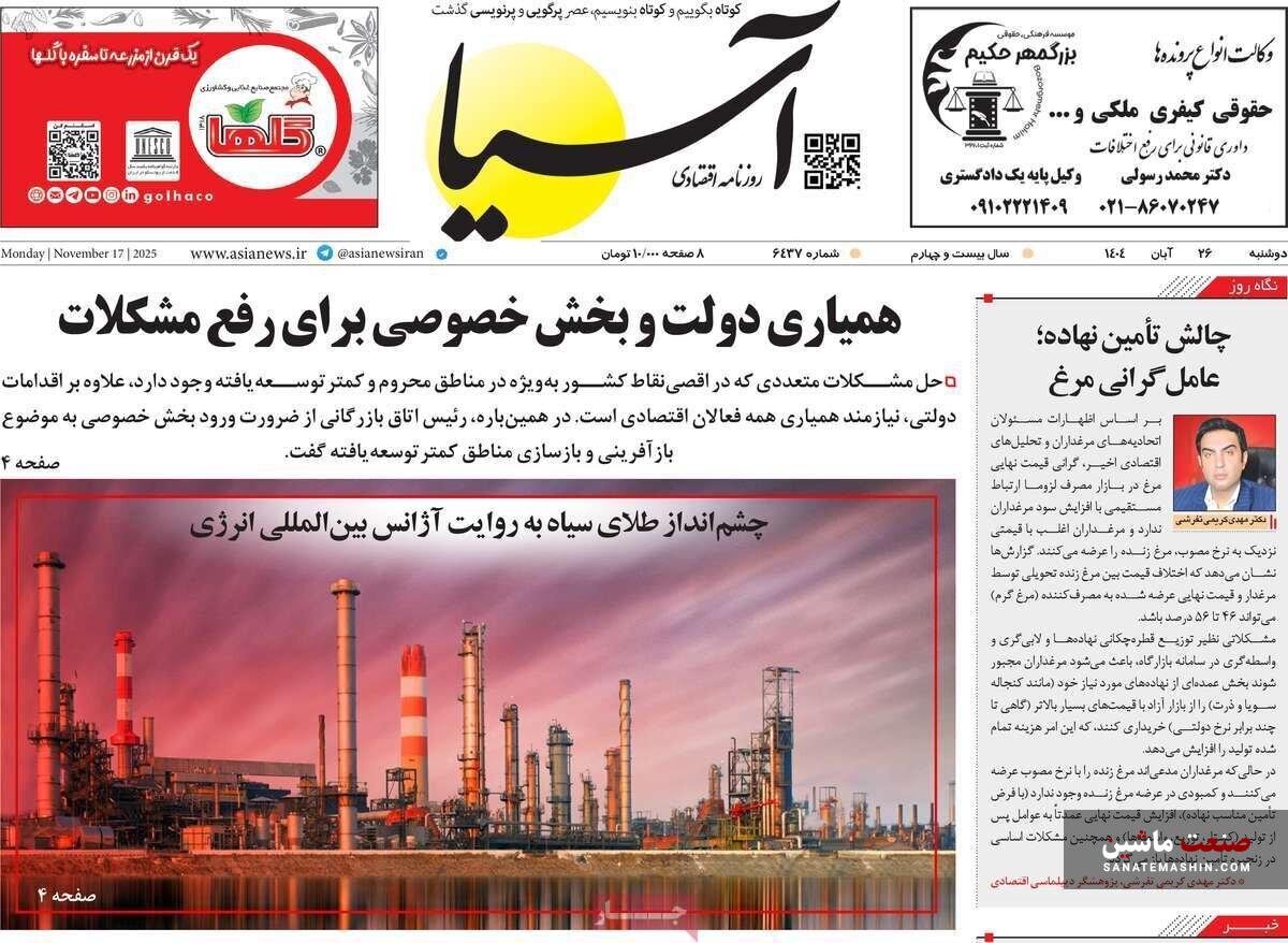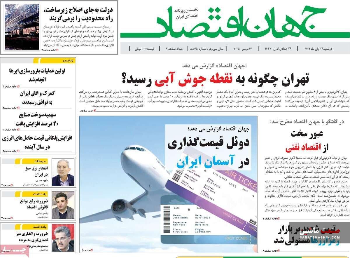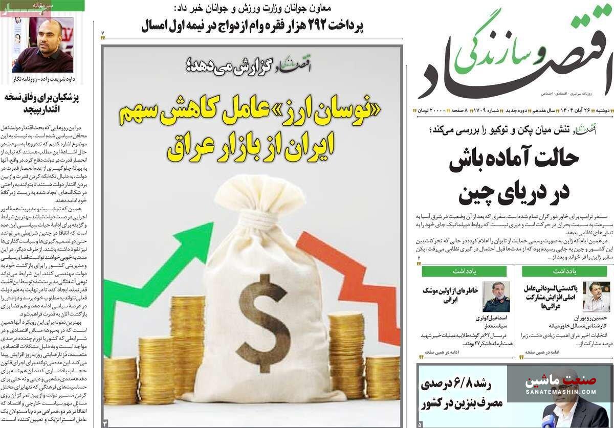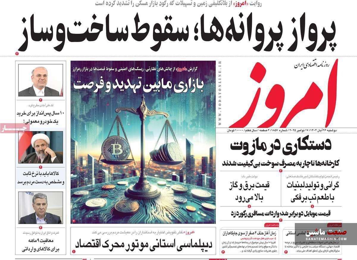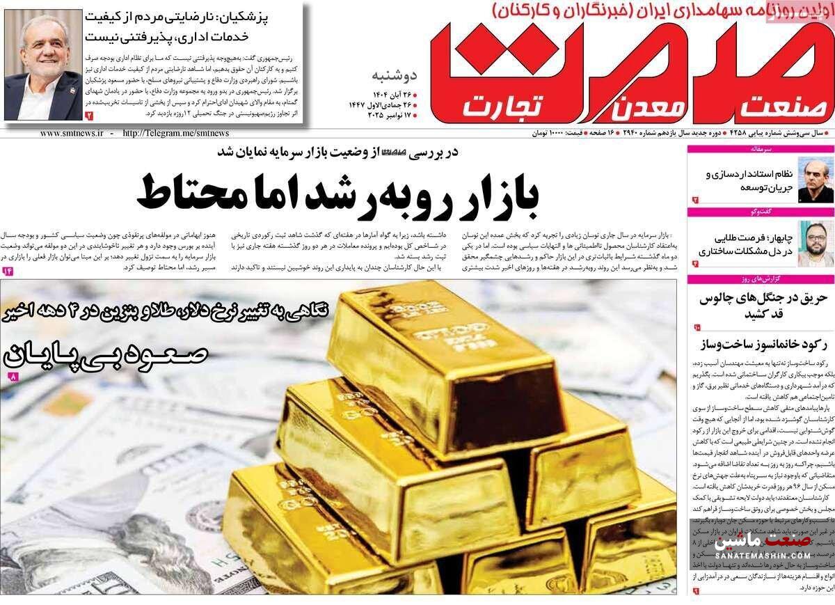 صفحه نخست روزنامه های اقتصادی 26 آبان 1404