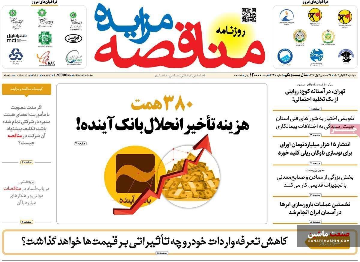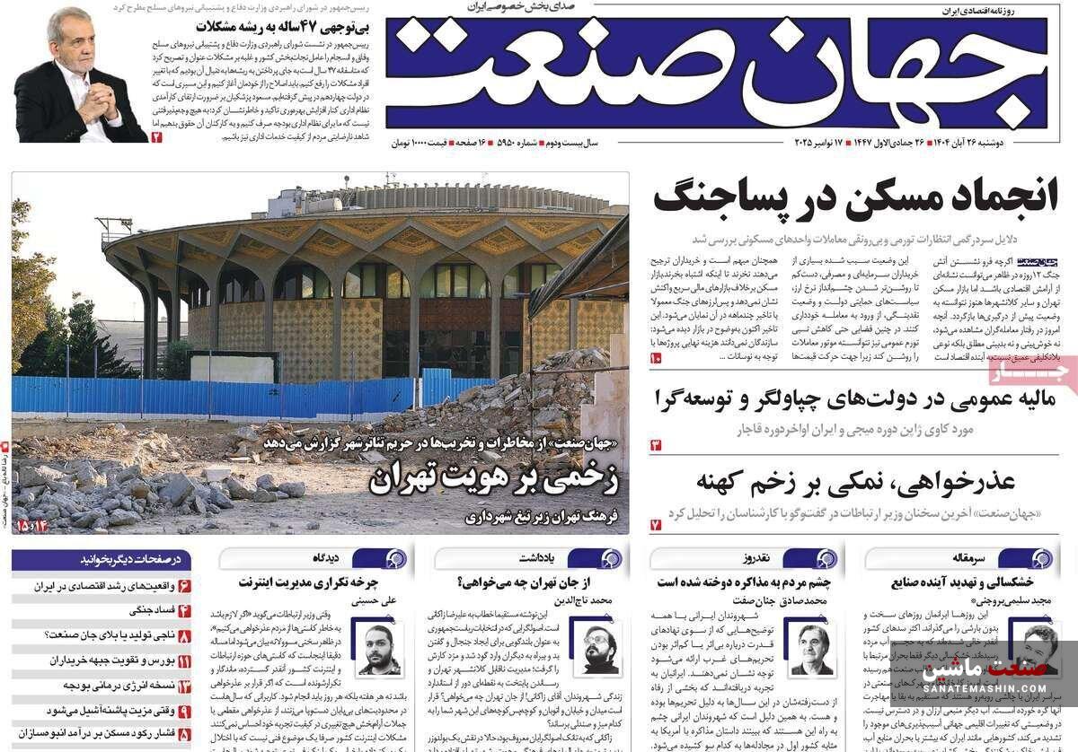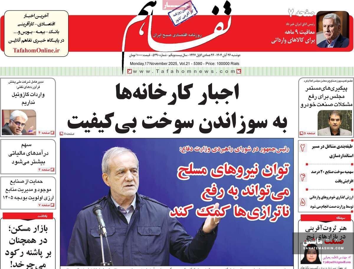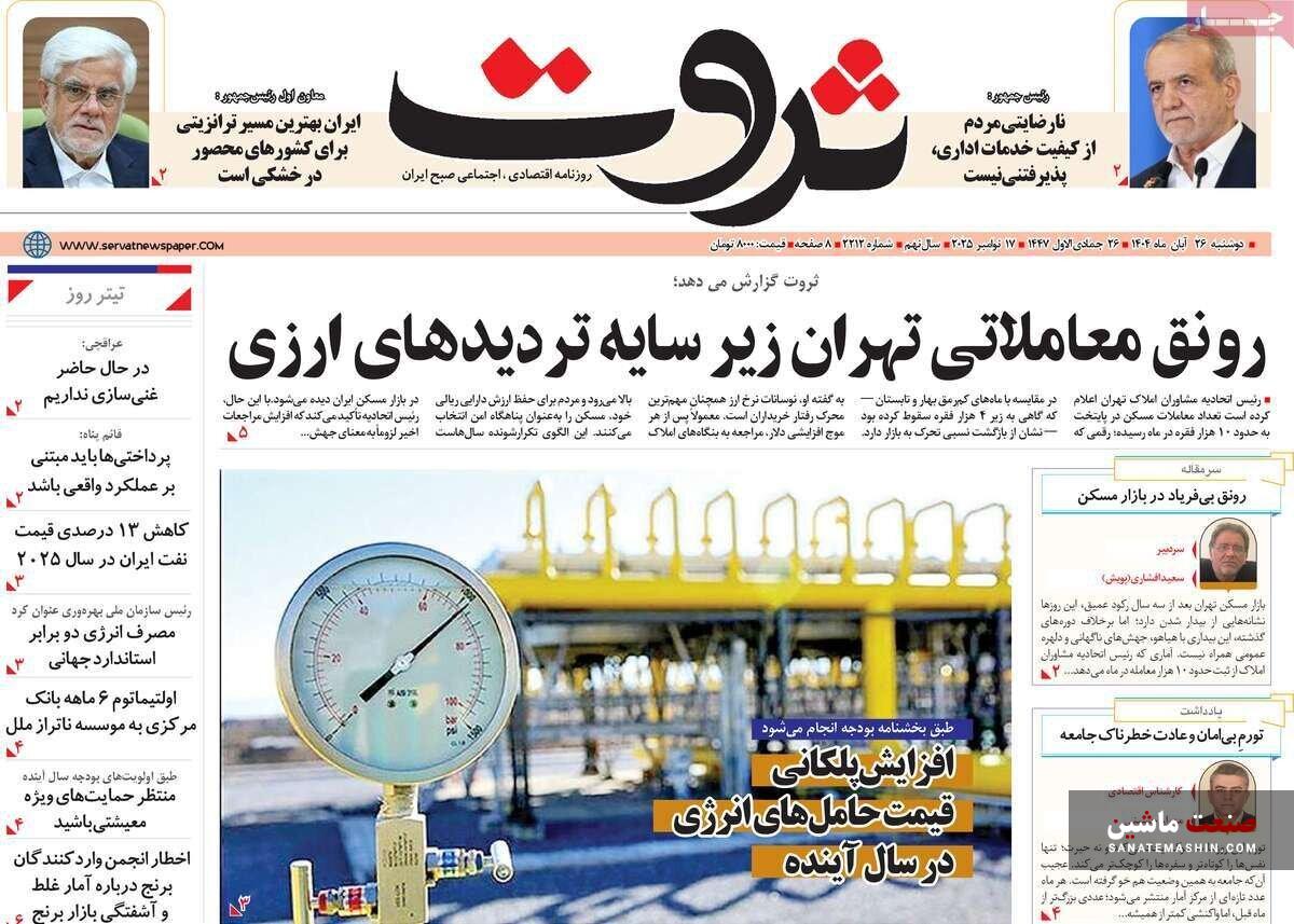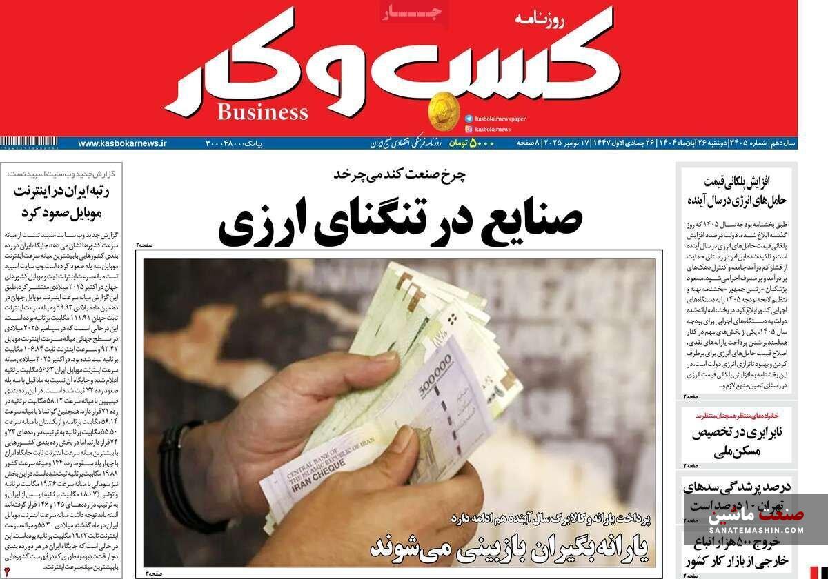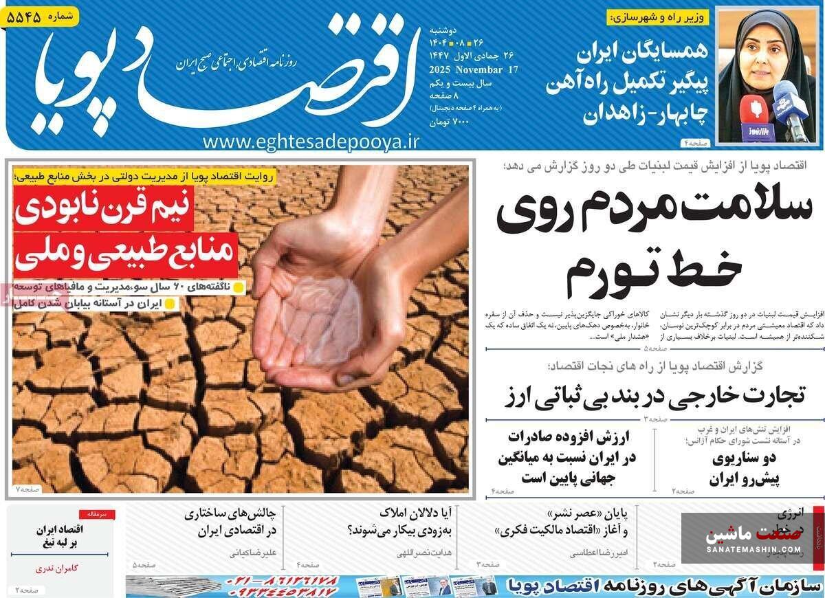 صفحه نخست روزنامه های اقتصادی 26 آبان 1404