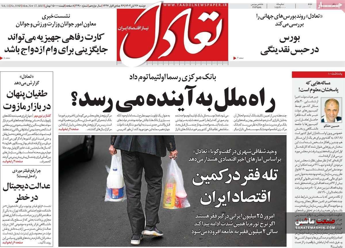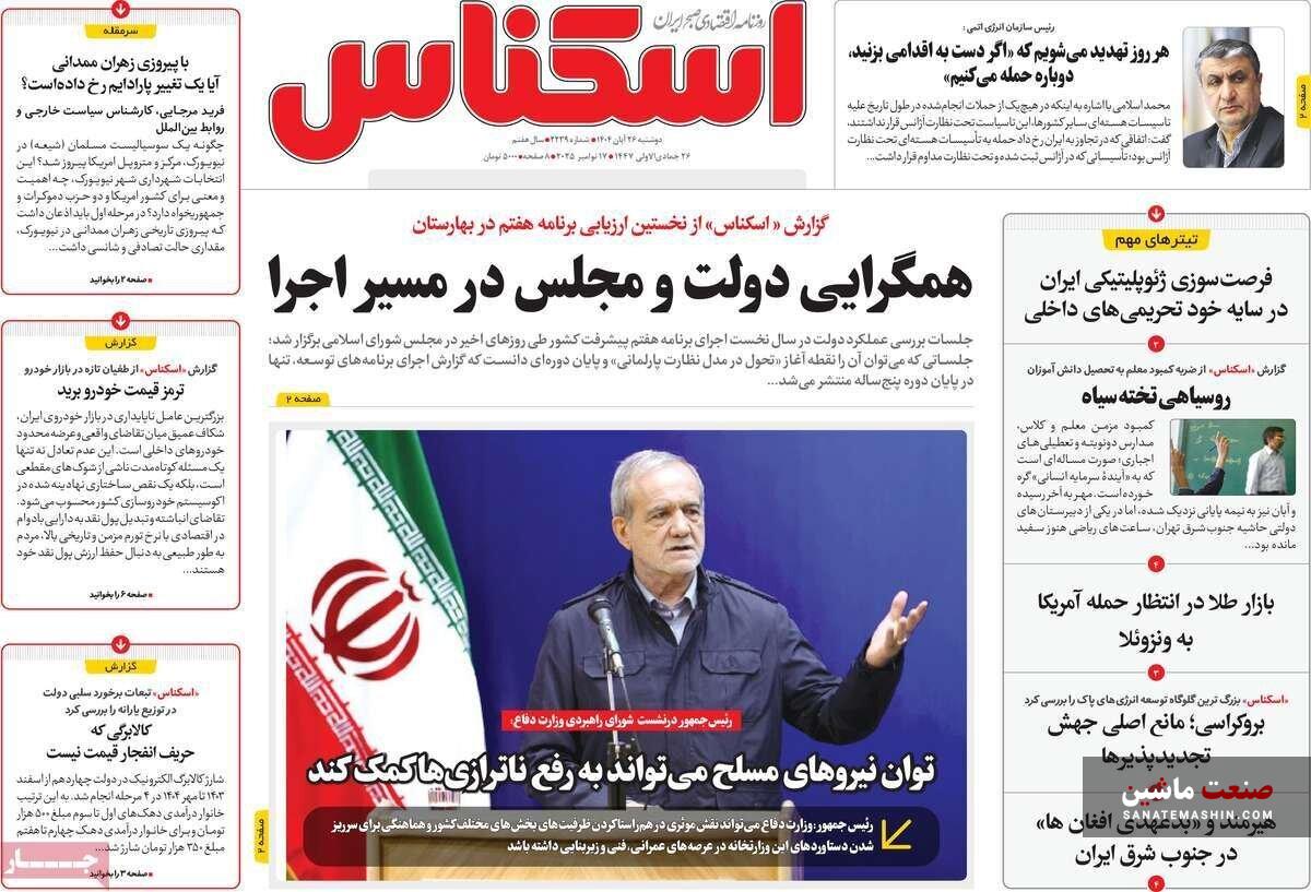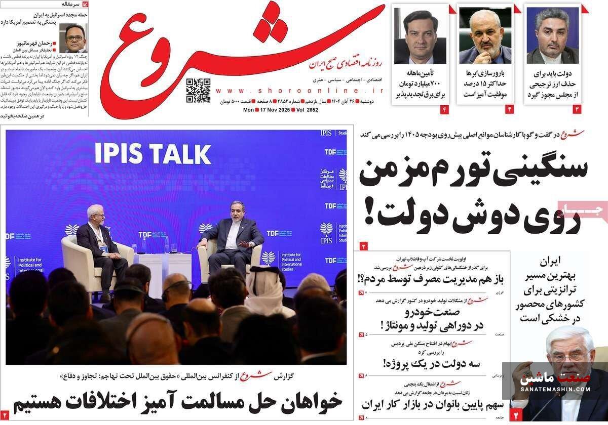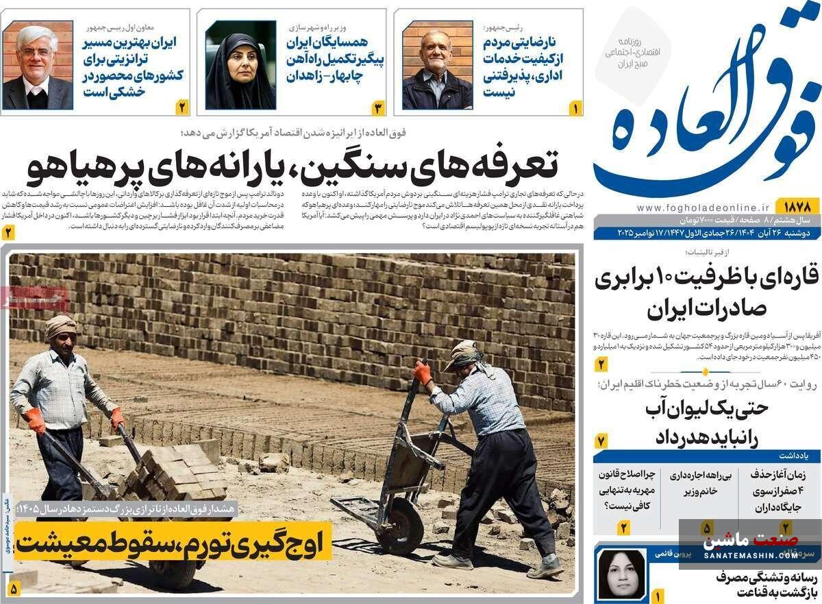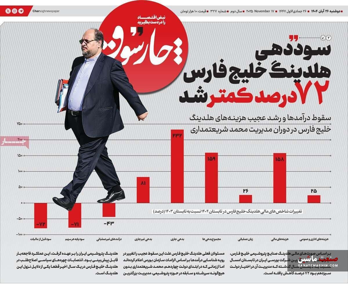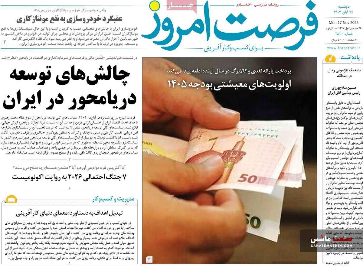صفحه نخست روزنامه های اقتصادی 26 آبان 1404