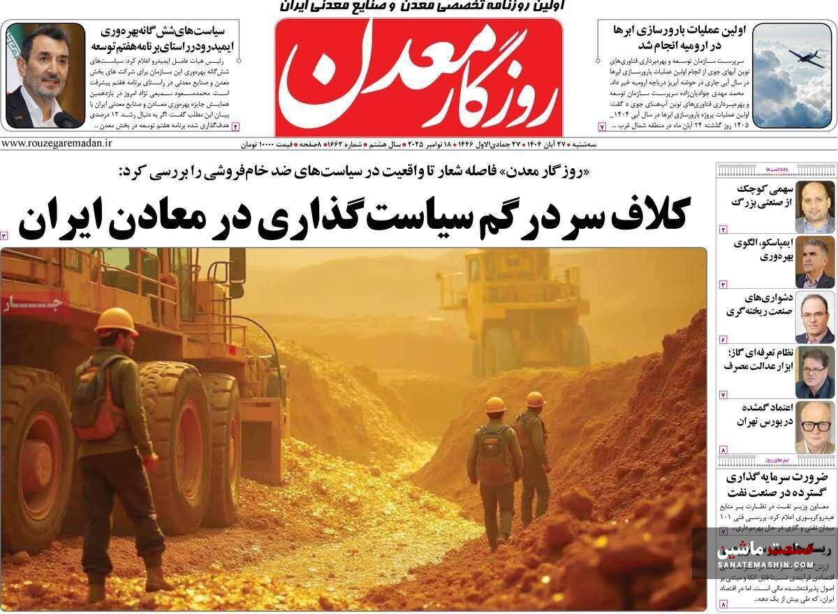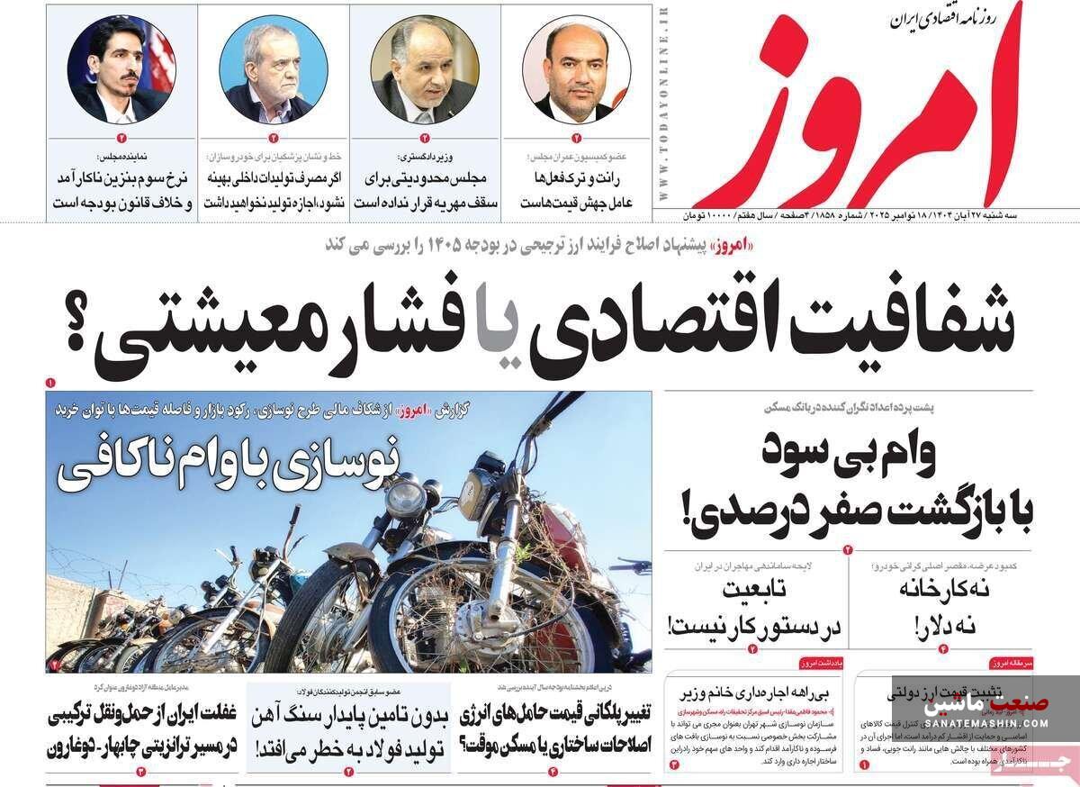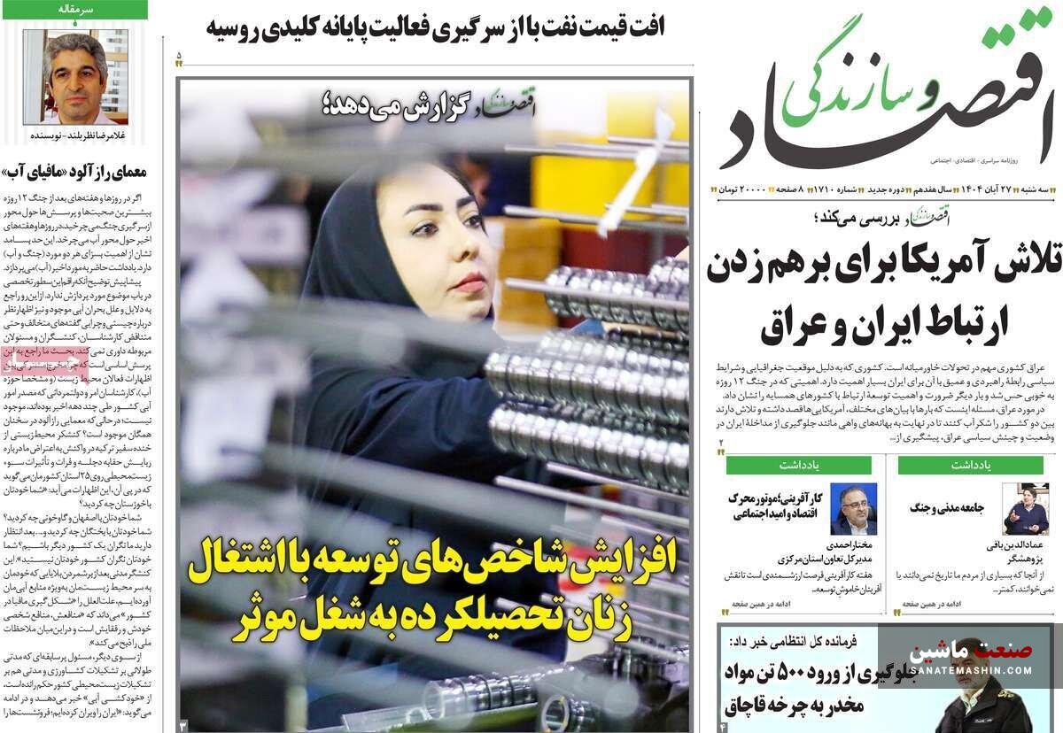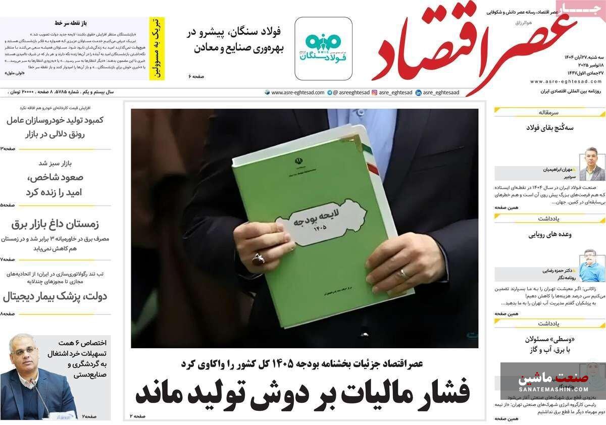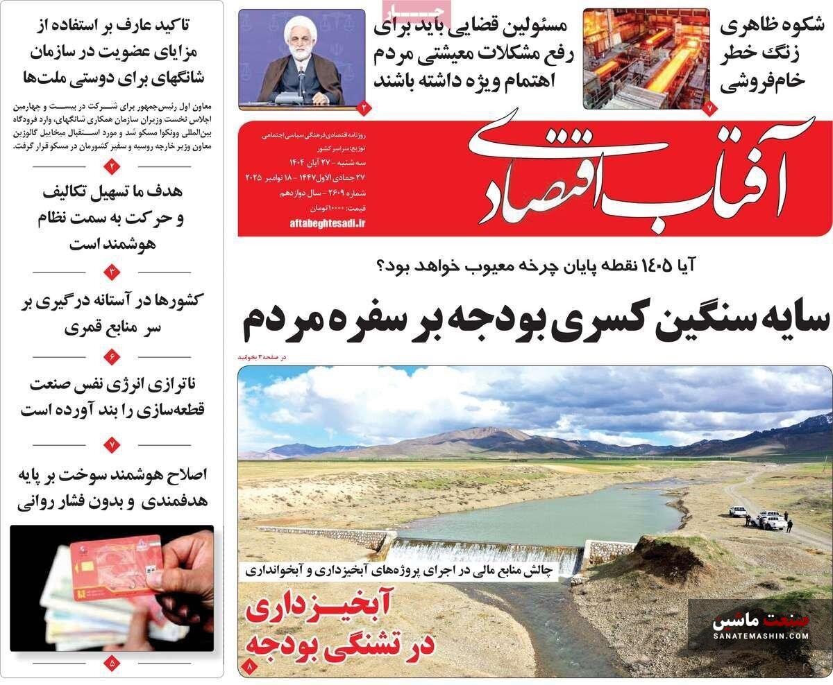 صفحه نخست روزنامه های اقتصادی 26 آبان 1404