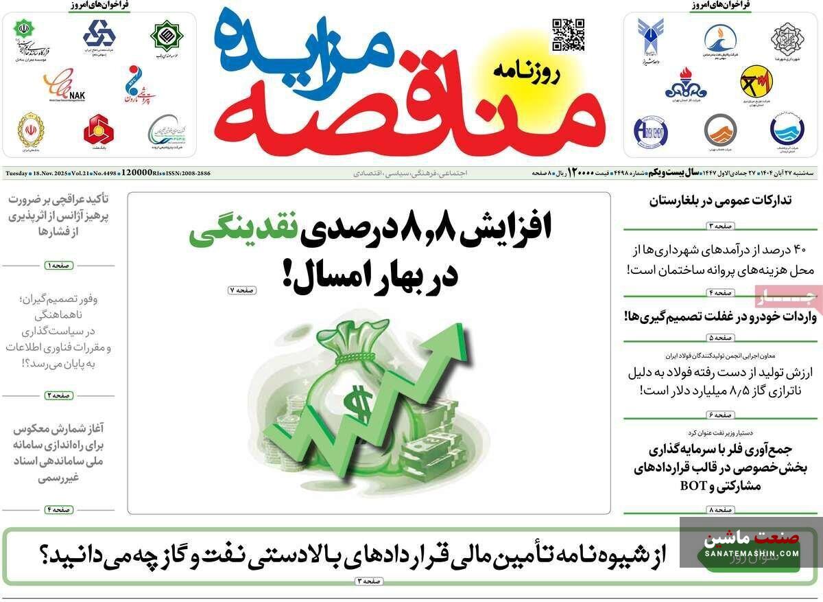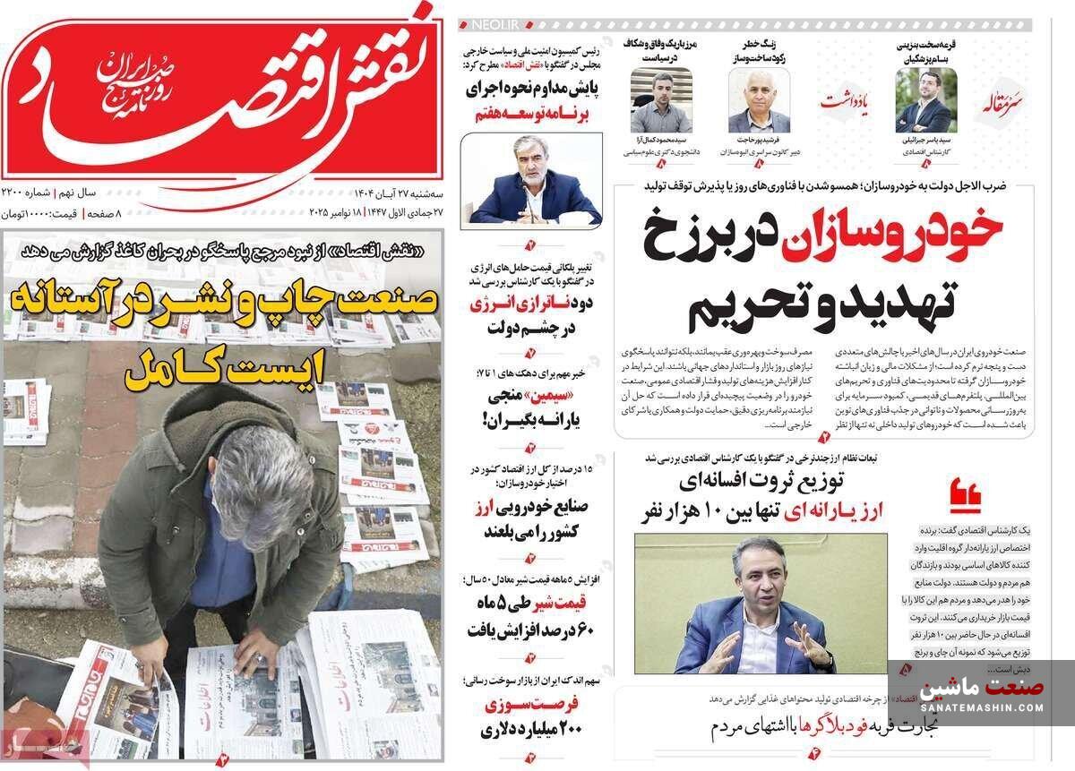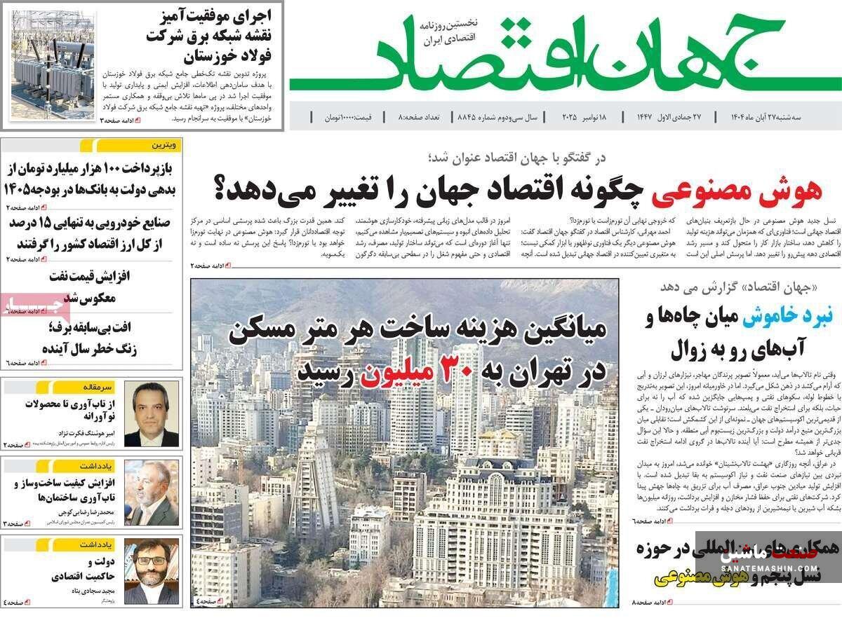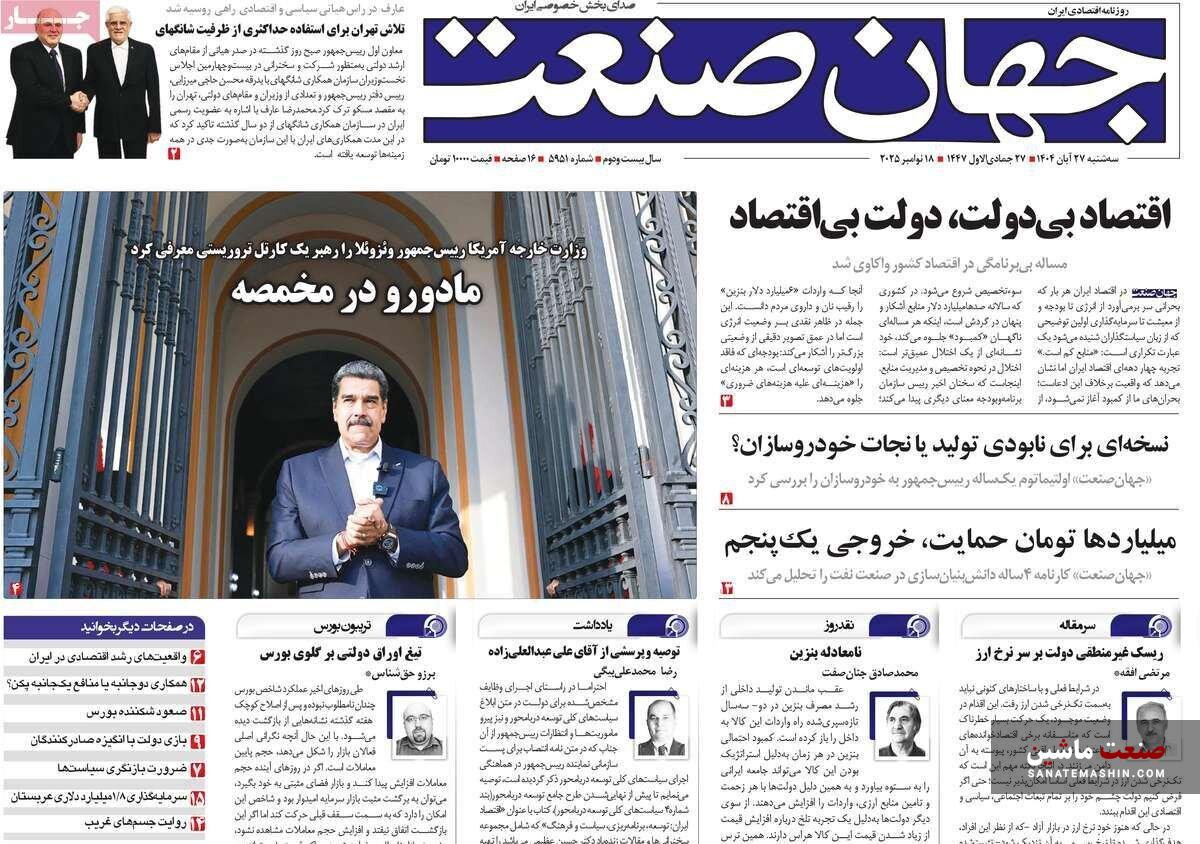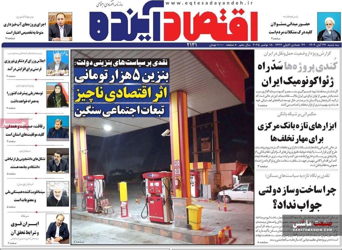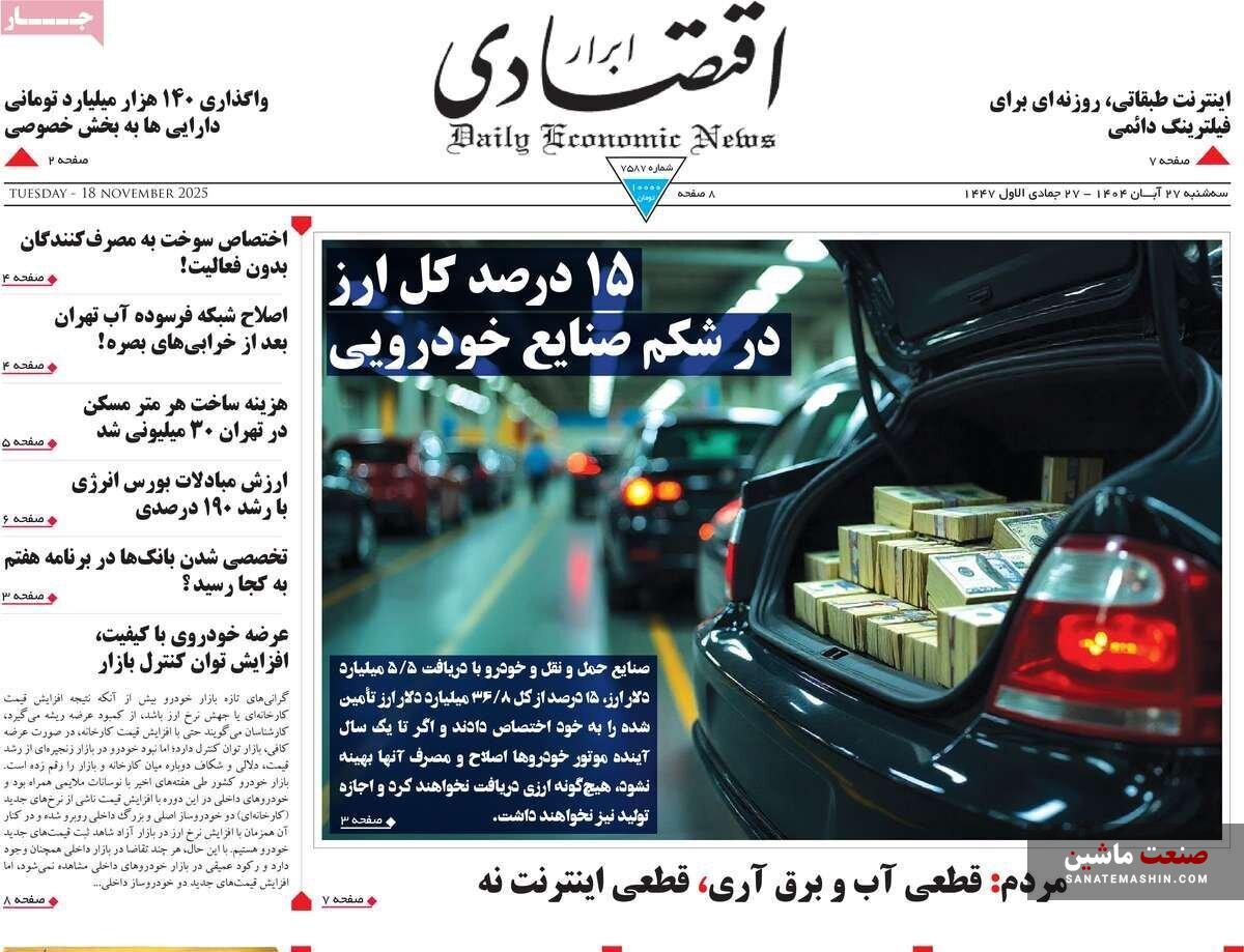 صفحه نخست روزنامه های اقتصادی 26 آبان 1404
