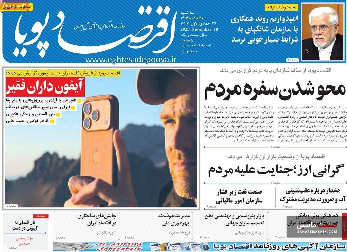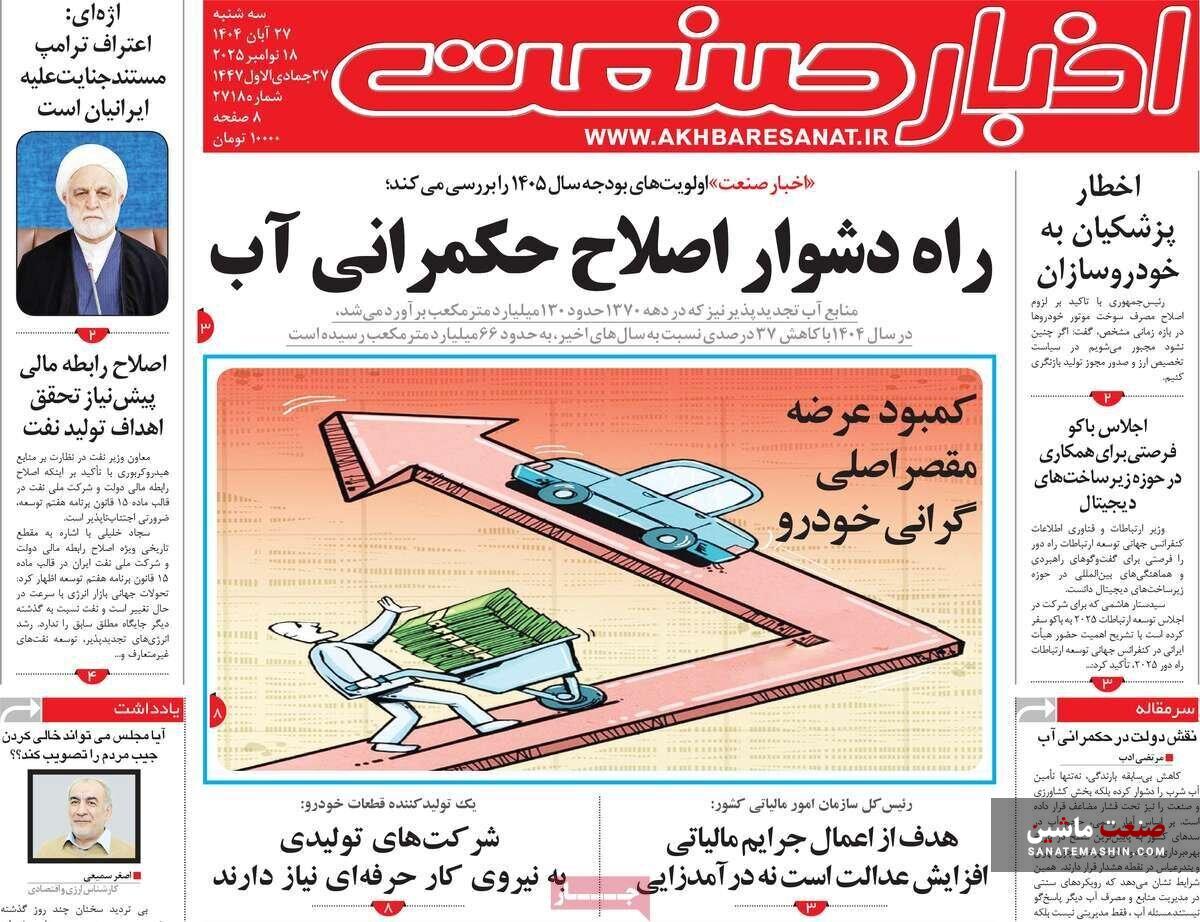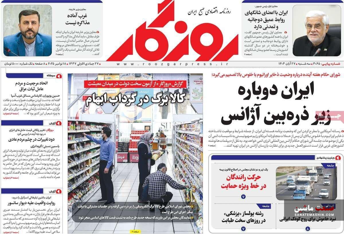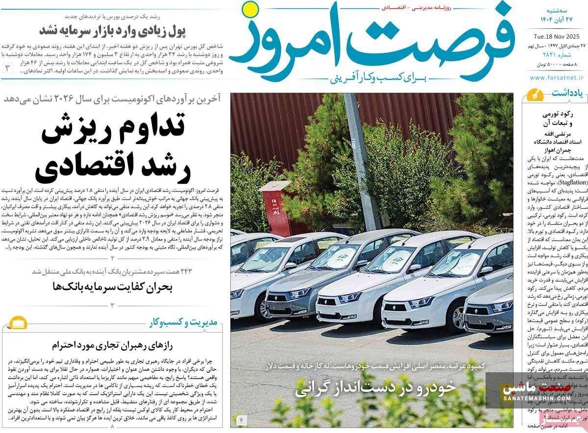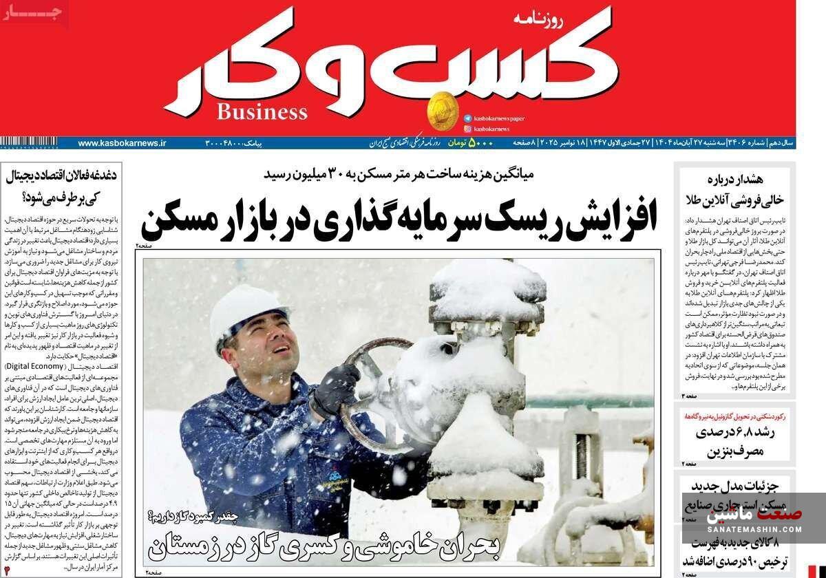 صفحه نخست روزنامه های اقتصادی 26 آبان 1404