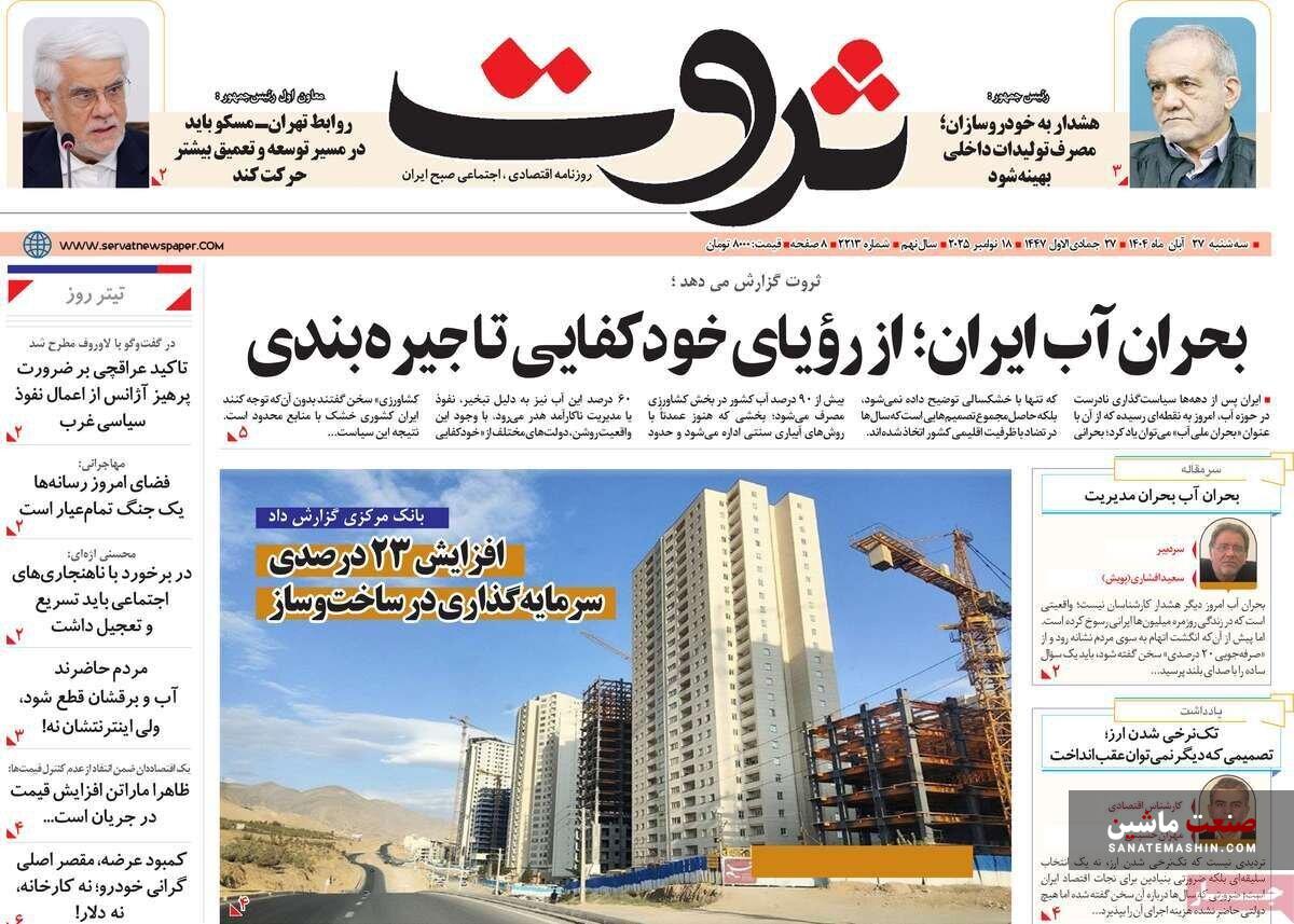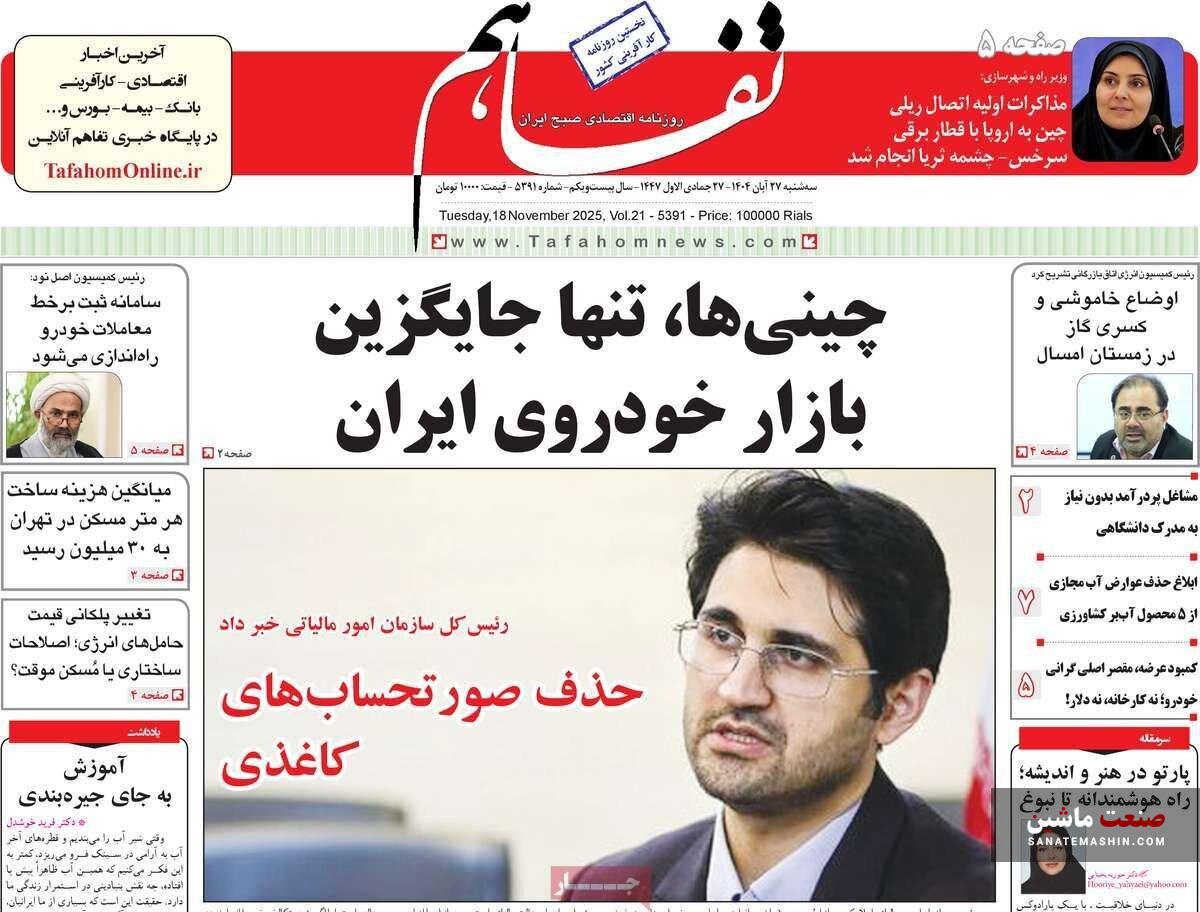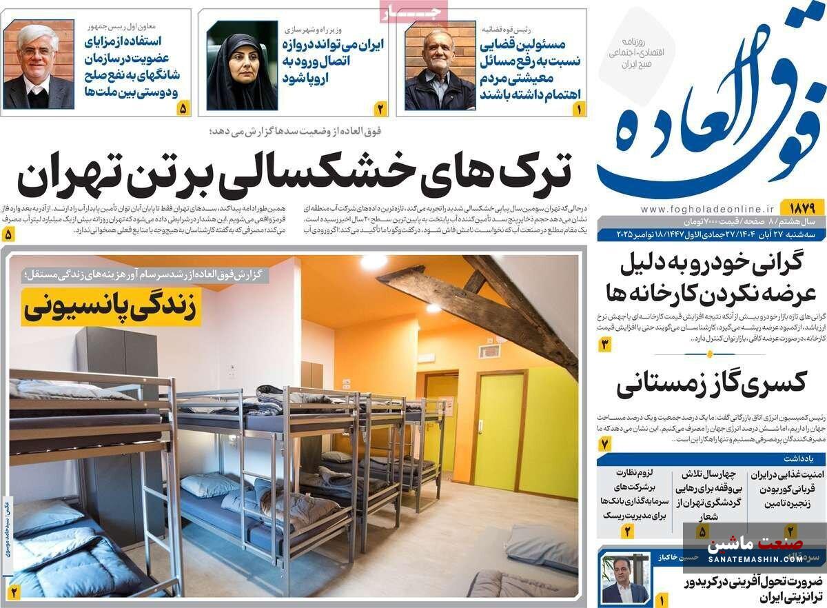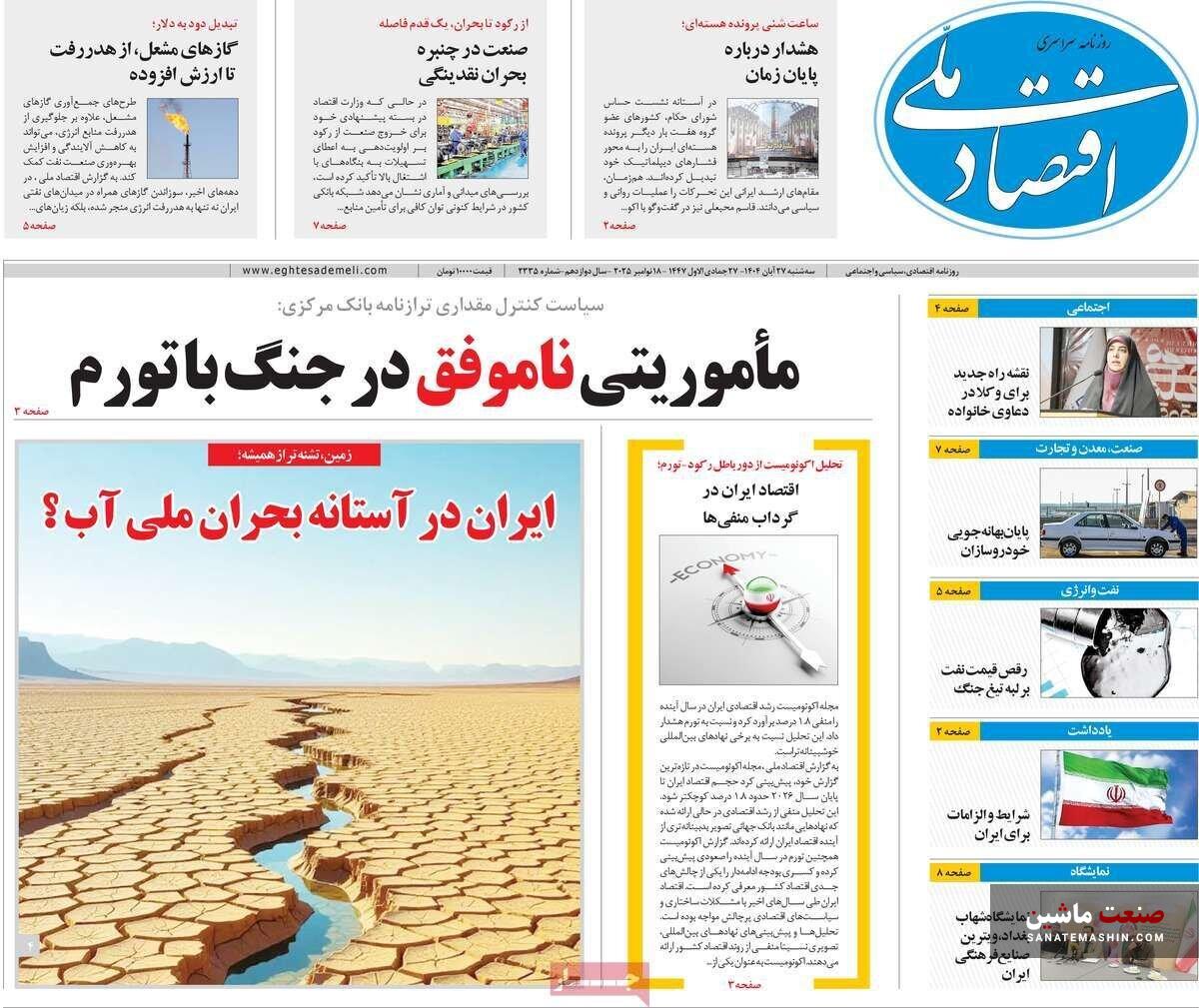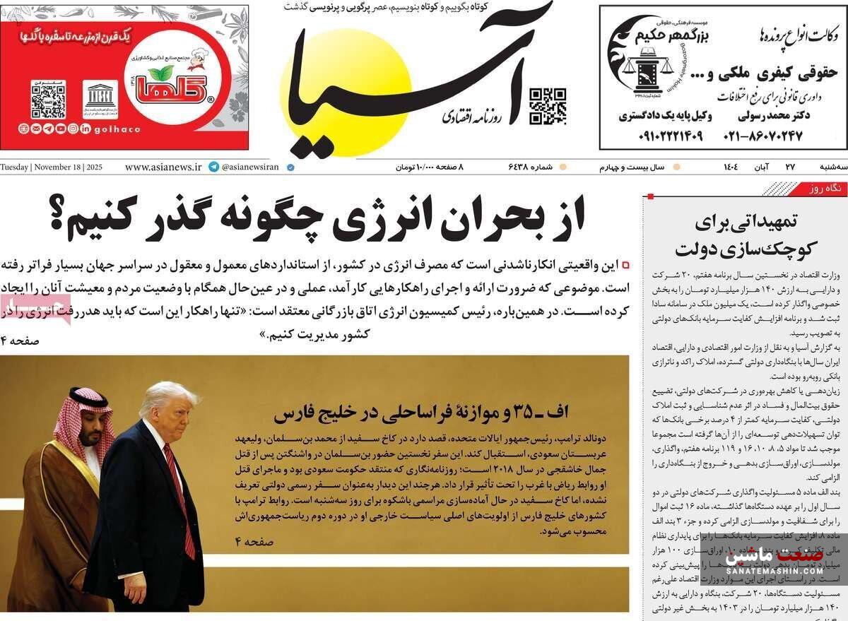 صفحه نخست روزنامه های اقتصادی 26 آبان 1404