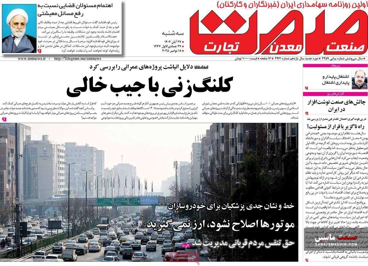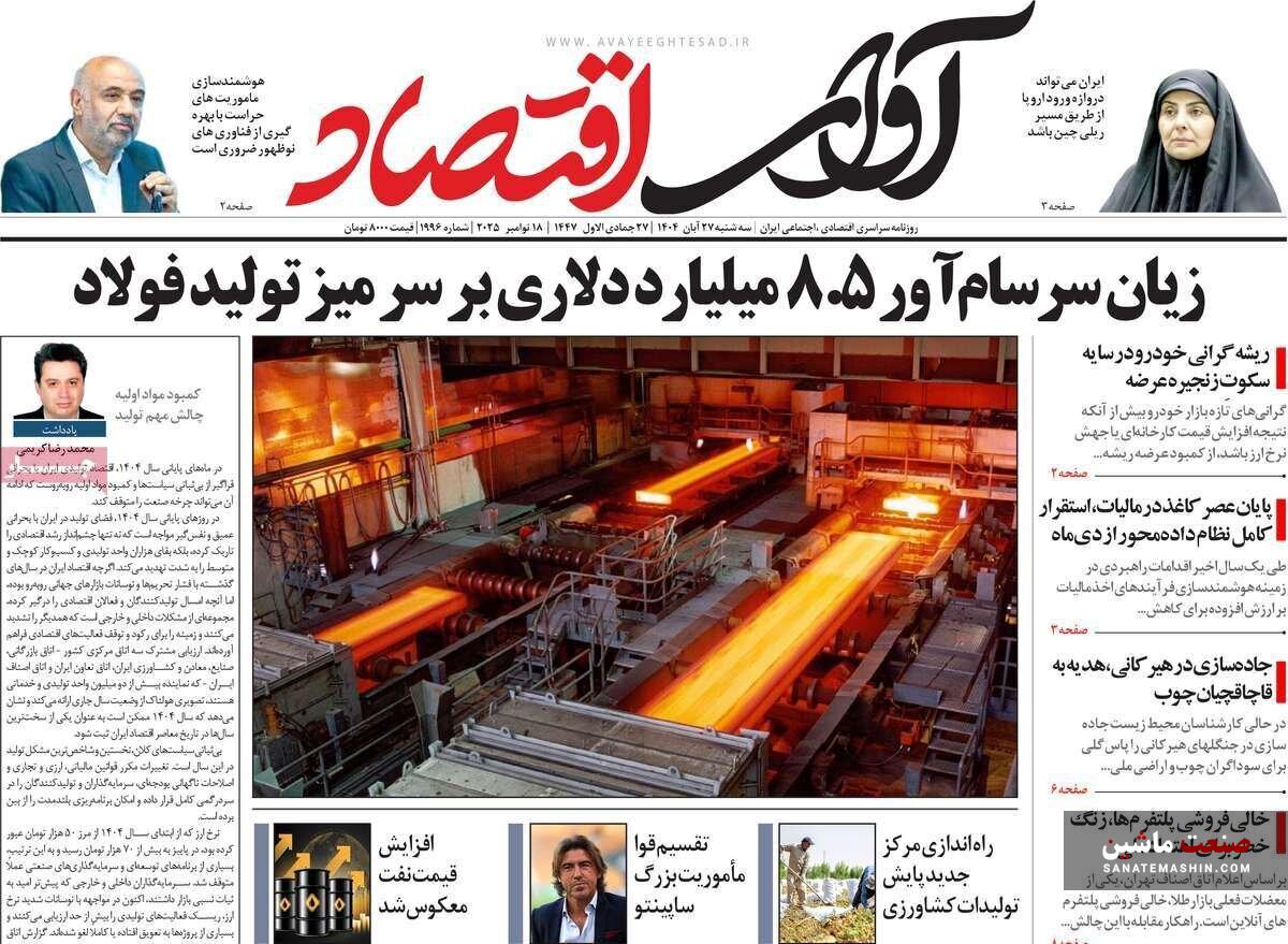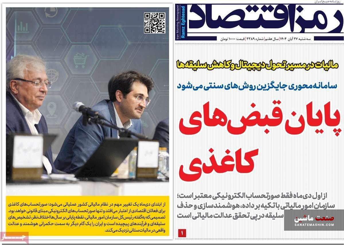 به گزارش صنعت ماشین ؛ صفحه نخست روزنامه های اقتصادی 27 آبان 1404 به شرح زیر است: