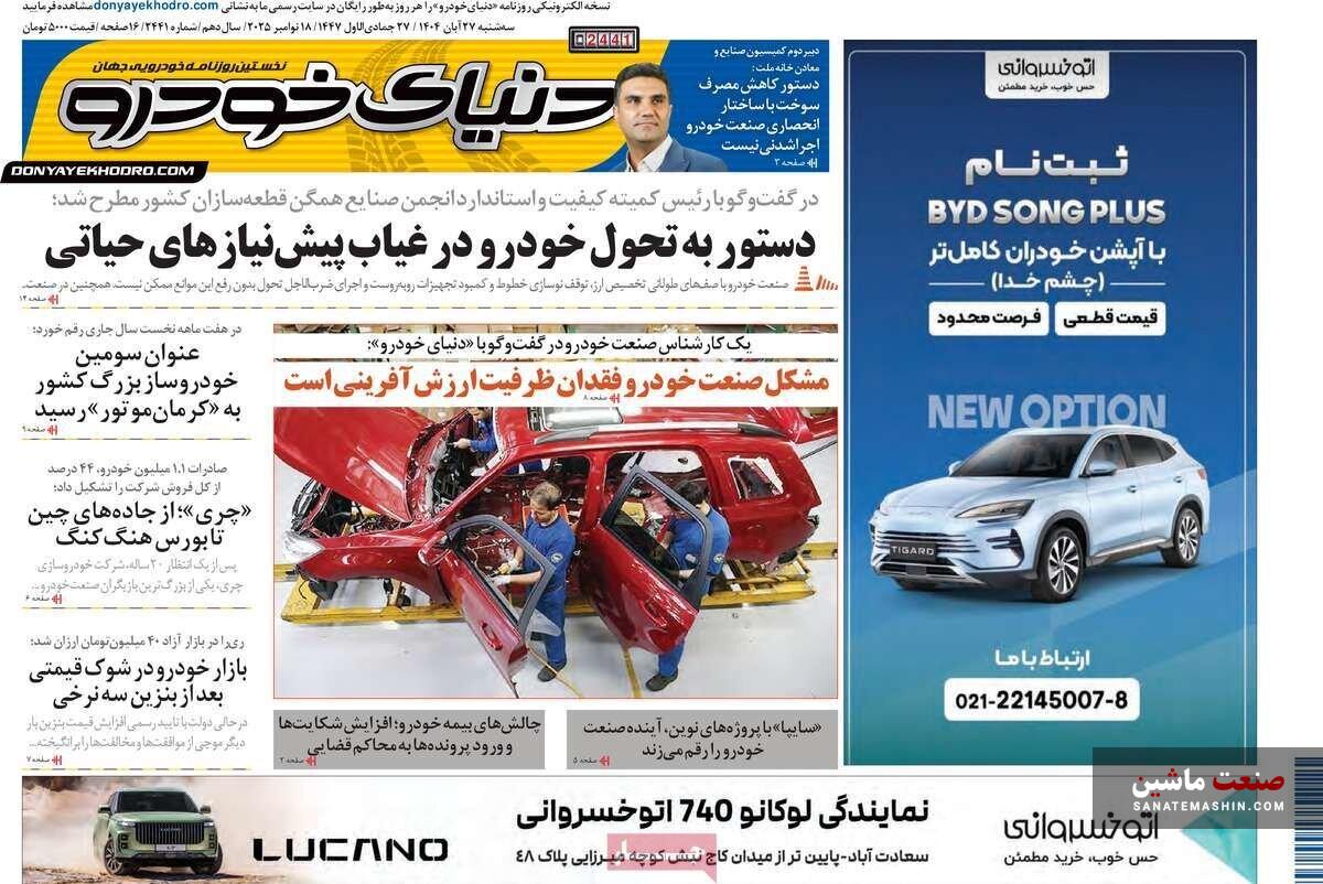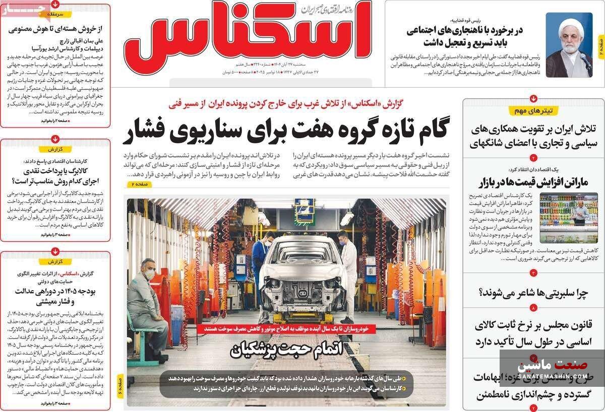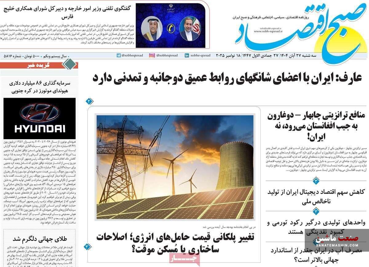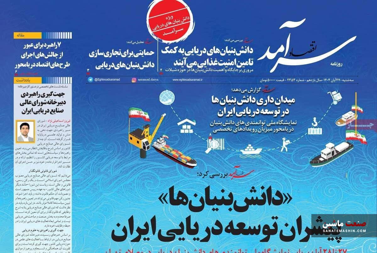به گزارش صنعت ماشین ؛ صفحه نخست روزنامه های اقتصادی 27 آبان 1404 به شرح زیر است:
