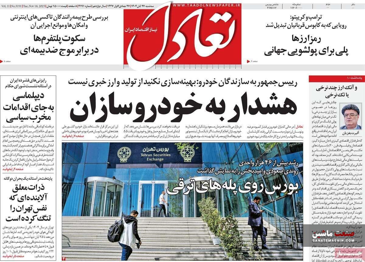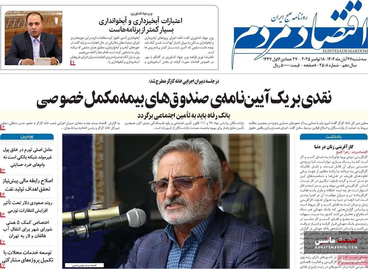 صفحه نخست روزنامه های اقتصادی 19 آبان 1404