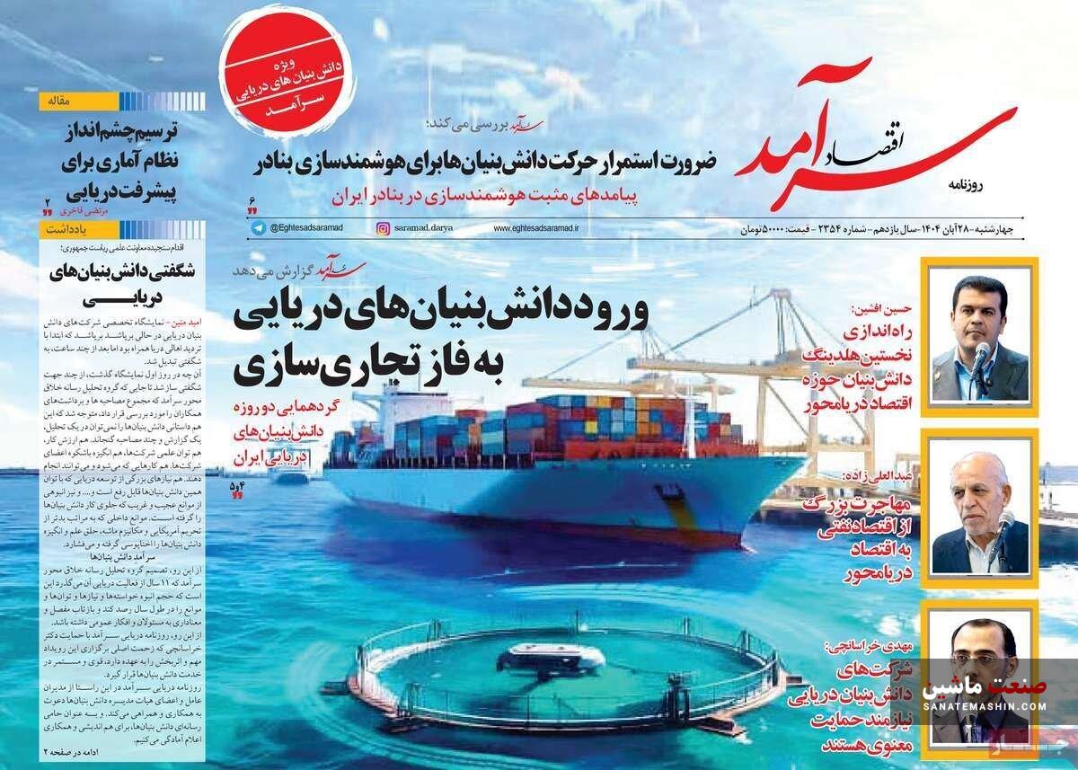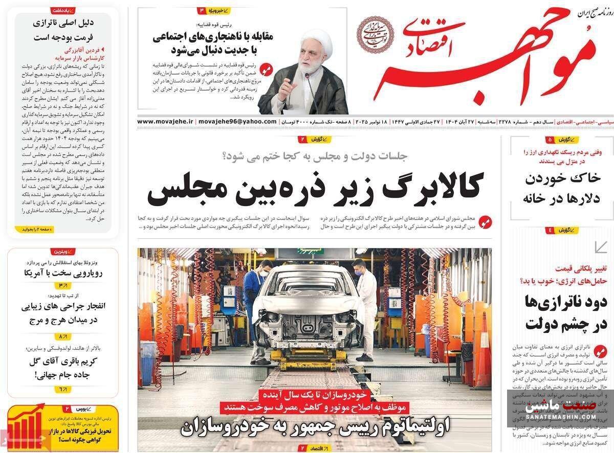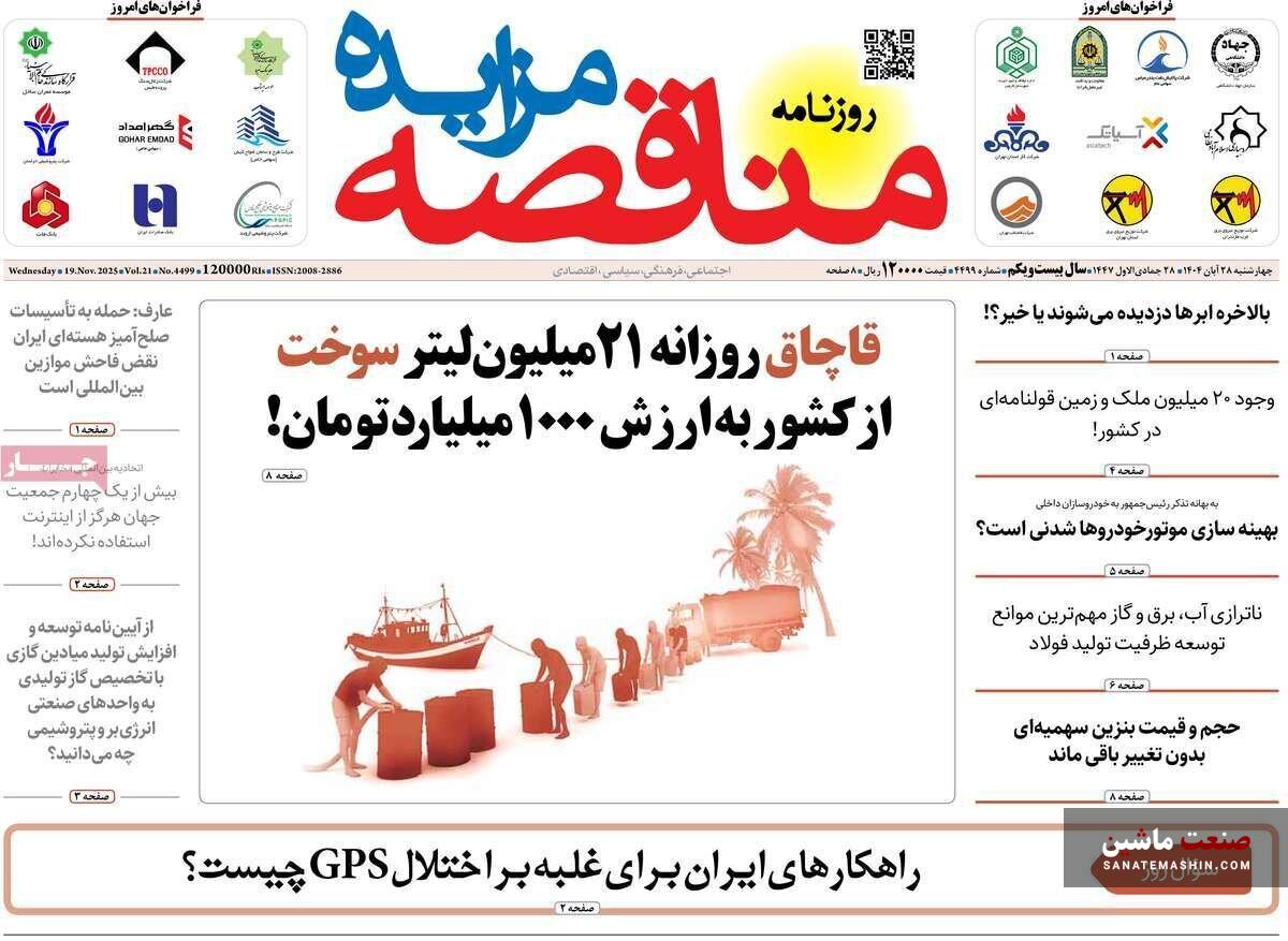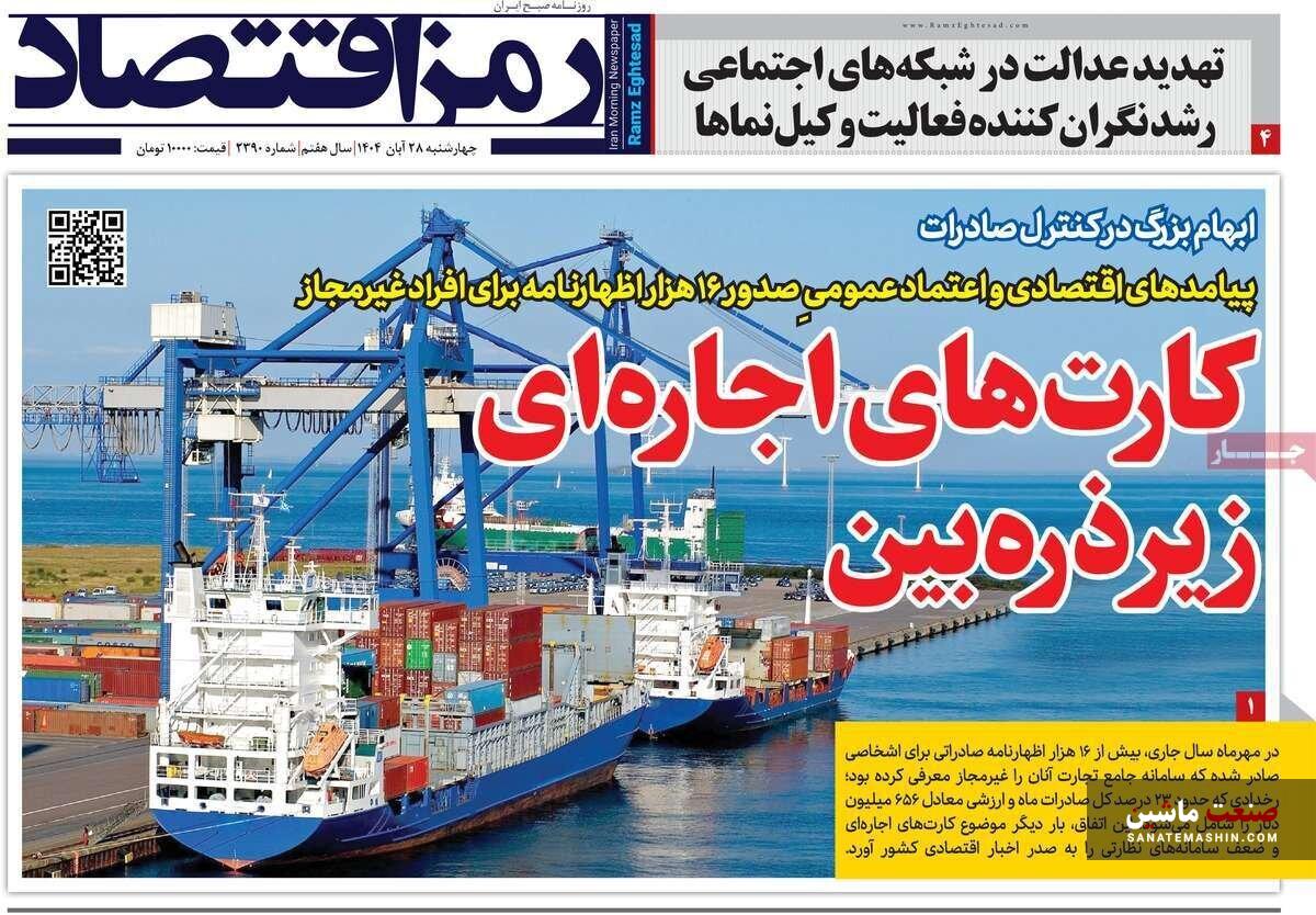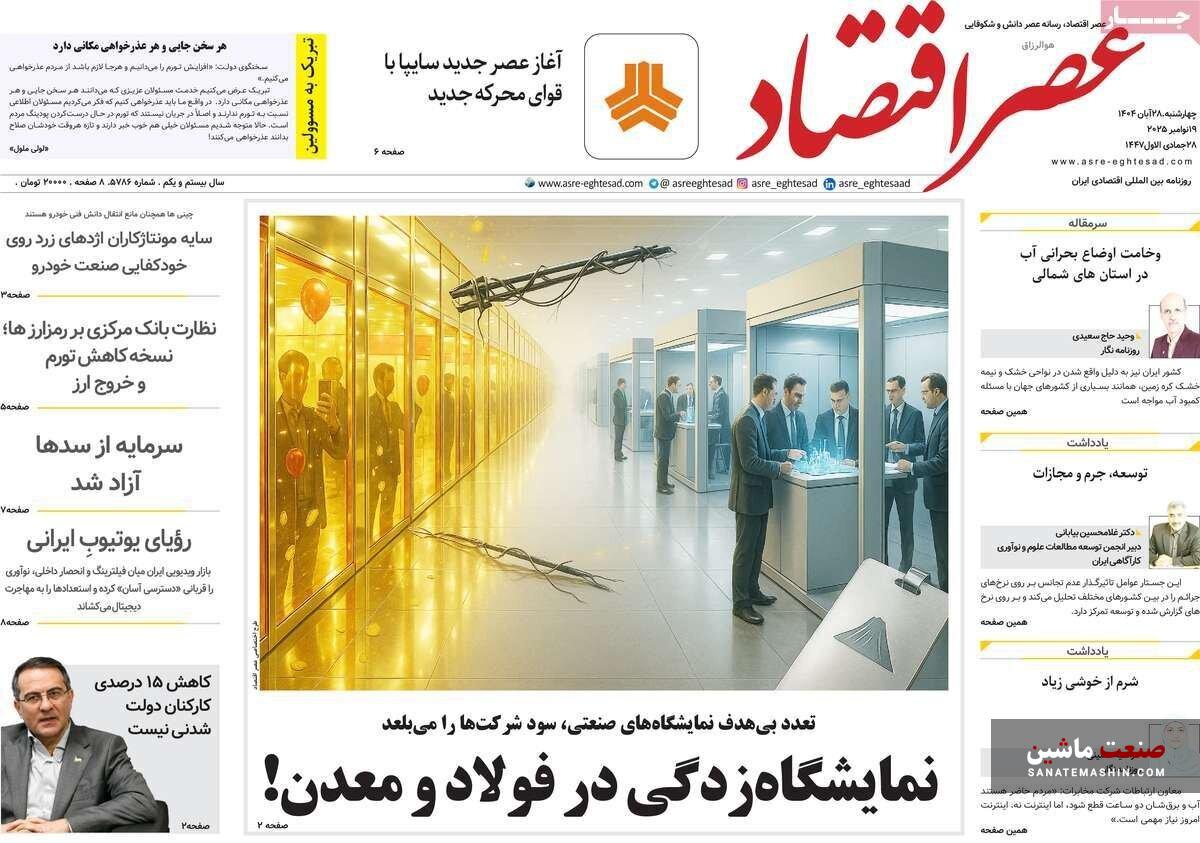 صفحه نخست روزنامه های اقتصادی 26 آبان 1404
