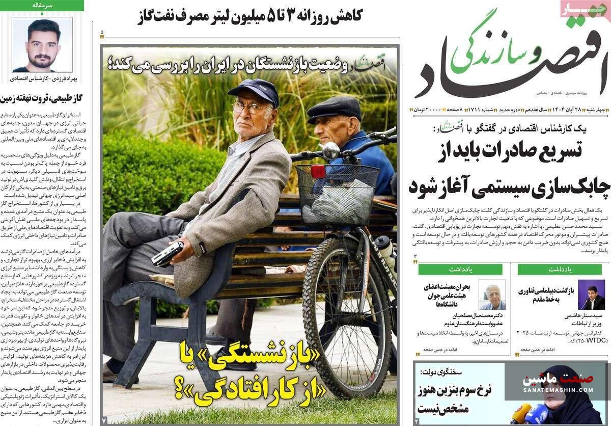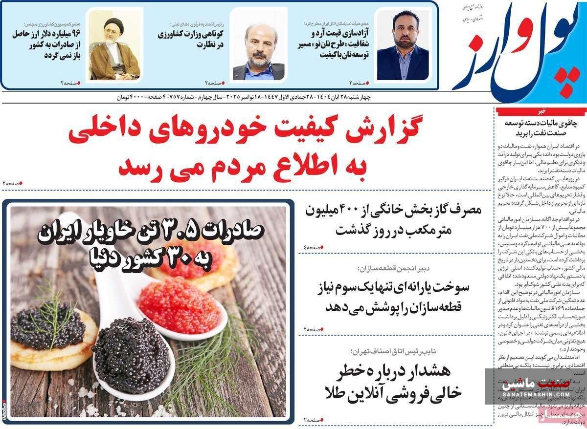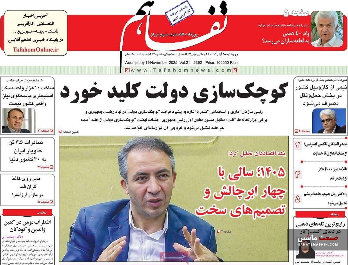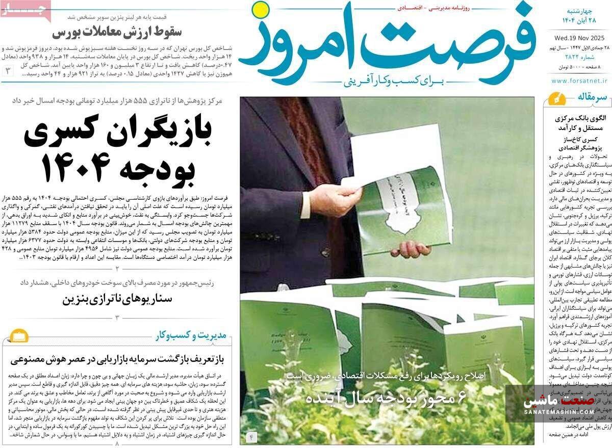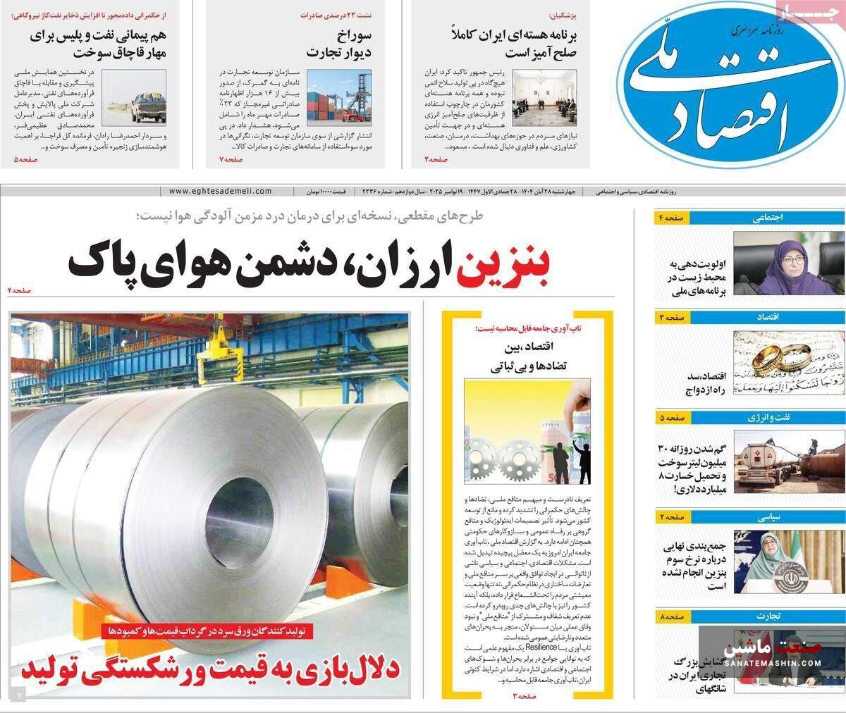 صفحه نخست روزنامه های اقتصادی 26 آبان 1404