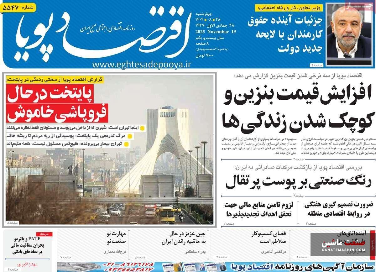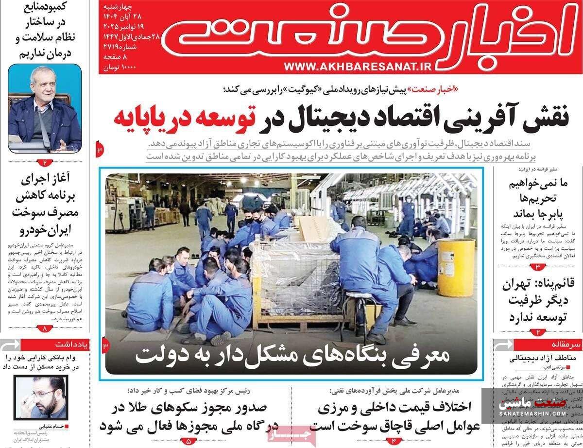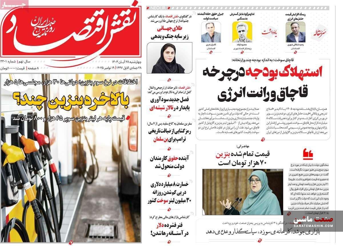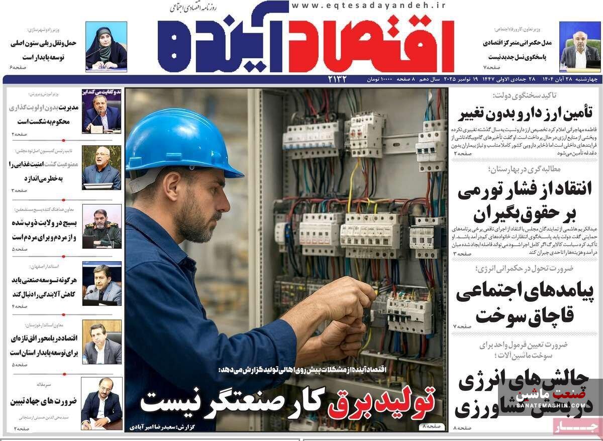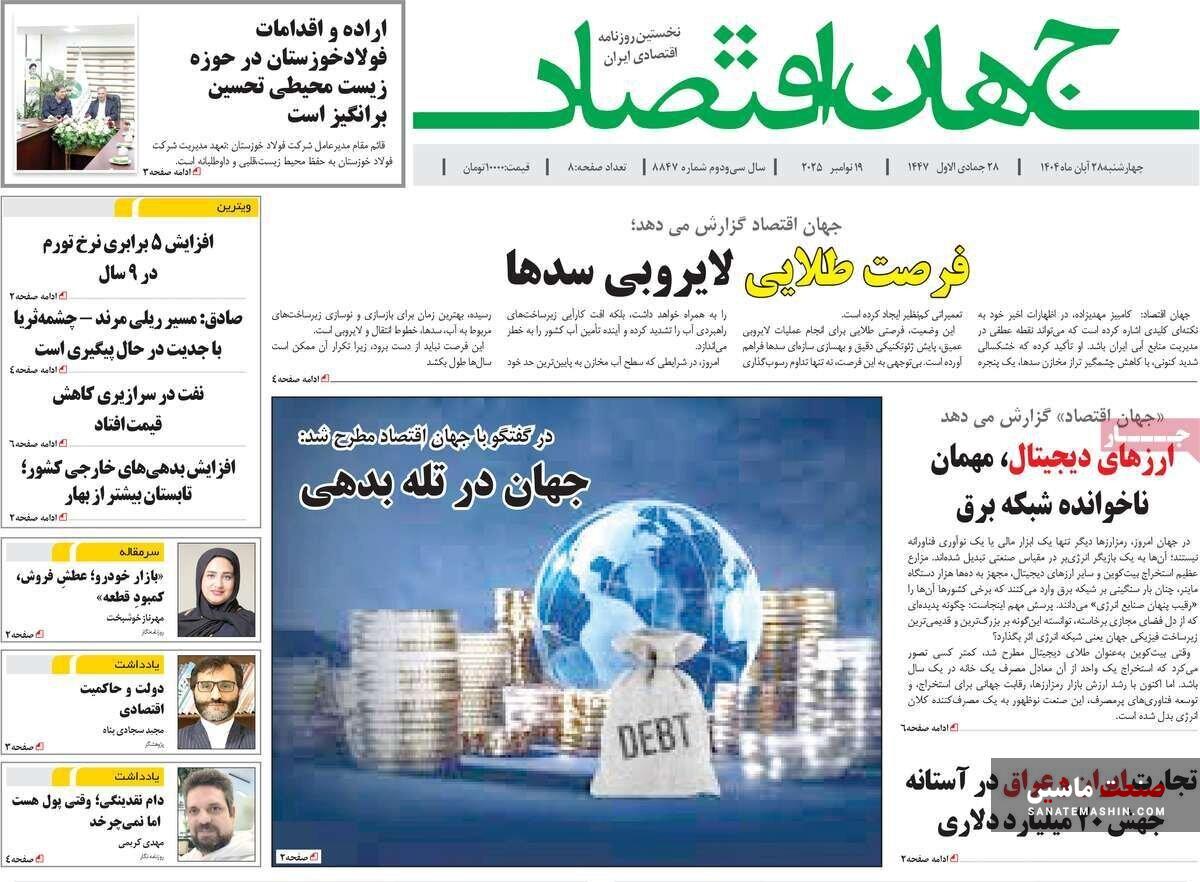 صفحه نخست روزنامه های اقتصادی 19 آبان 1404