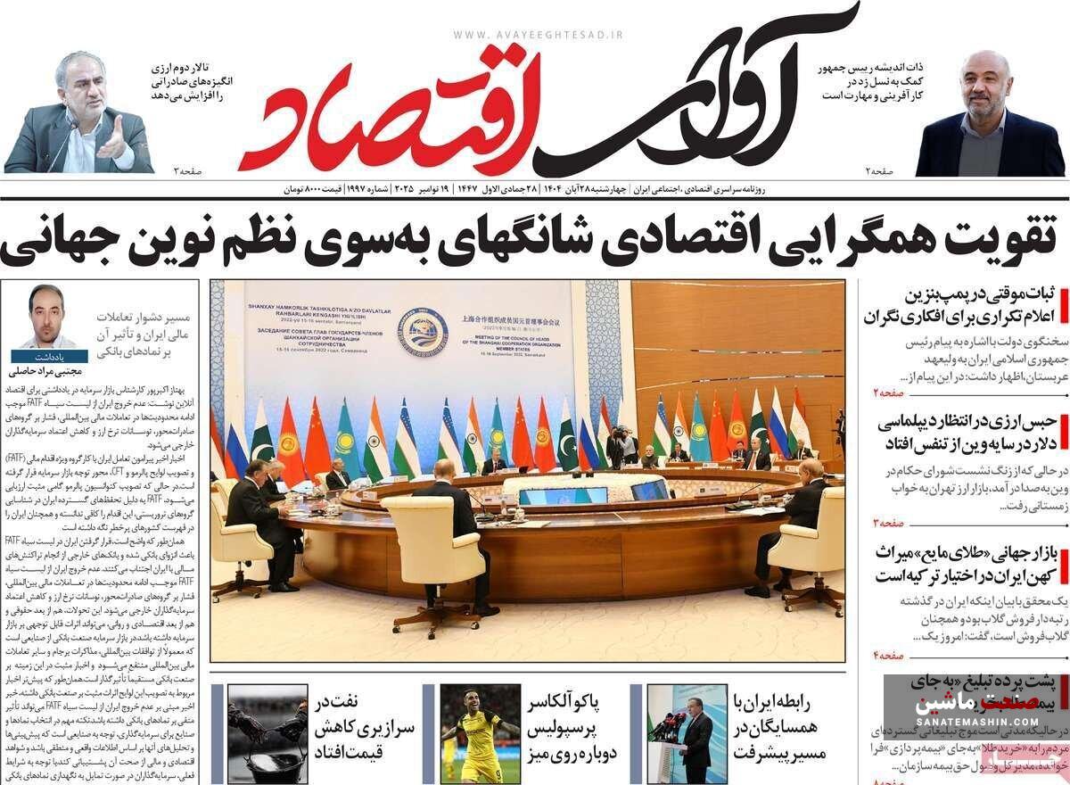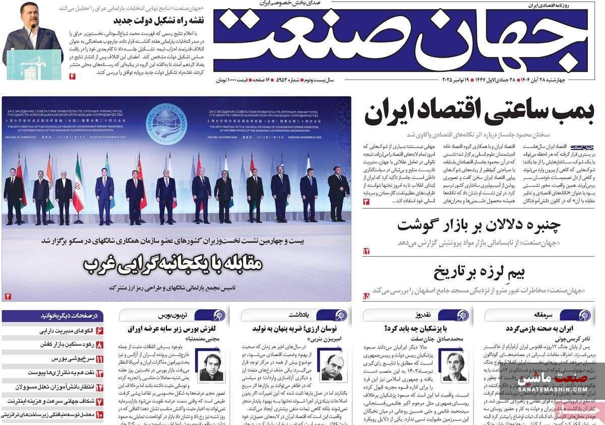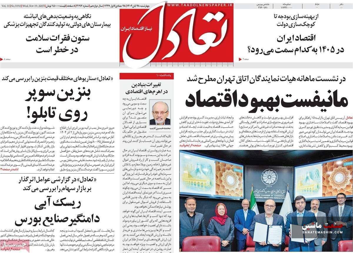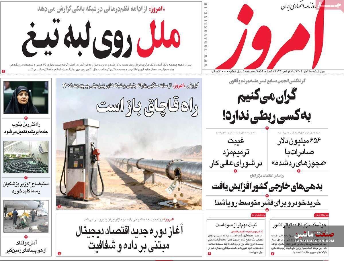 صفحه نخست روزنامه های اقتصادی 19 آبان 1404