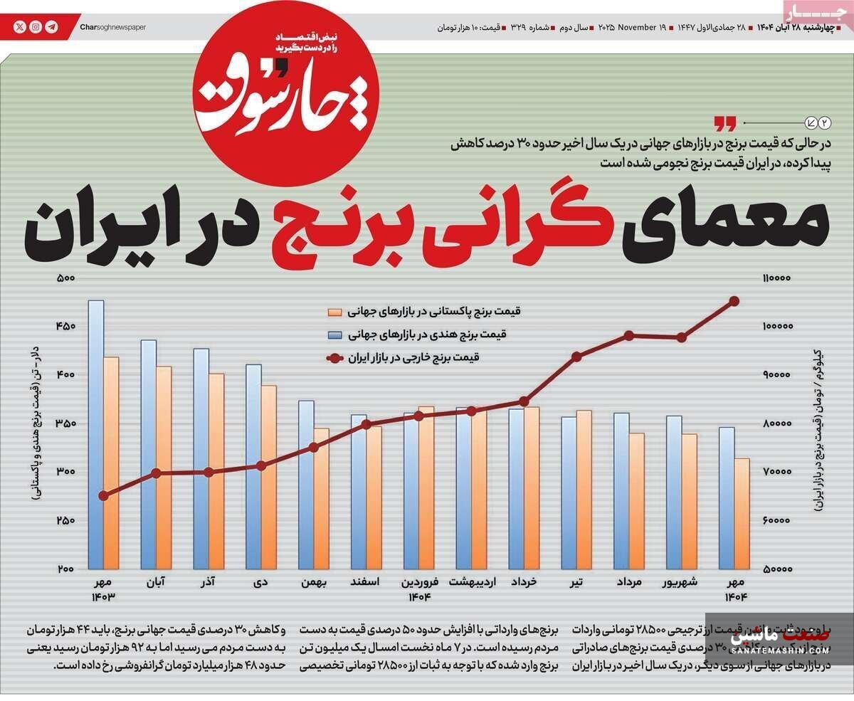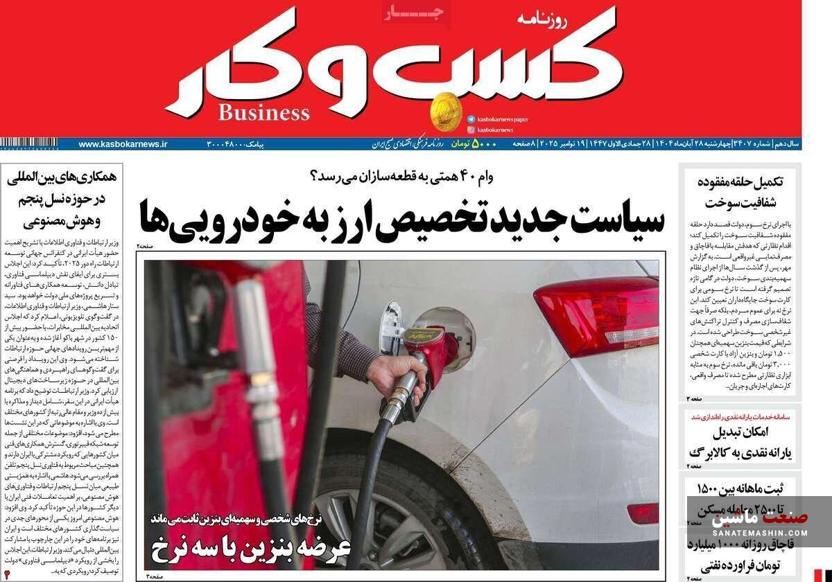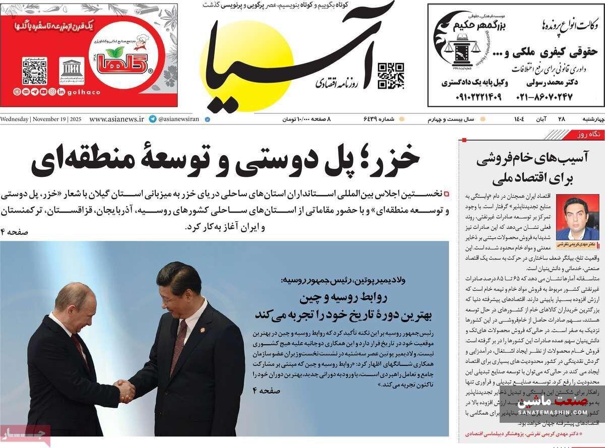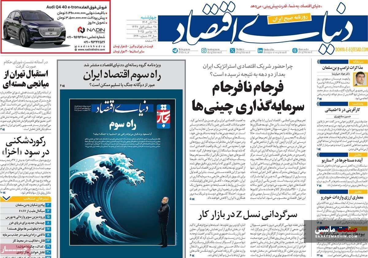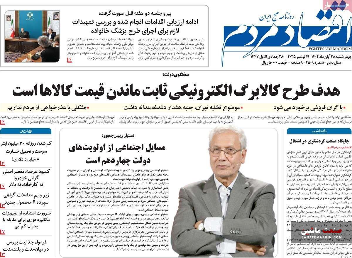 صفحه نخست روزنامه های اقتصادی 19 آبان 1404