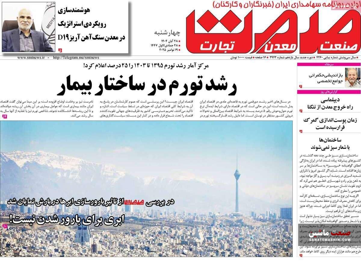 به گزارش صنعت ماشین ؛ صفحه نخست روزنامه های اقتصادی 28 آبان 1404 به شرح زیر است: