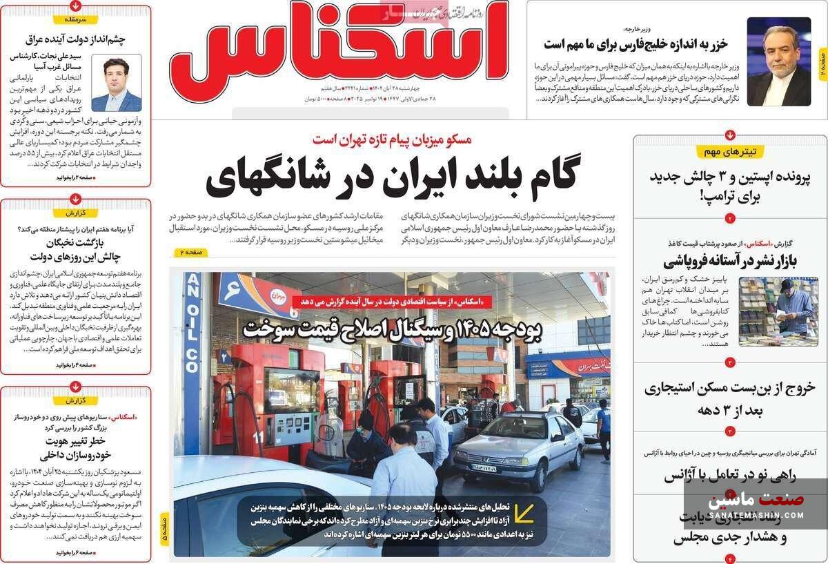 صفحه نخست روزنامه های اقتصادی 20 آبان 1404