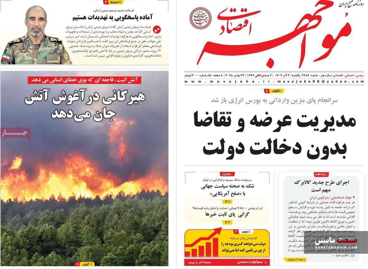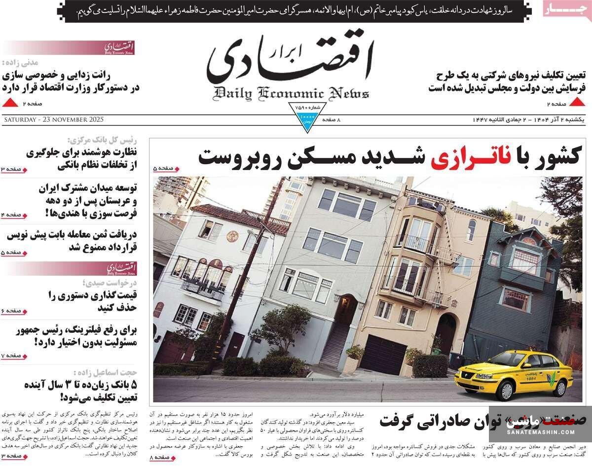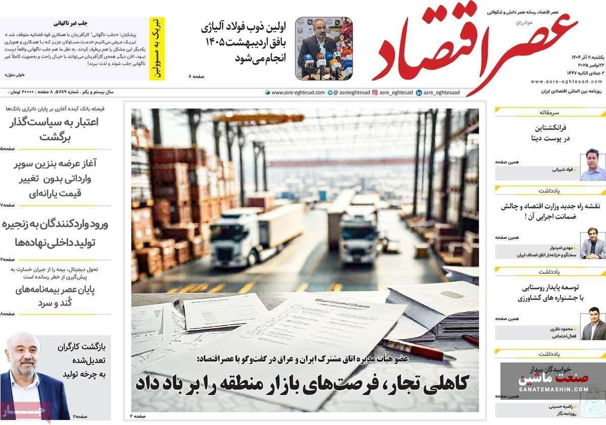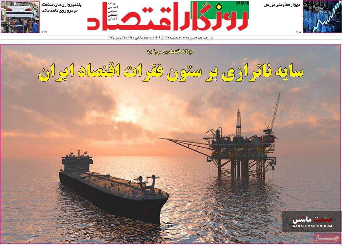 صفحه نخست روزنامه های اقتصادی 26 آبان 1404