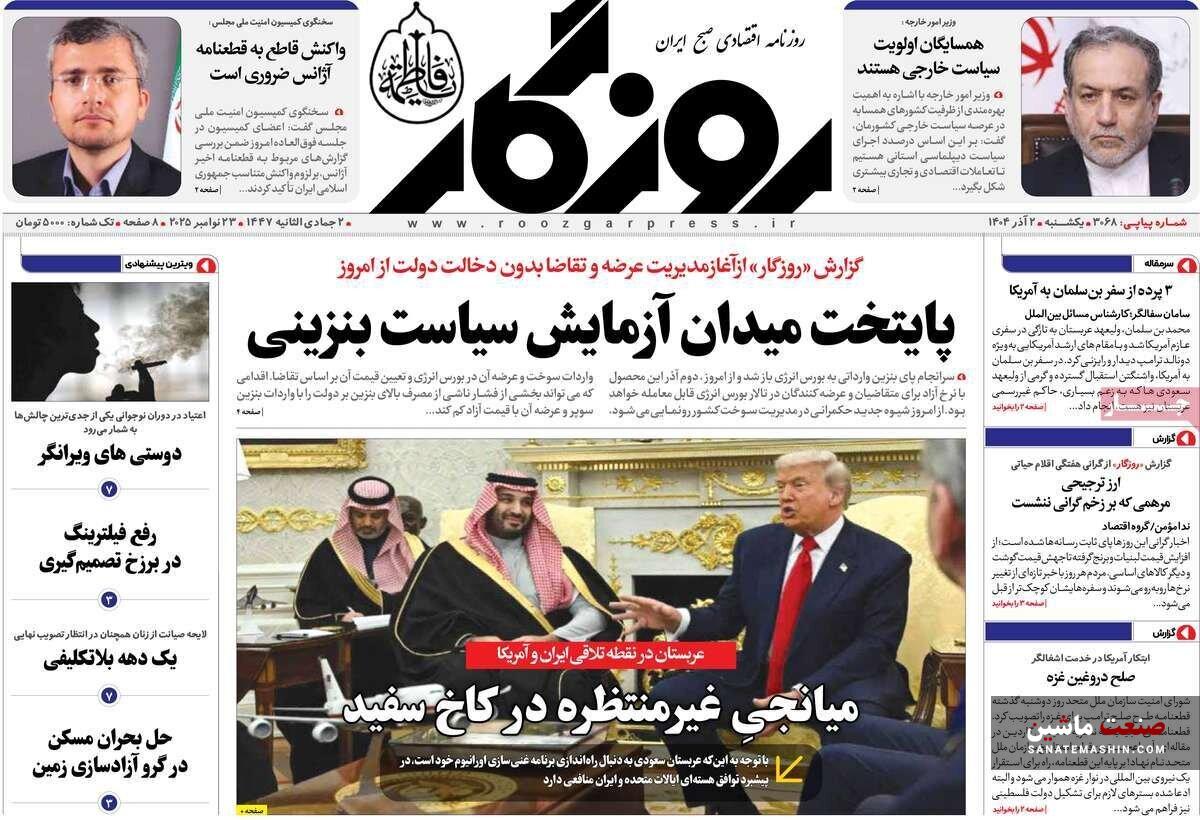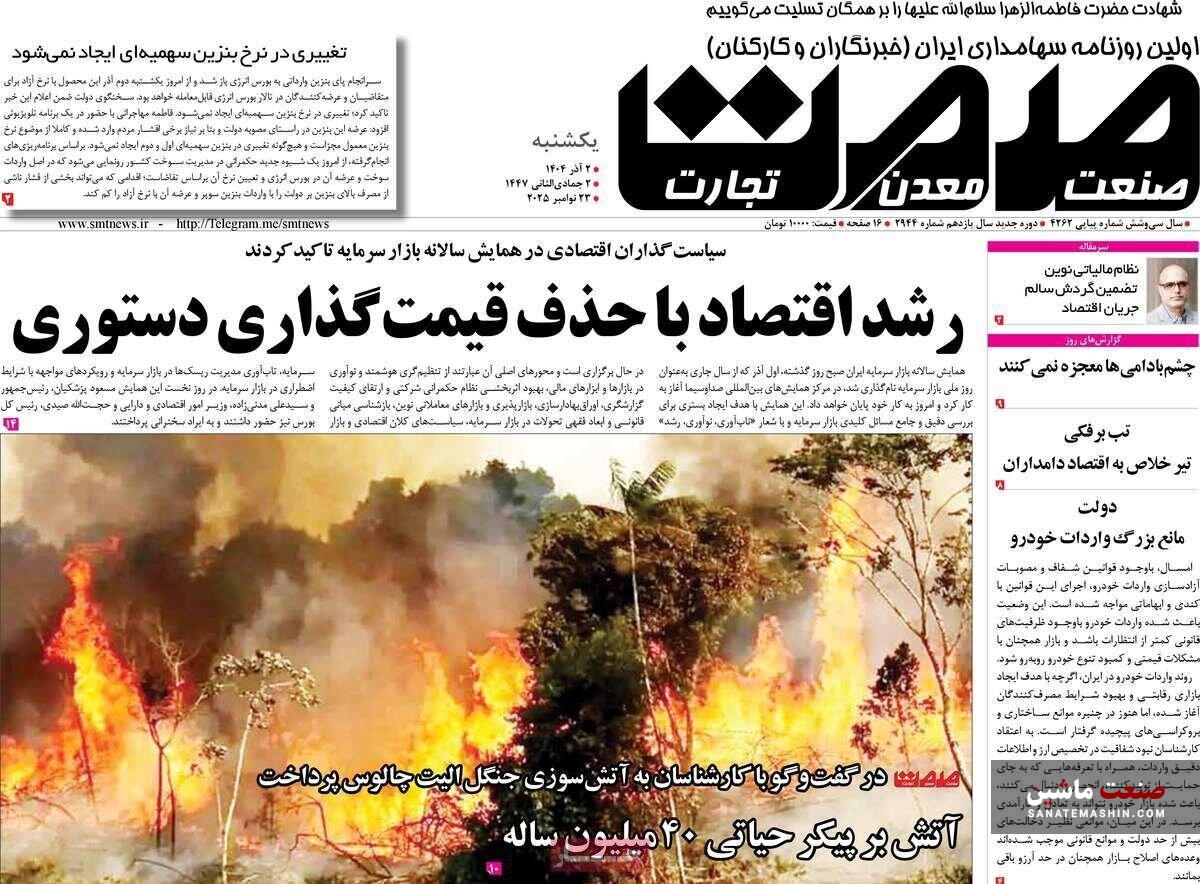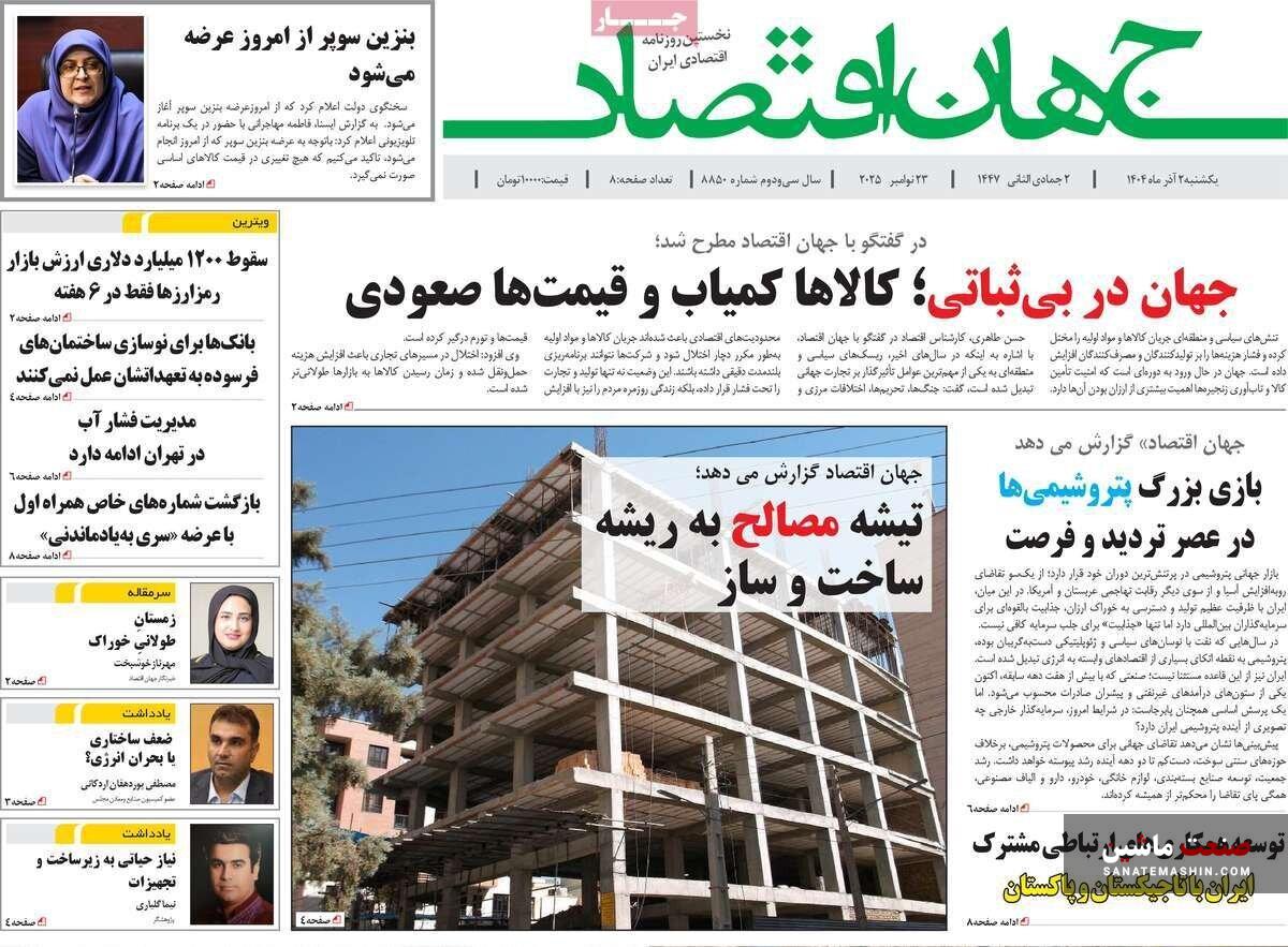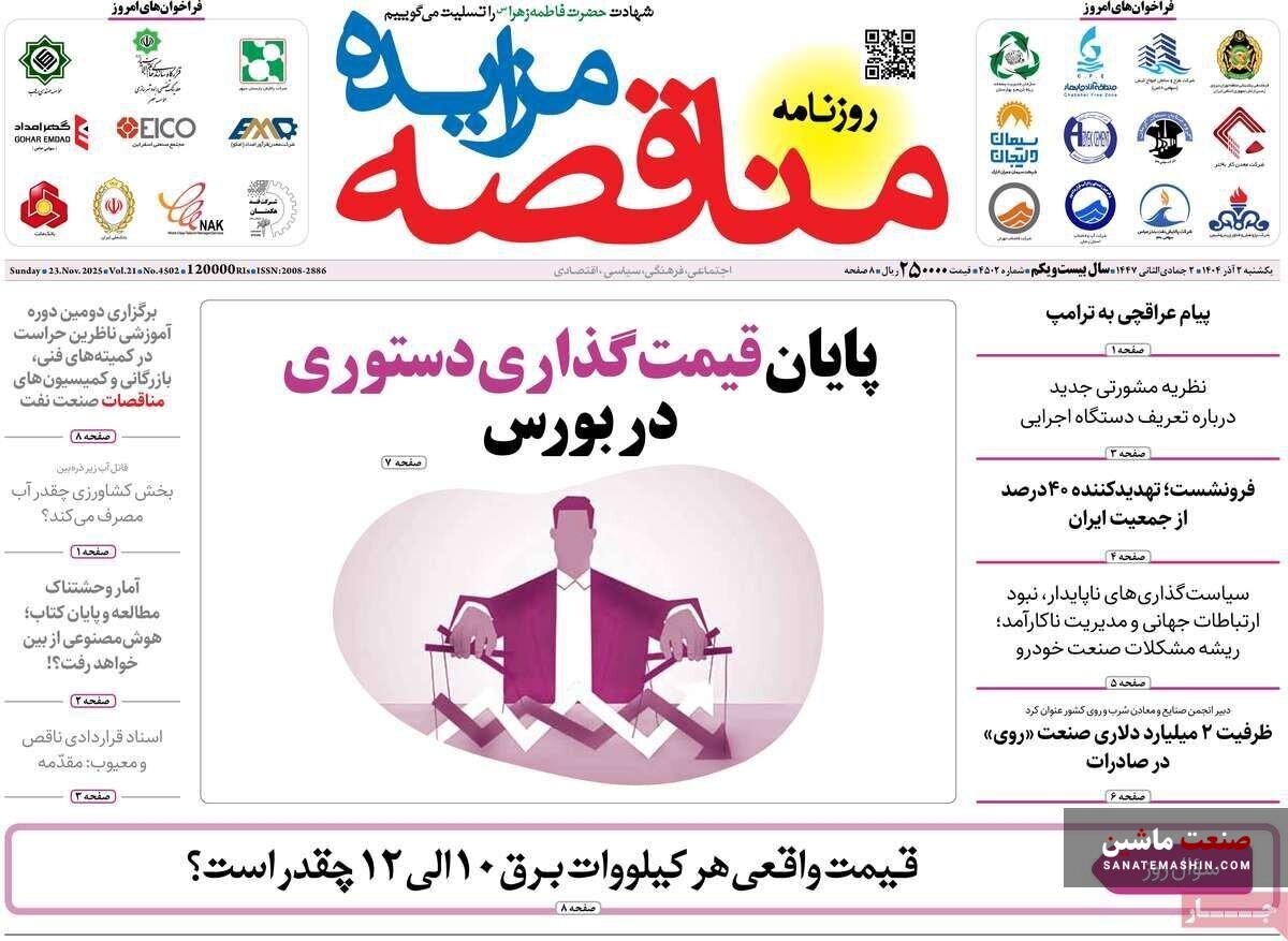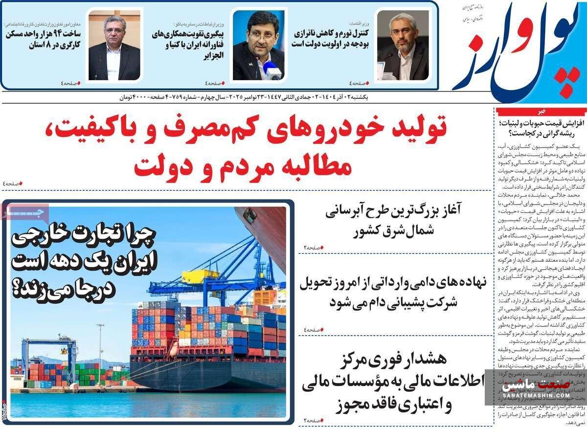 صفحه نخست روزنامه های اقتصادی 26 آبان 1404
