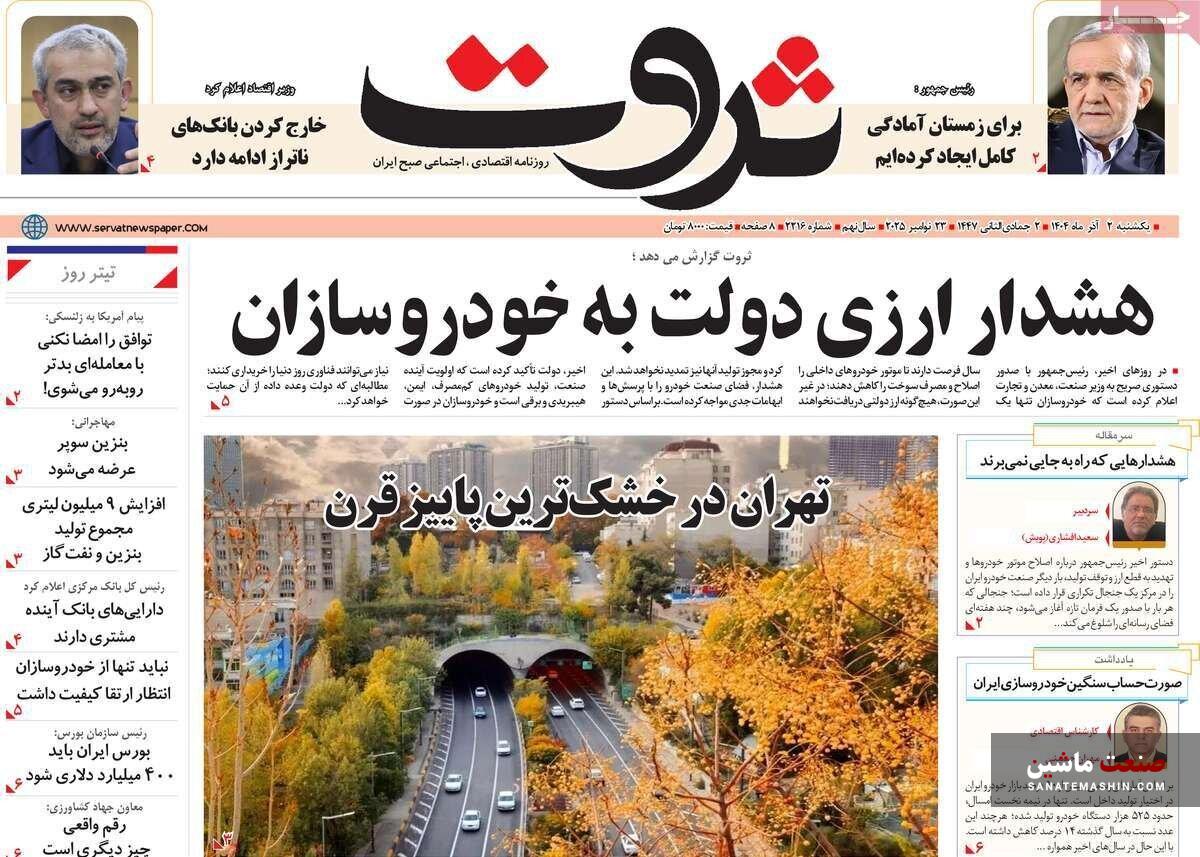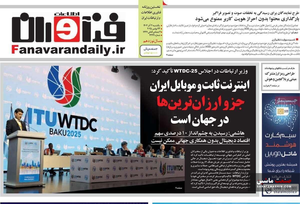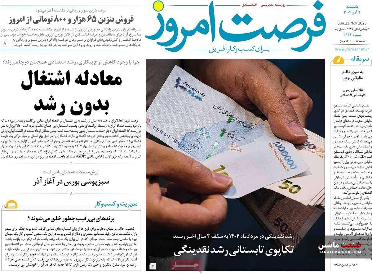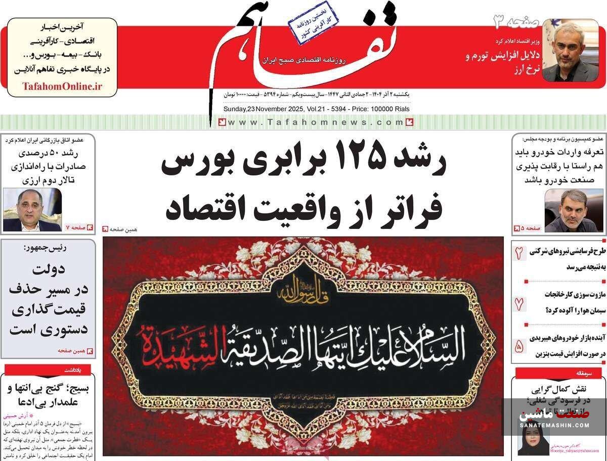 صفحه نخست روزنامه های اقتصادی 26 آبان 1404