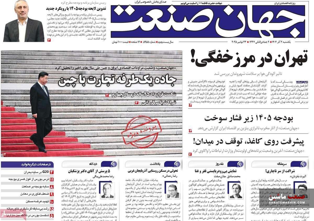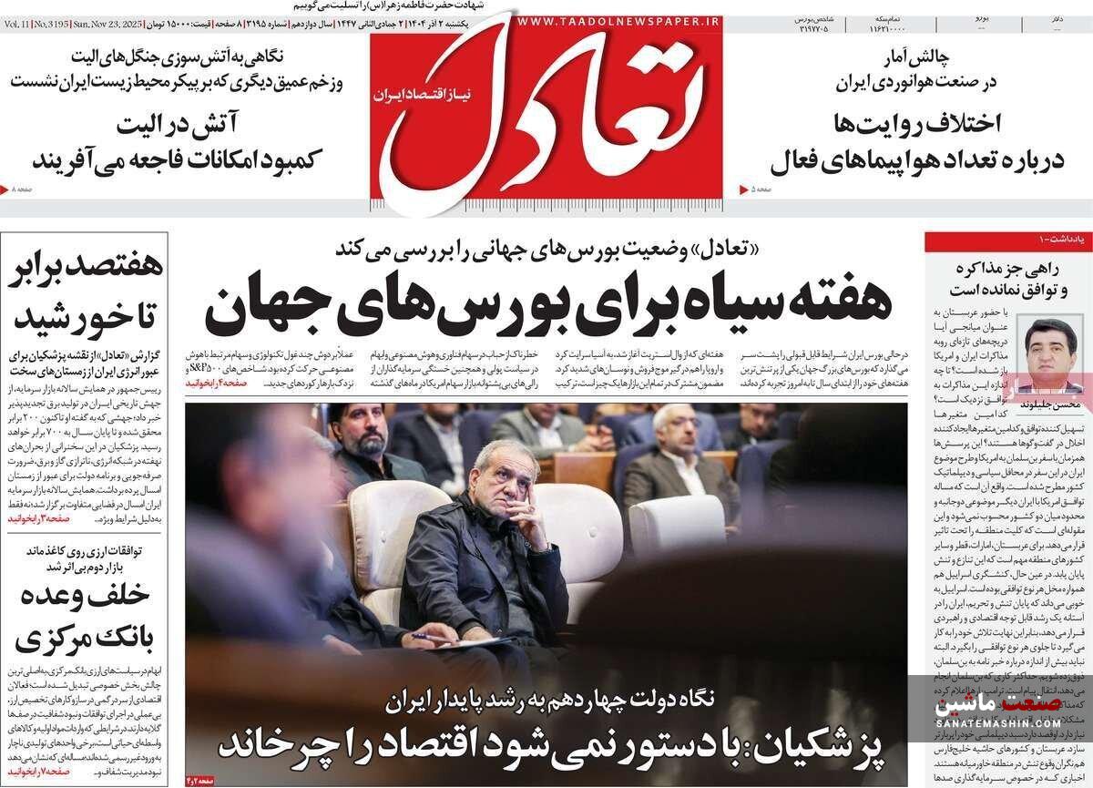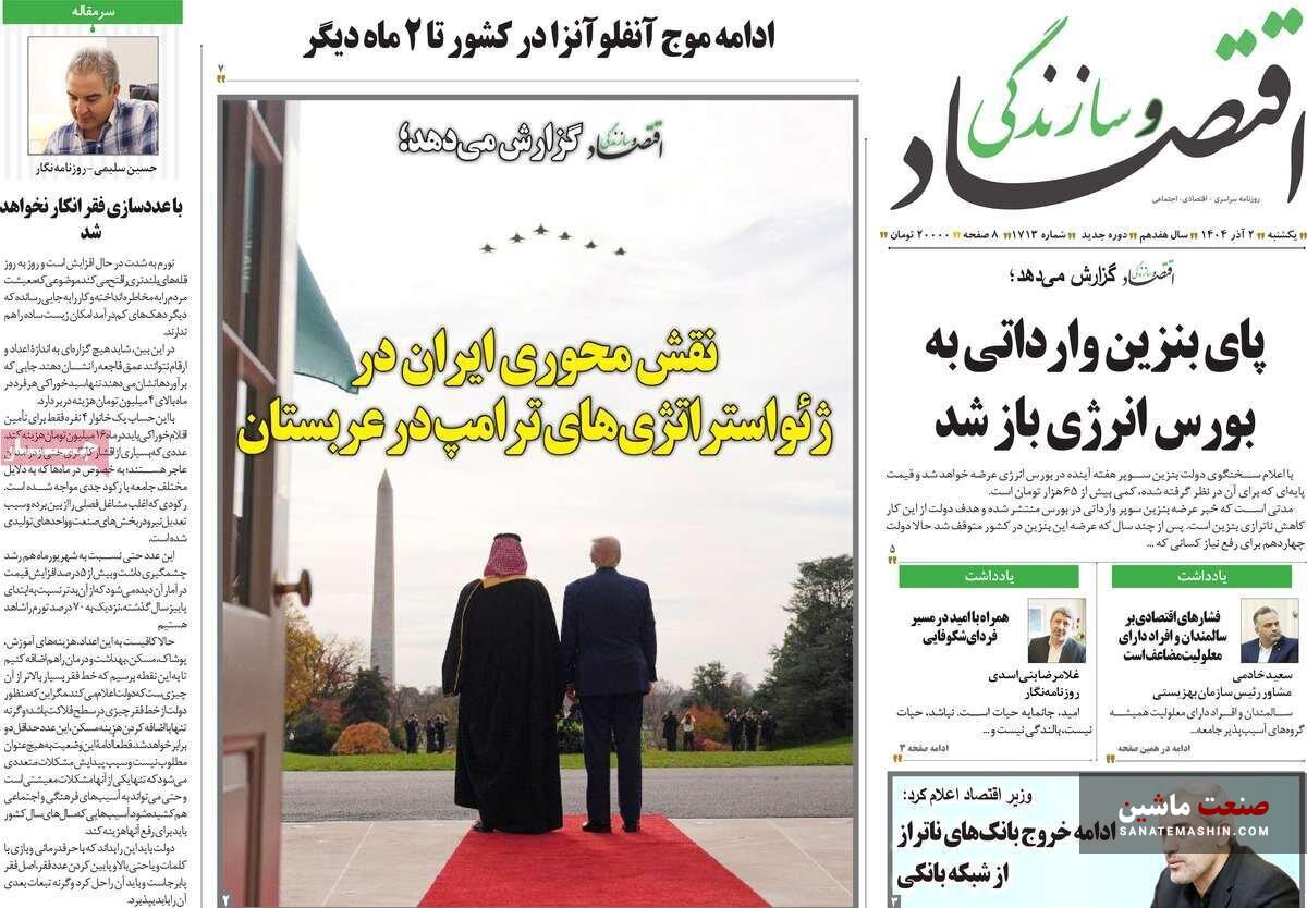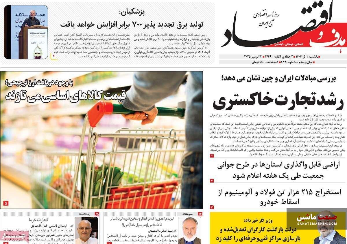 صفحه نخست روزنامه های اقتصادی 24 آبان 1404