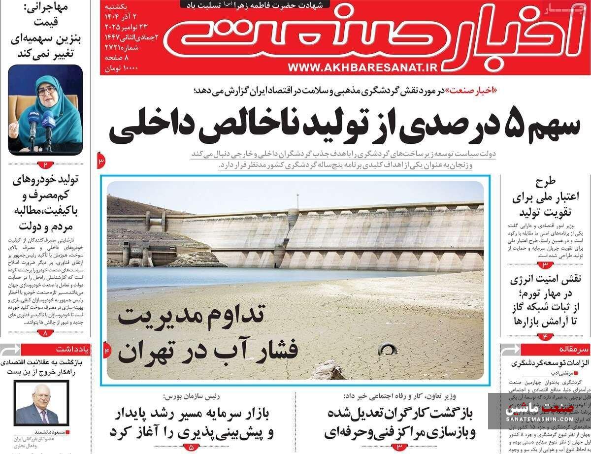 صفحه نخست روزنامه های اقتصادی 22 آبان 1404