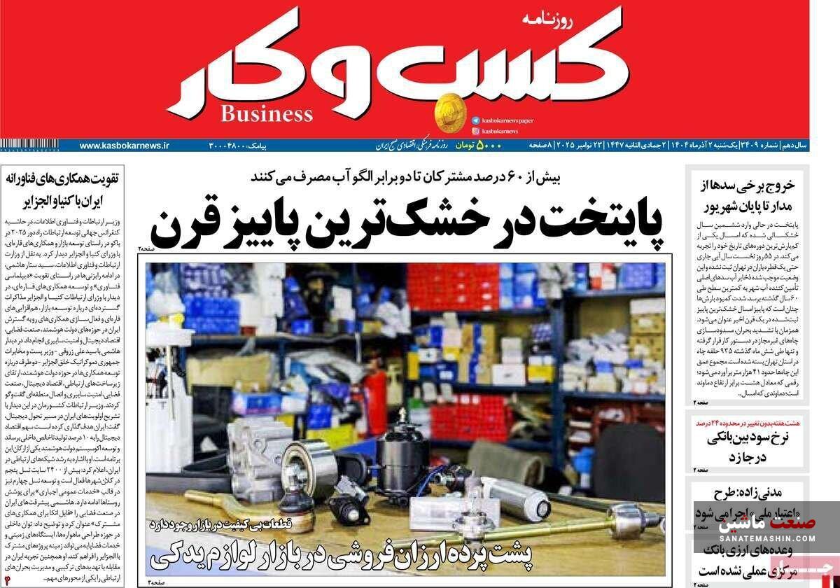 صفحه نخست روزنامه های اقتصادی 29 آبان 1404