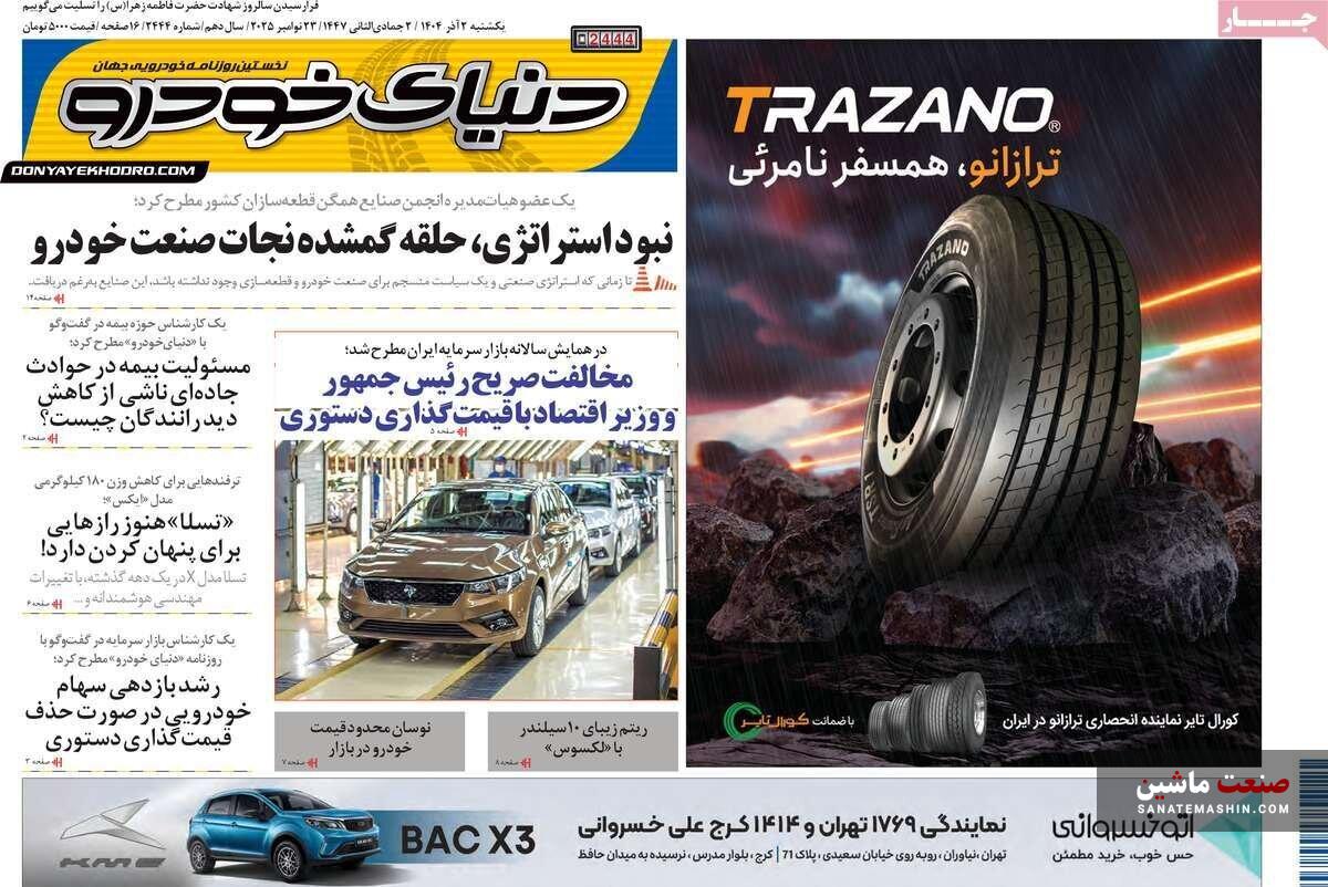 به گزارش صنعت ماشین ؛ صفحه نخست روزنامه های اقتصادی 2 آذر 1404 به شرح زیر است: