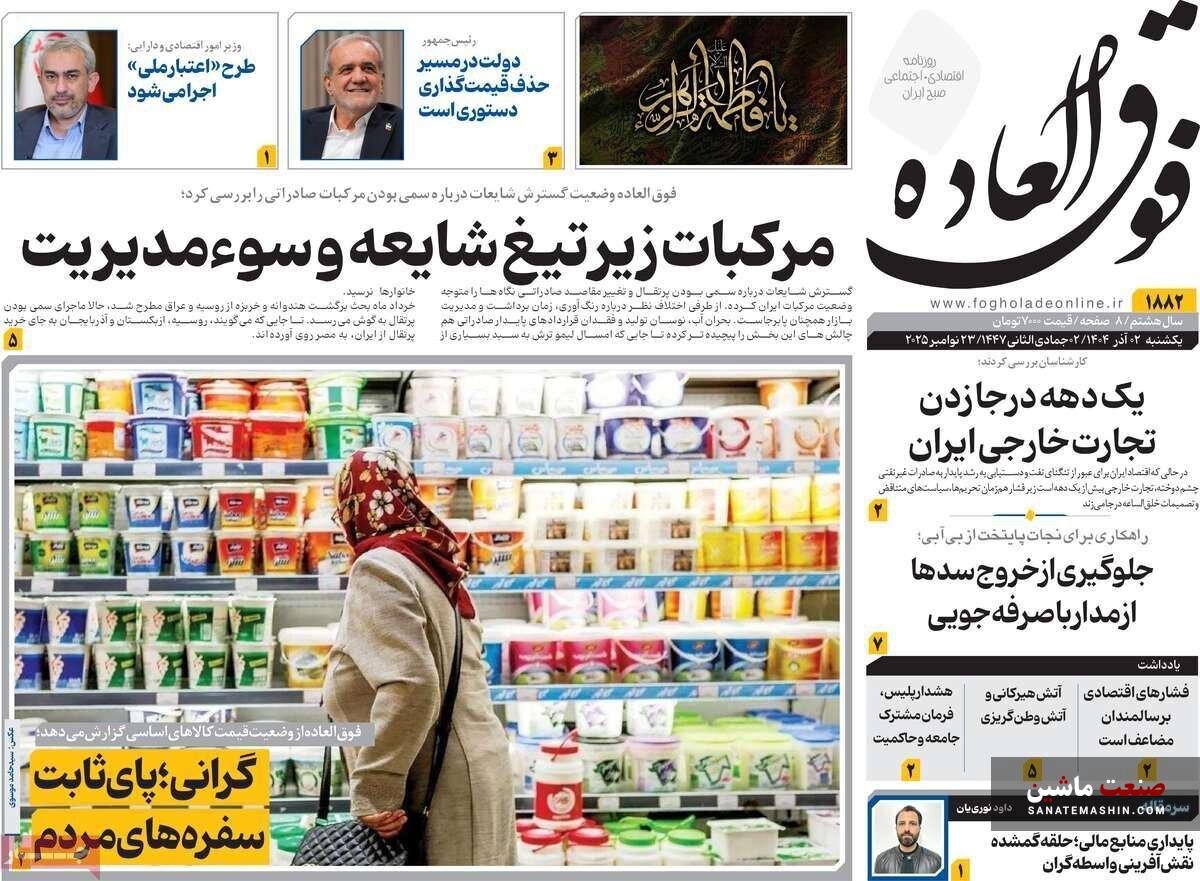 صفحه نخست روزنامه های اقتصادی 1 آذر 1404