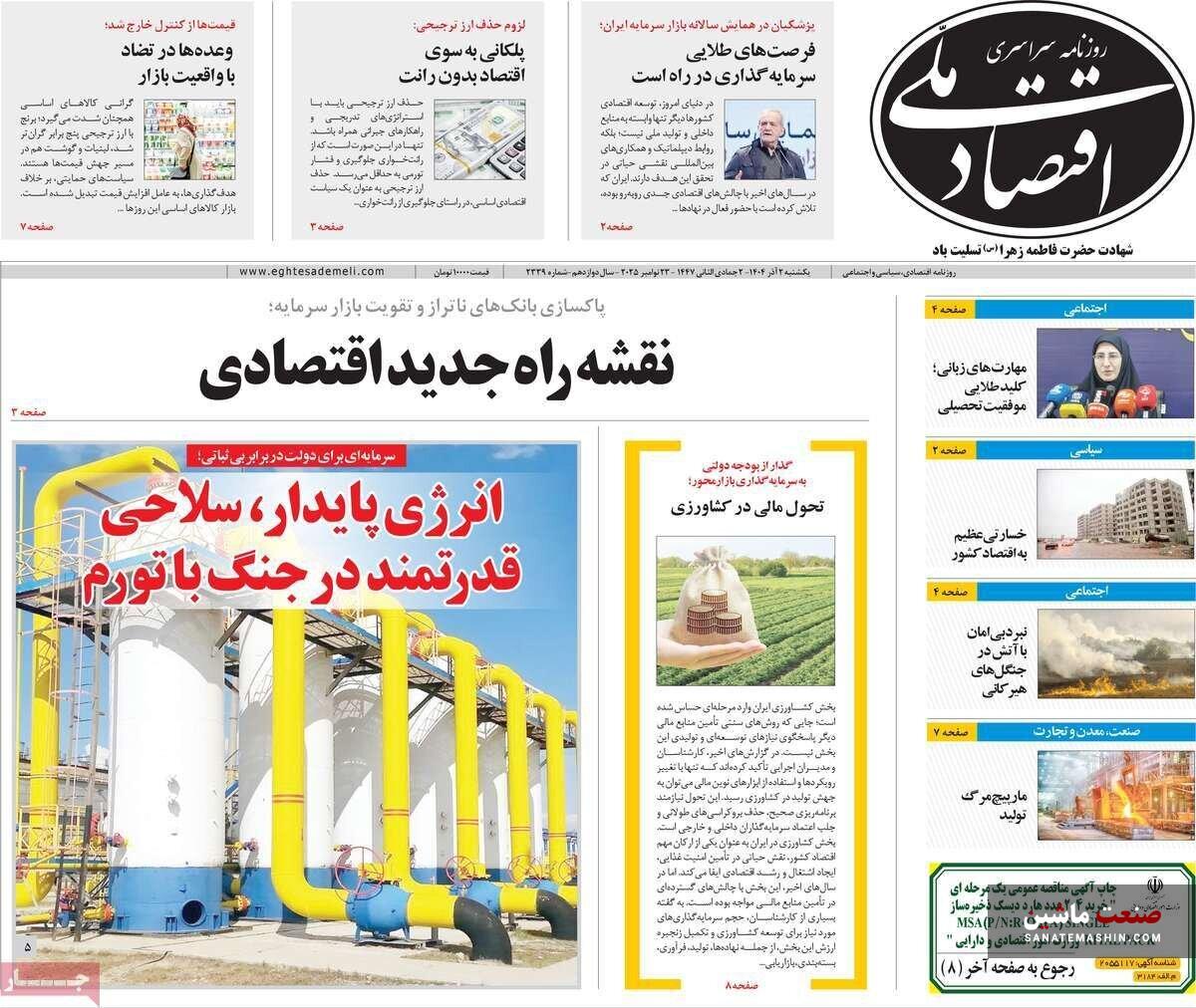 صفحه نخست روزنامه های اقتصادی 25 آبان 1404