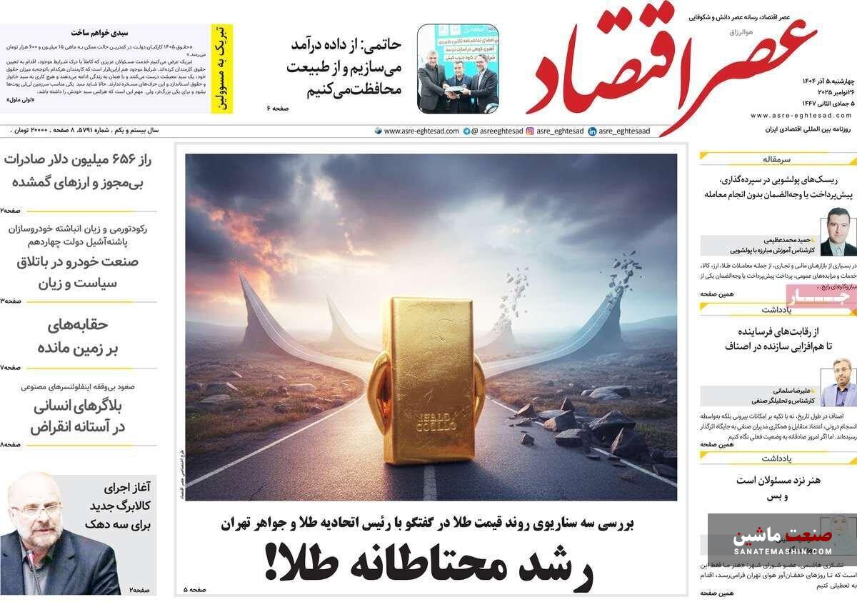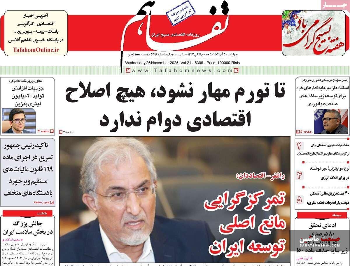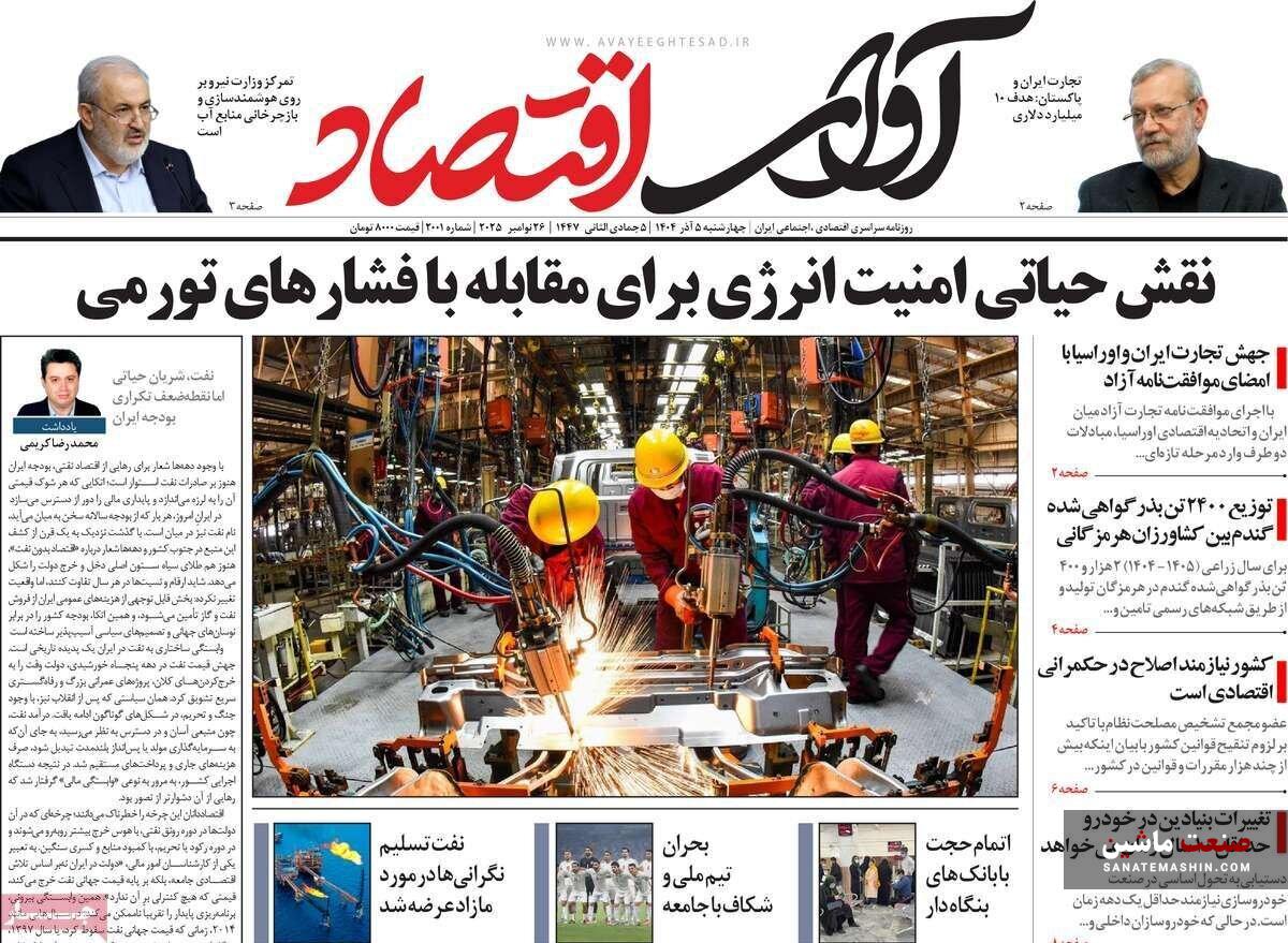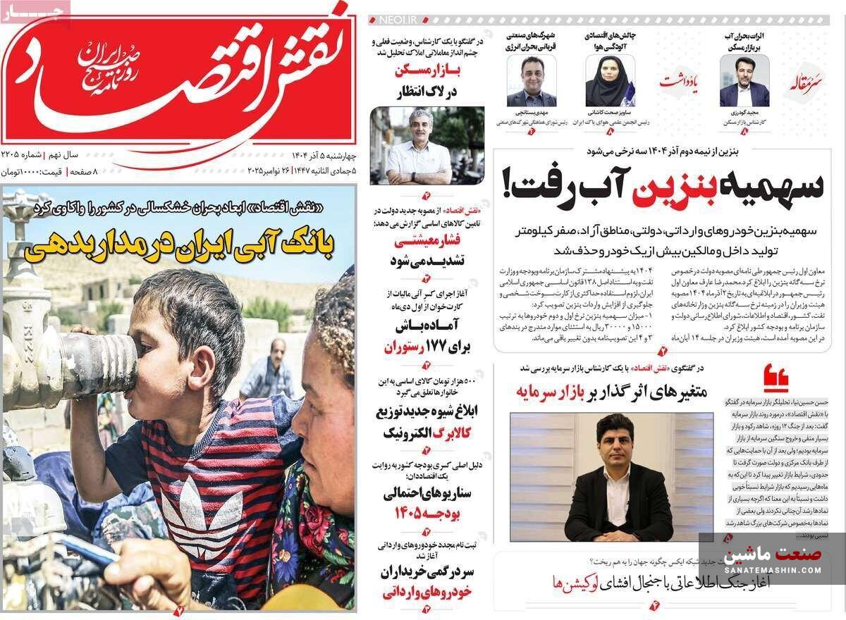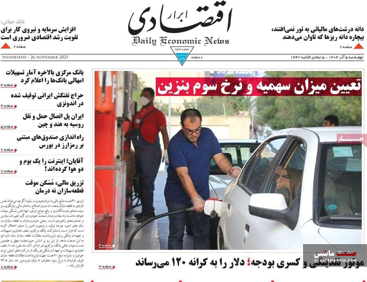 صفحه نخست روزنامه های اقتصادی 26 آبان 1404