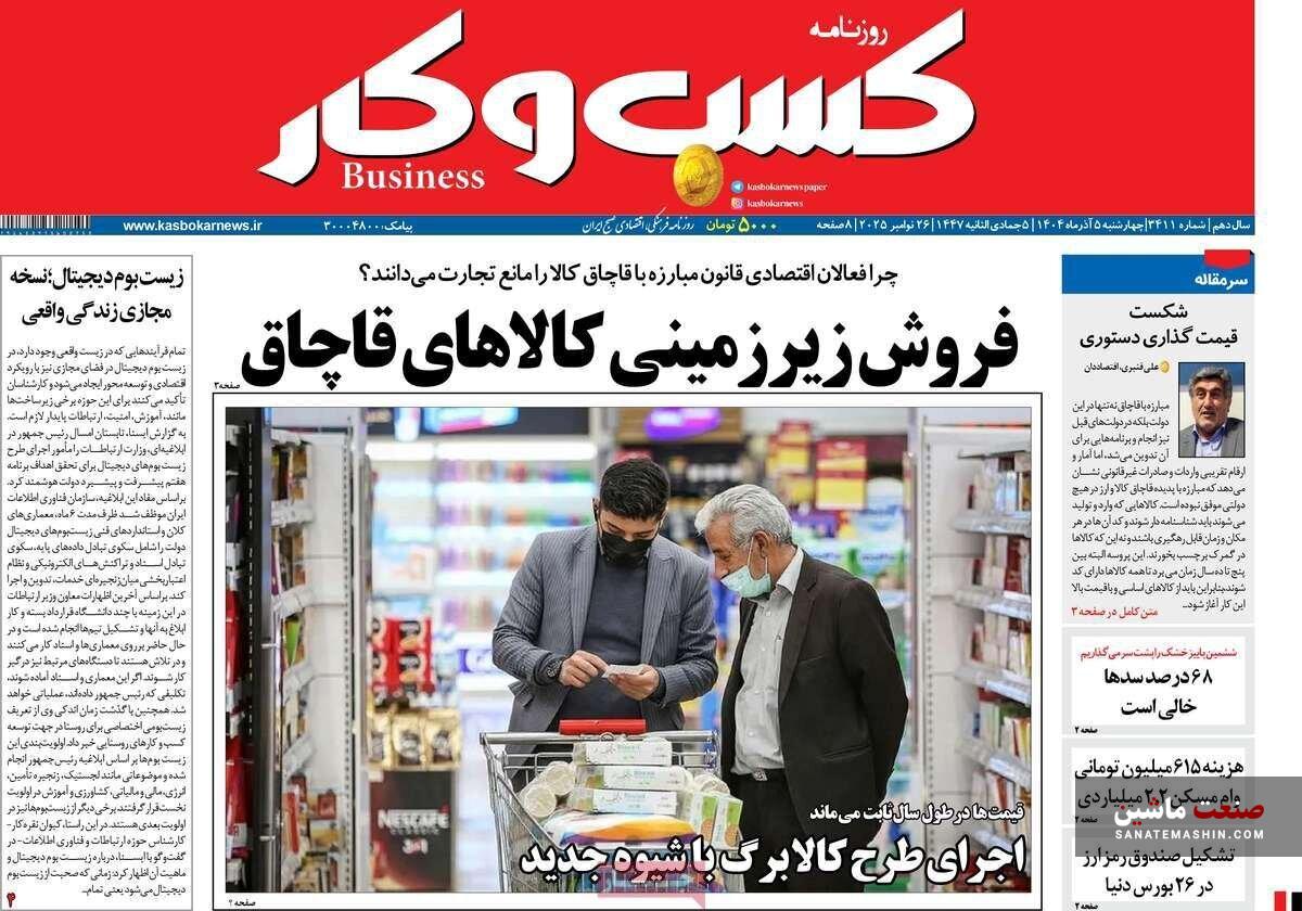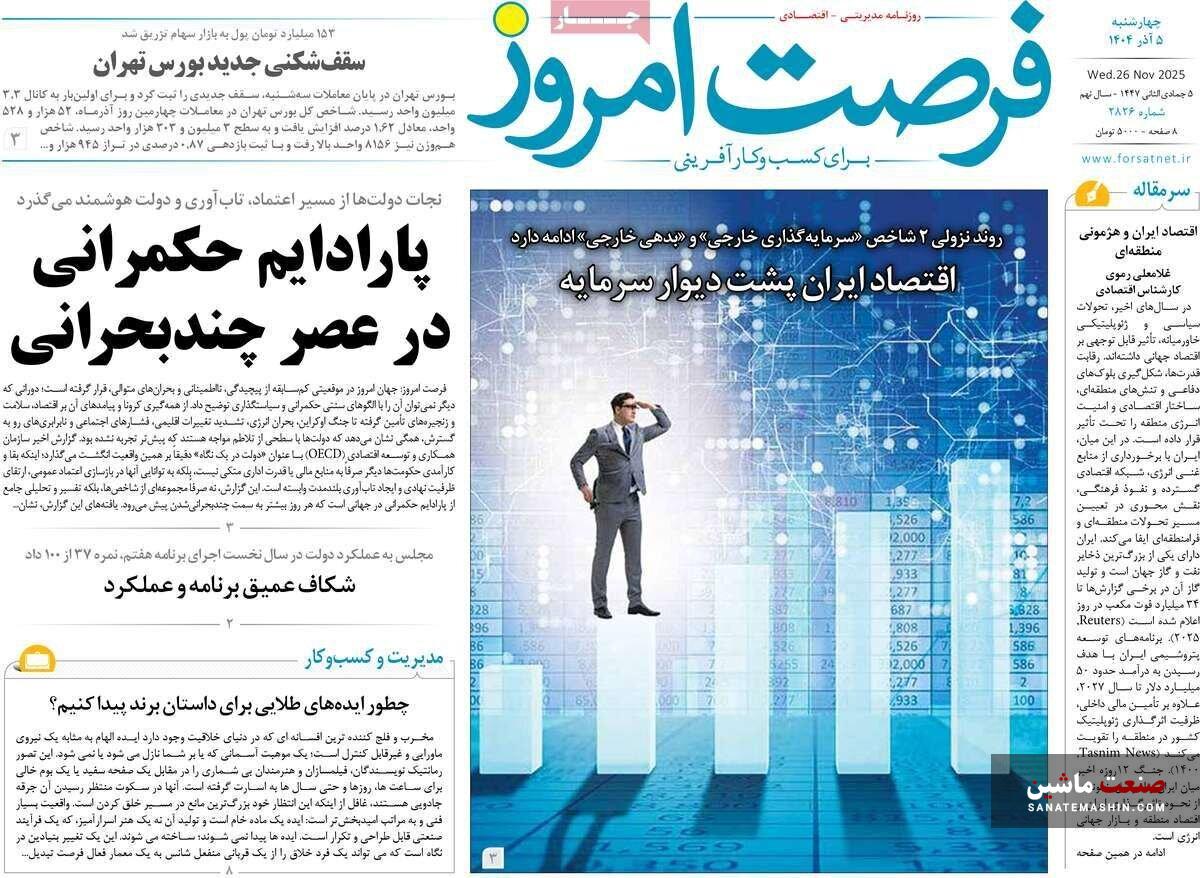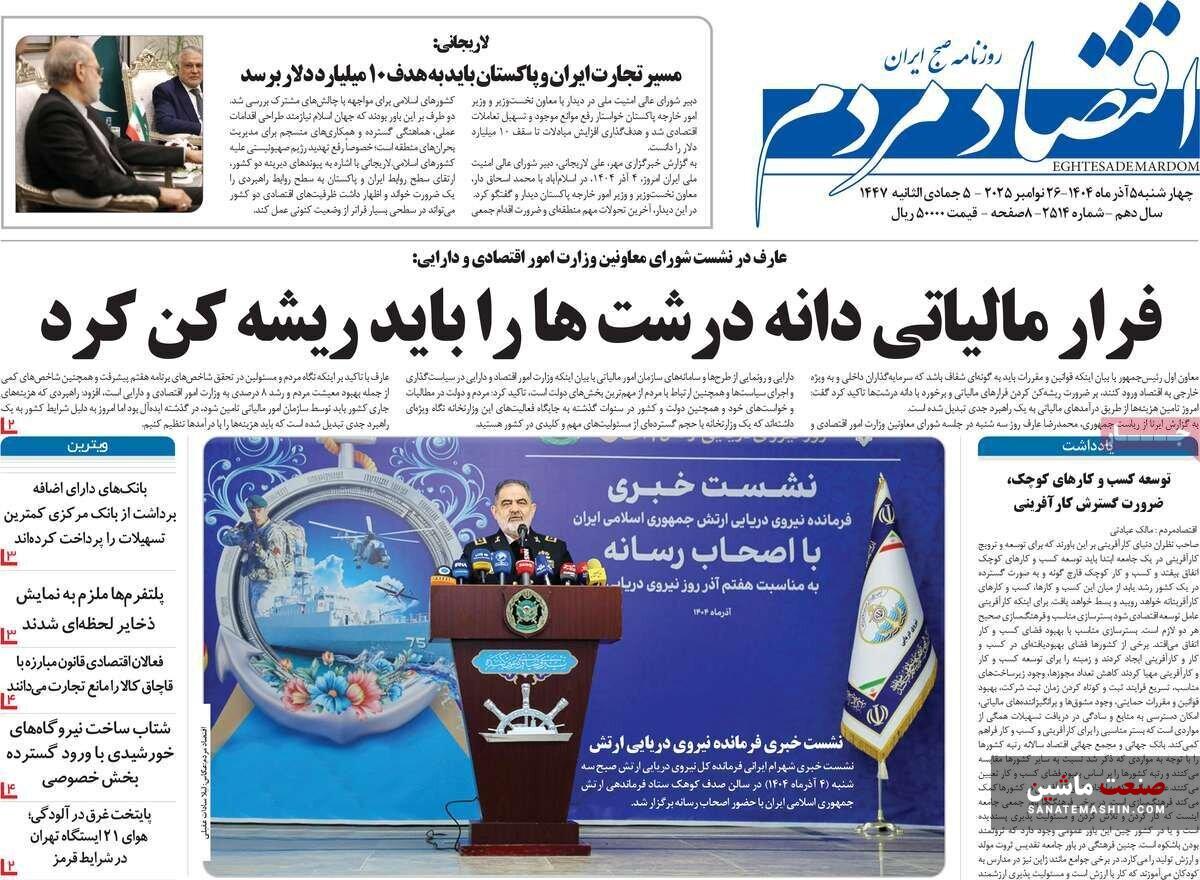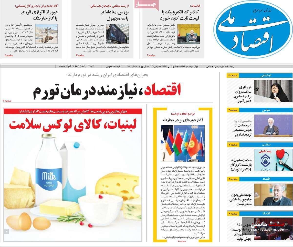 صفحه نخست روزنامه های اقتصادی 26 آبان 1404