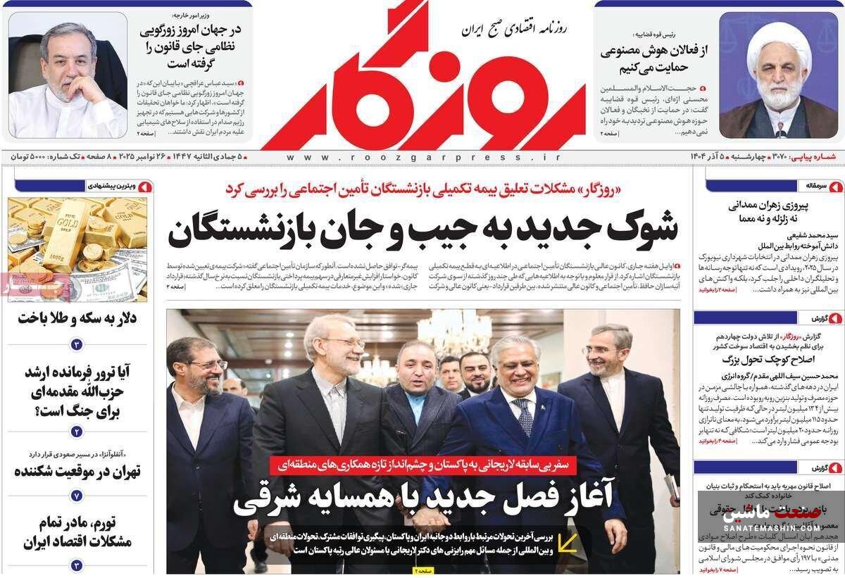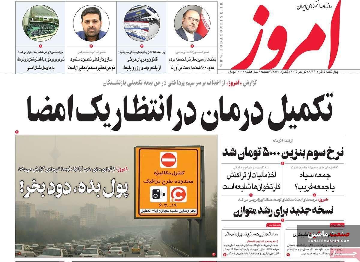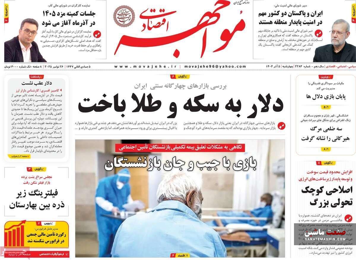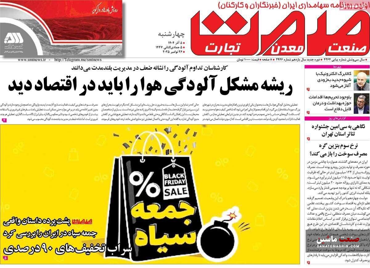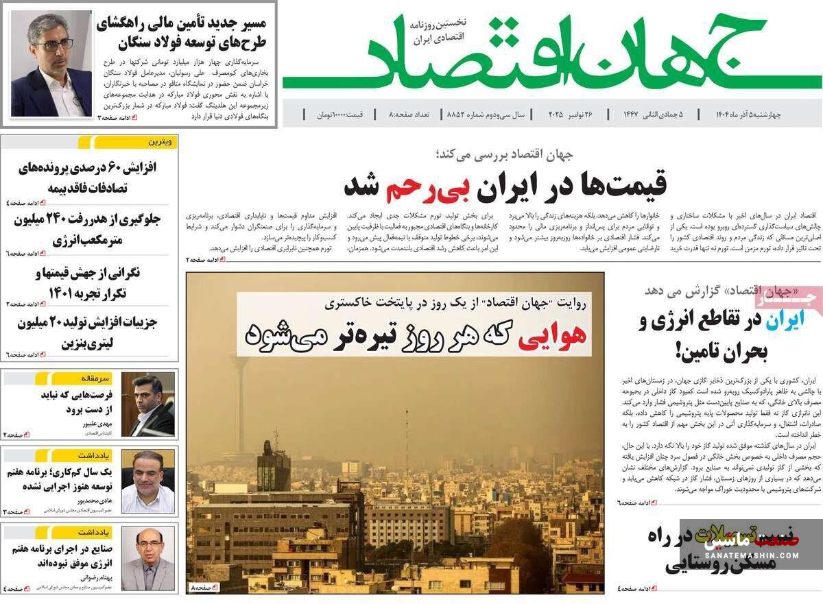 صفحه نخست روزنامه های اقتصادی 26 آبان 1404