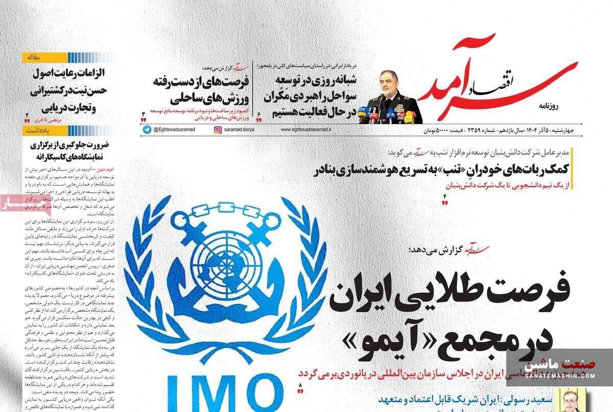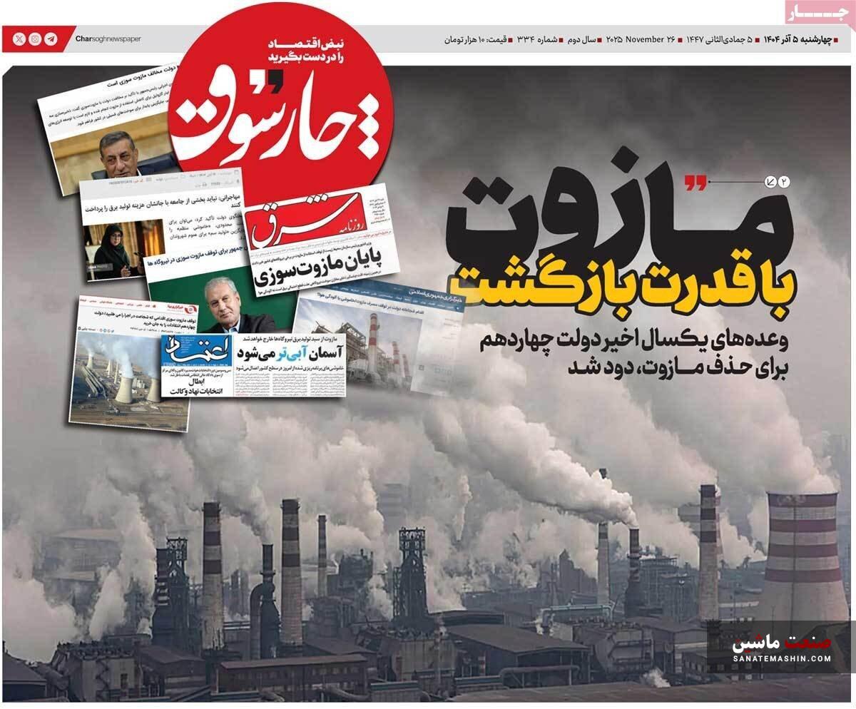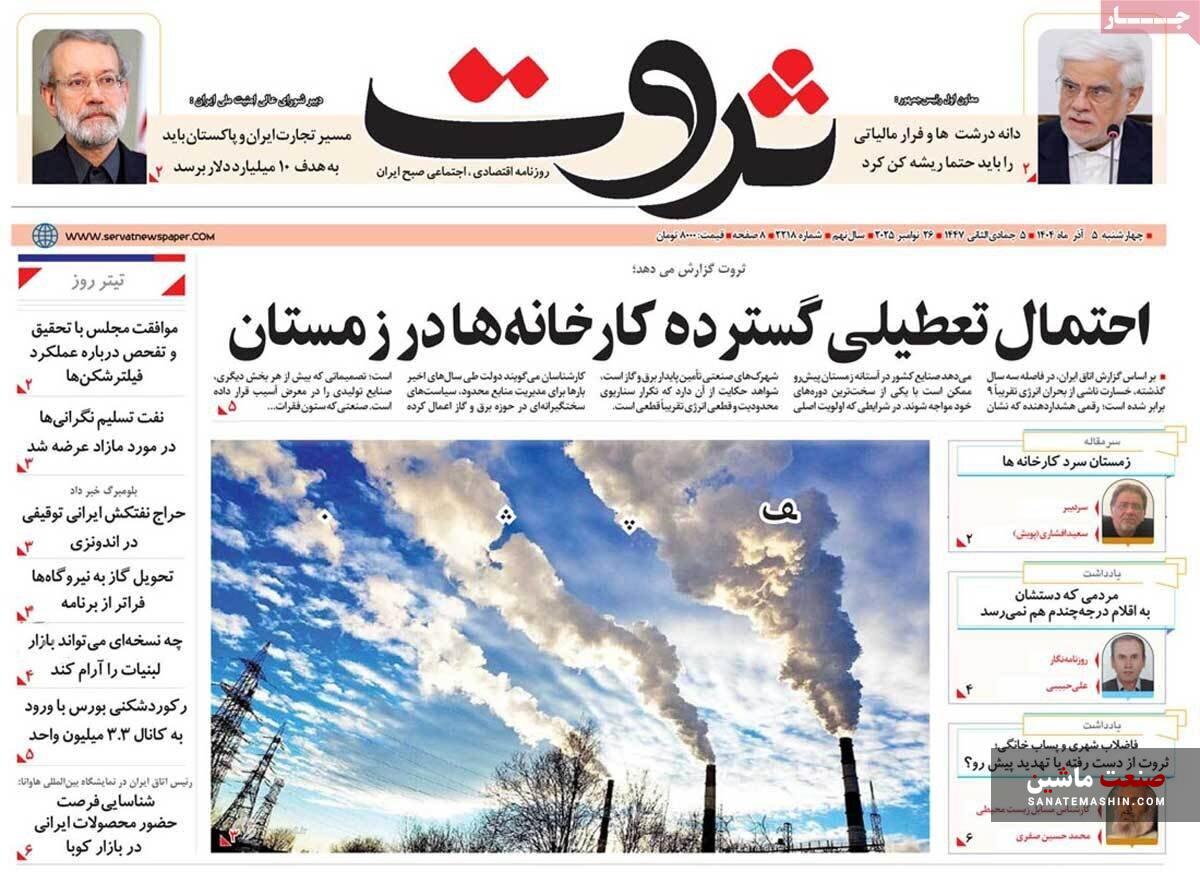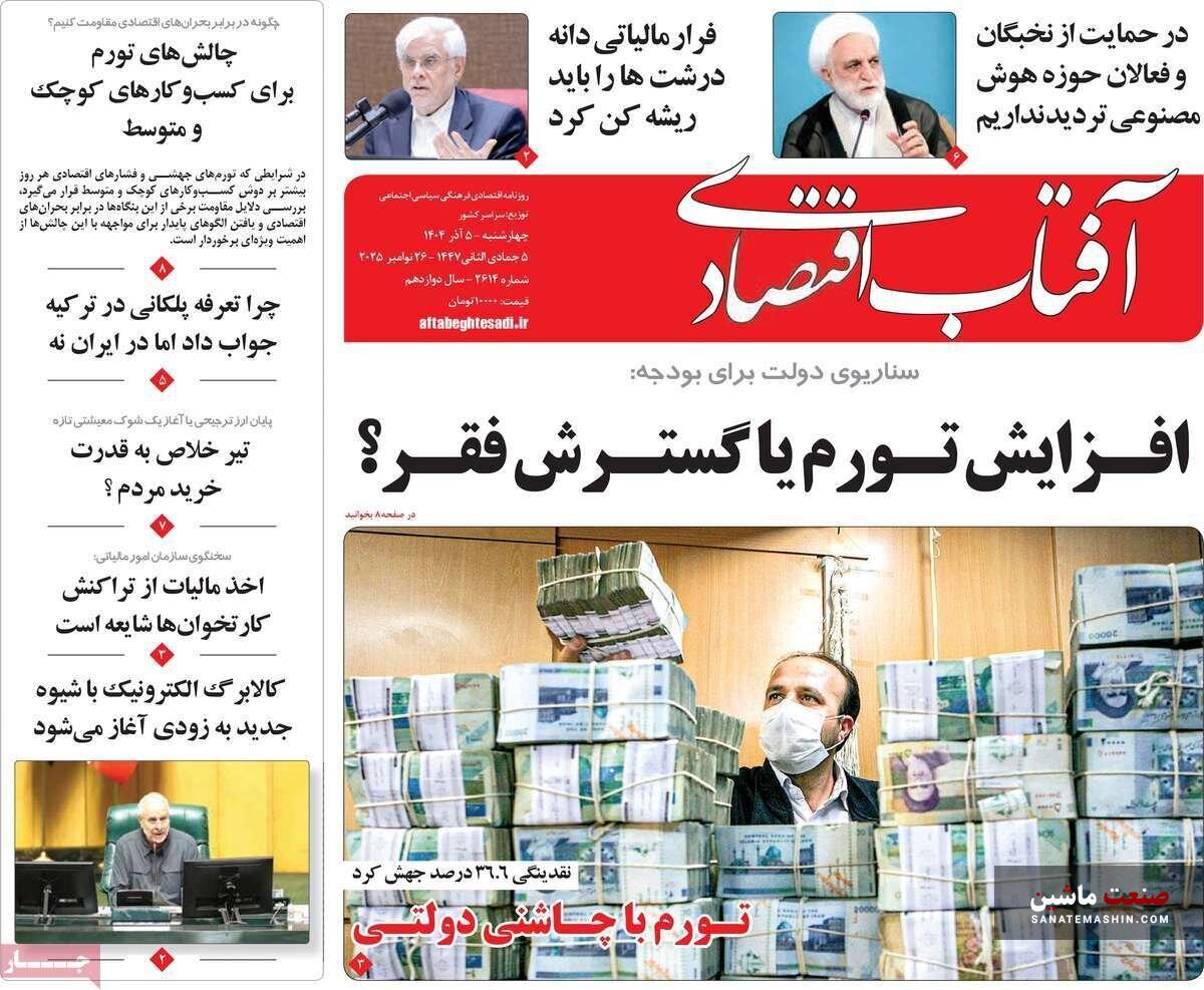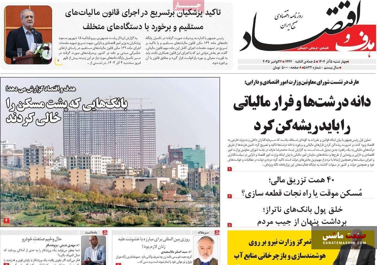 صفحه نخست روزنامه های اقتصادی 26 آبان 1404