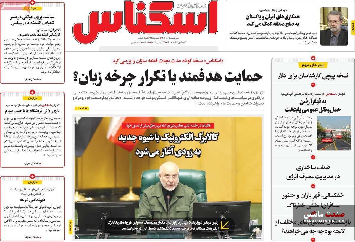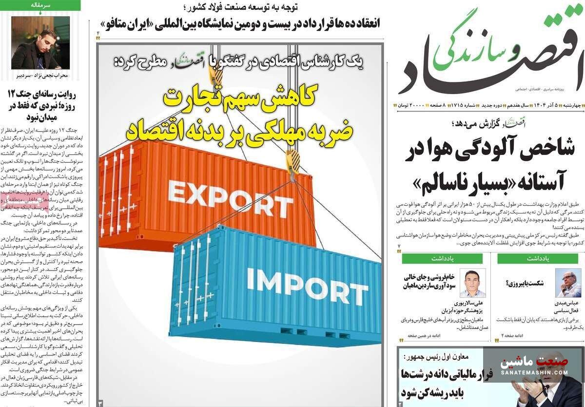 صفحه نخست روزنامه های اقتصادی 4 آذر 1404