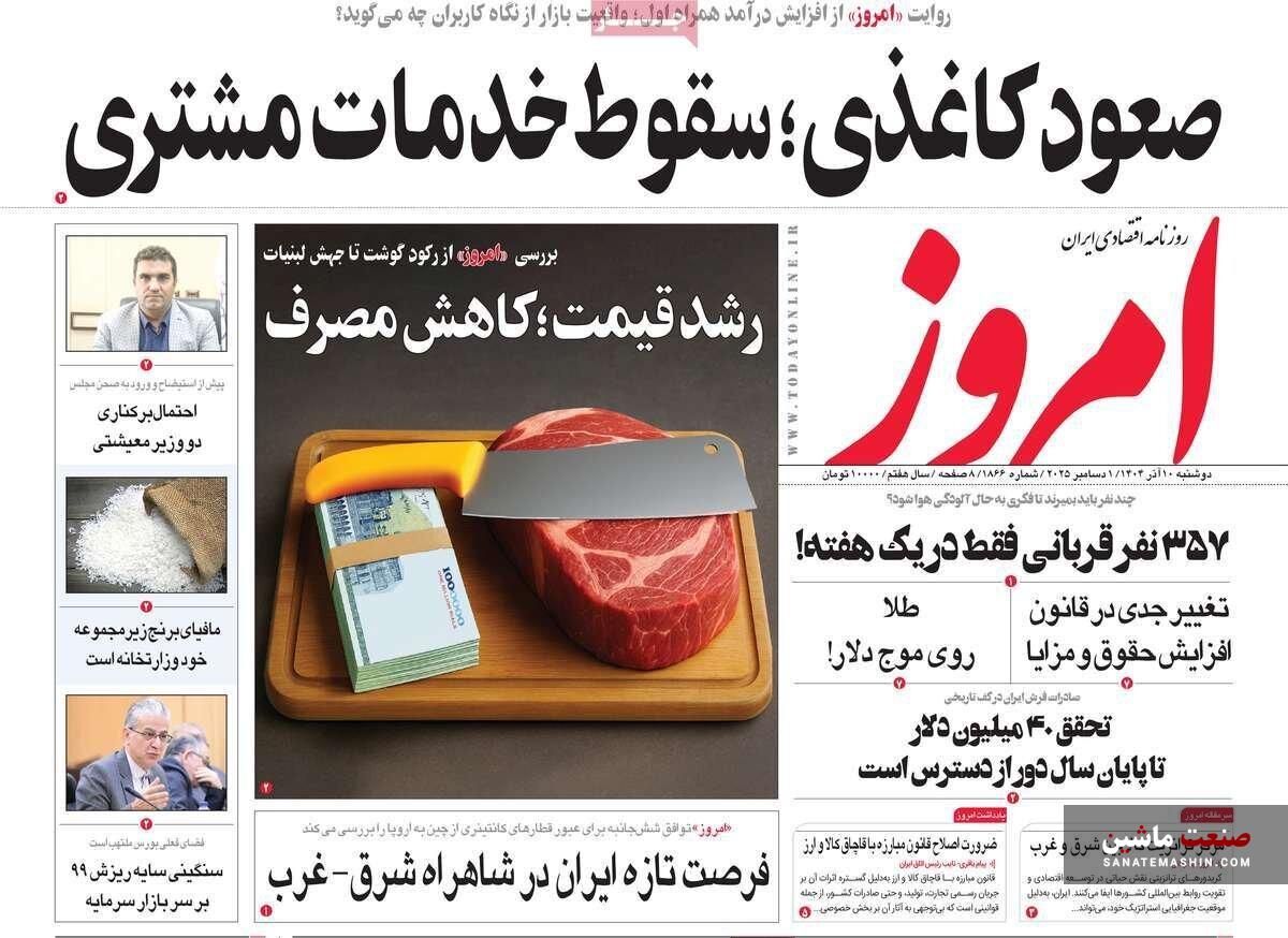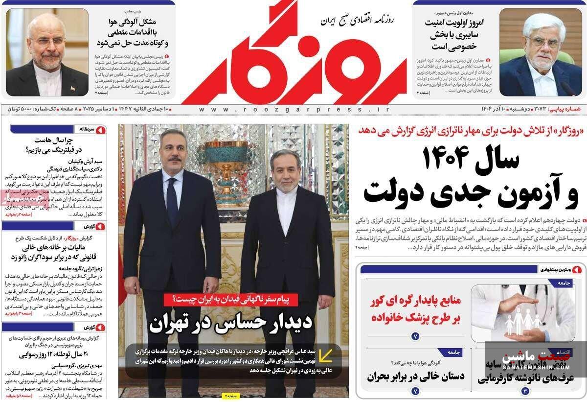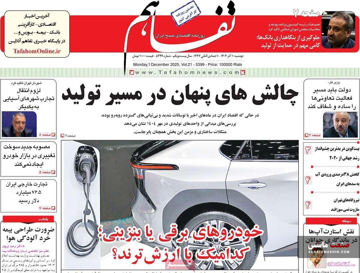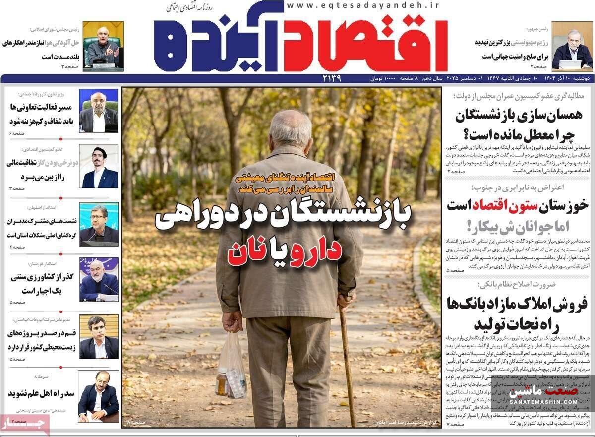 صفحه نخست روزنامه های اقتصادی 11 آذر 1404