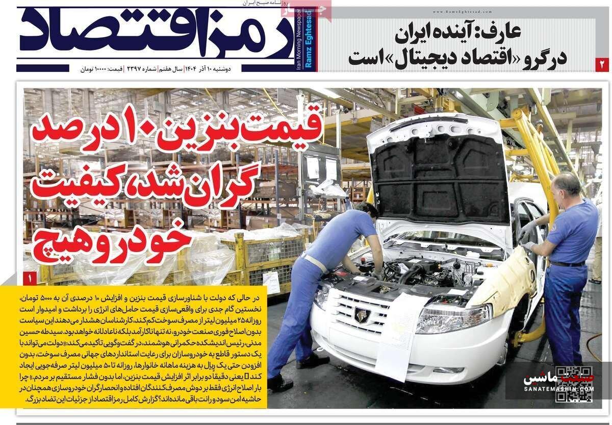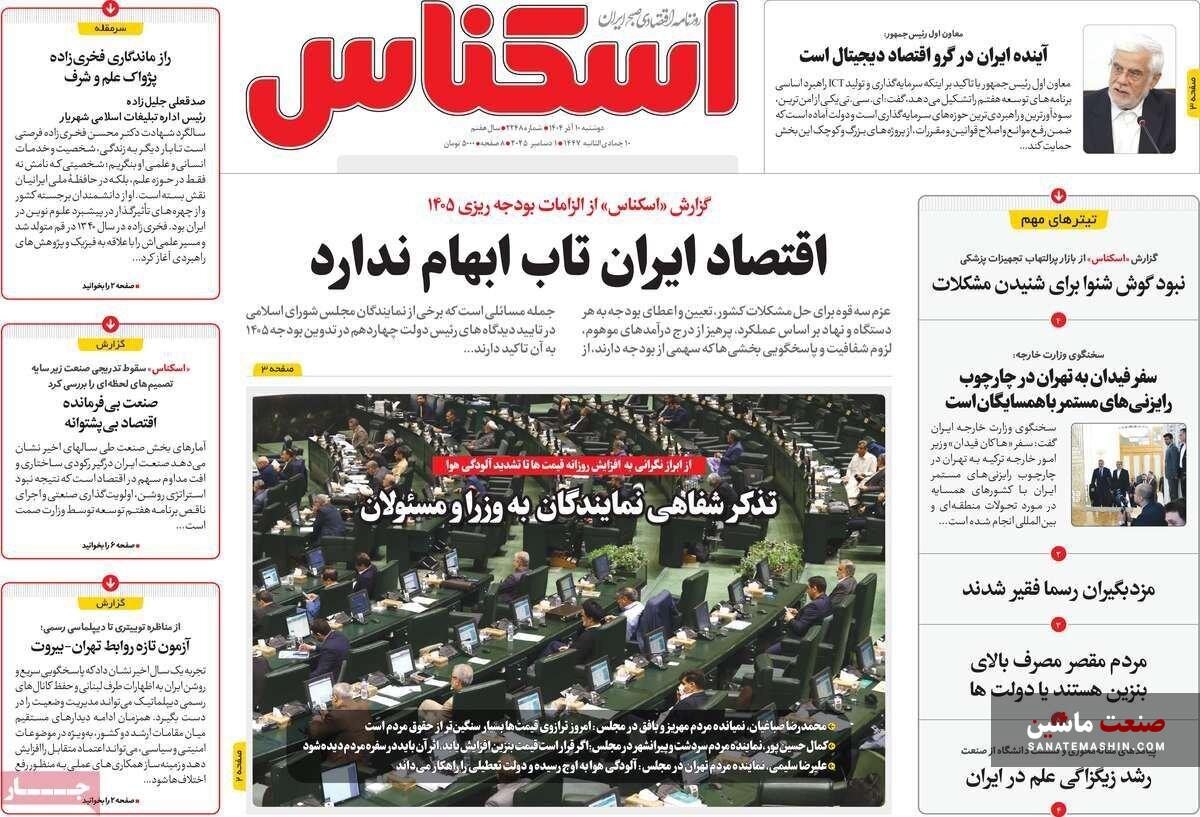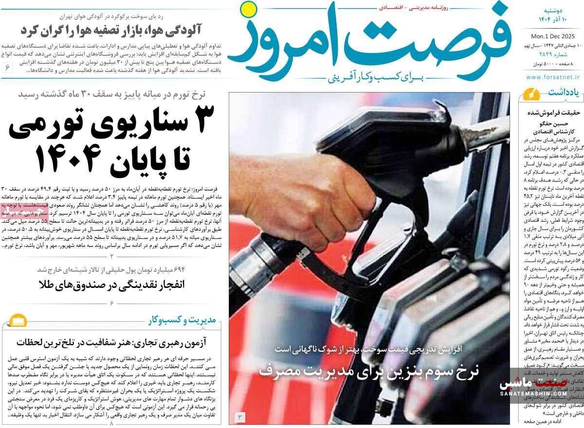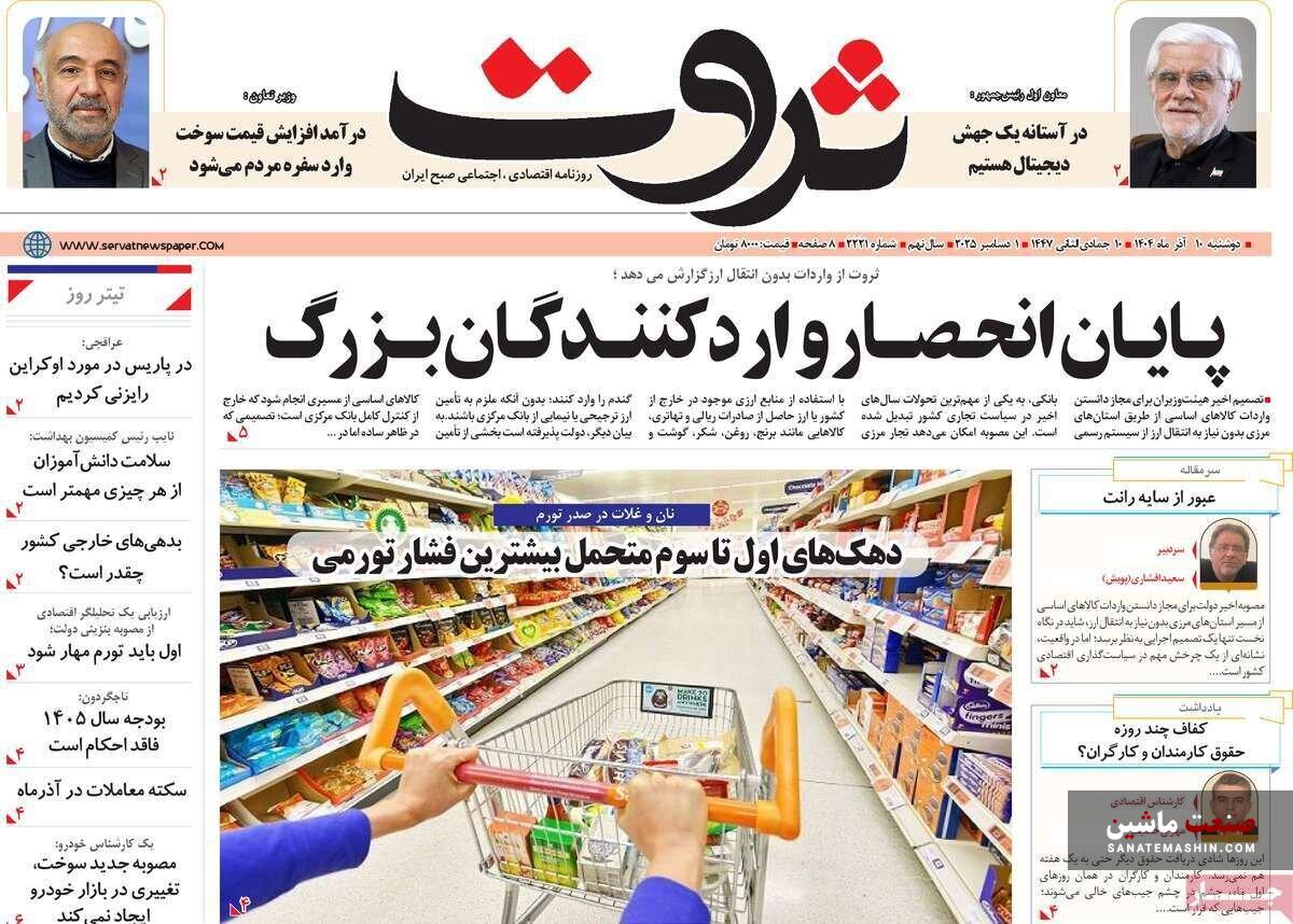 صفحه نخست روزنامه های اقتصادی 11 آذر 1404