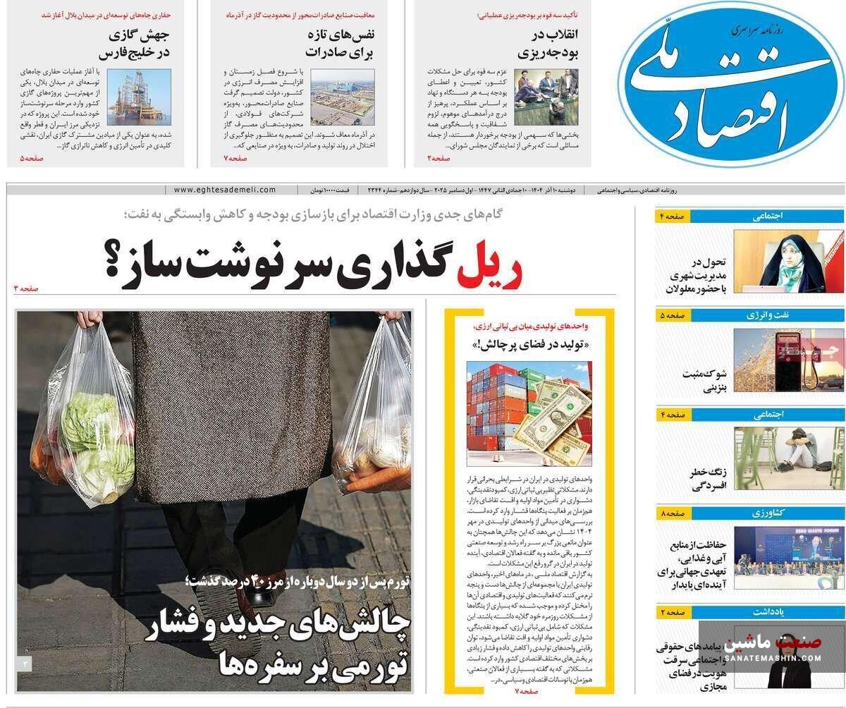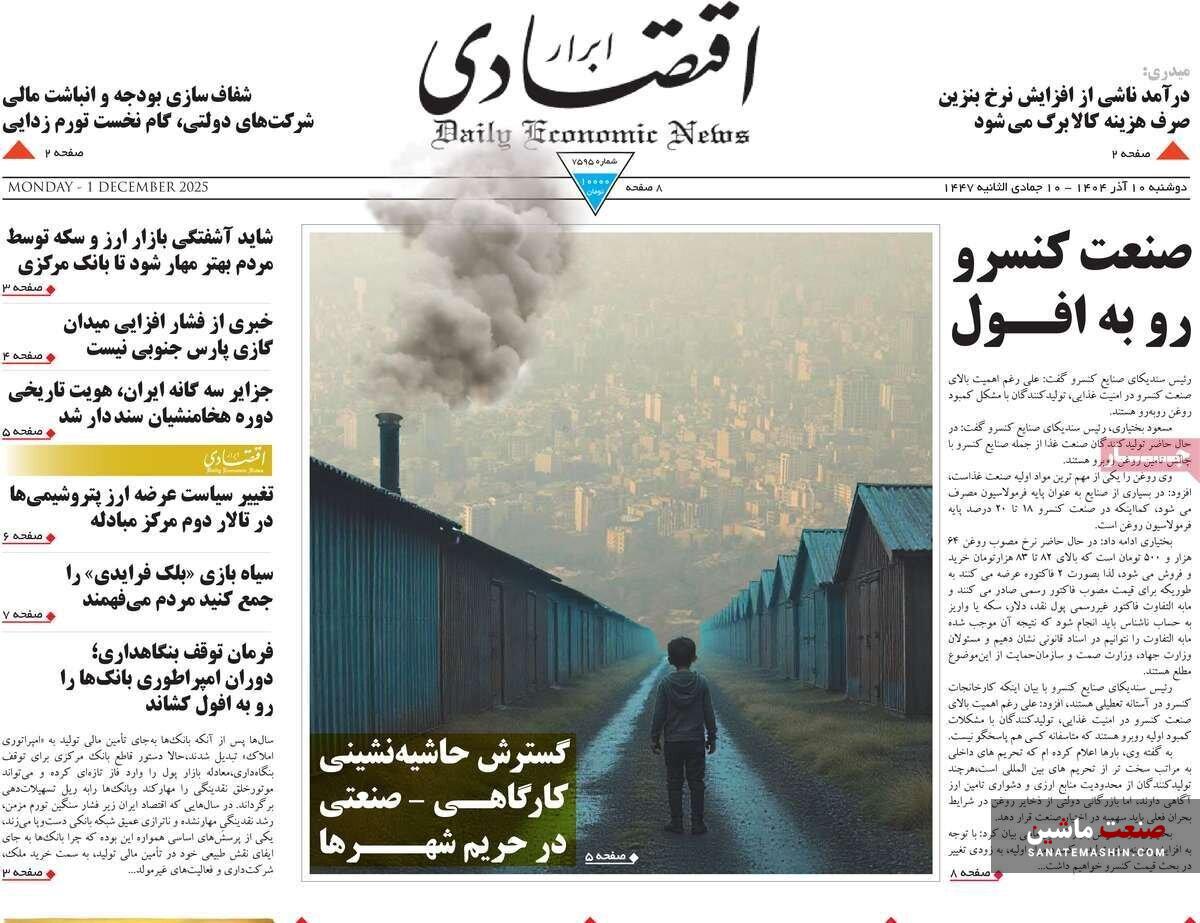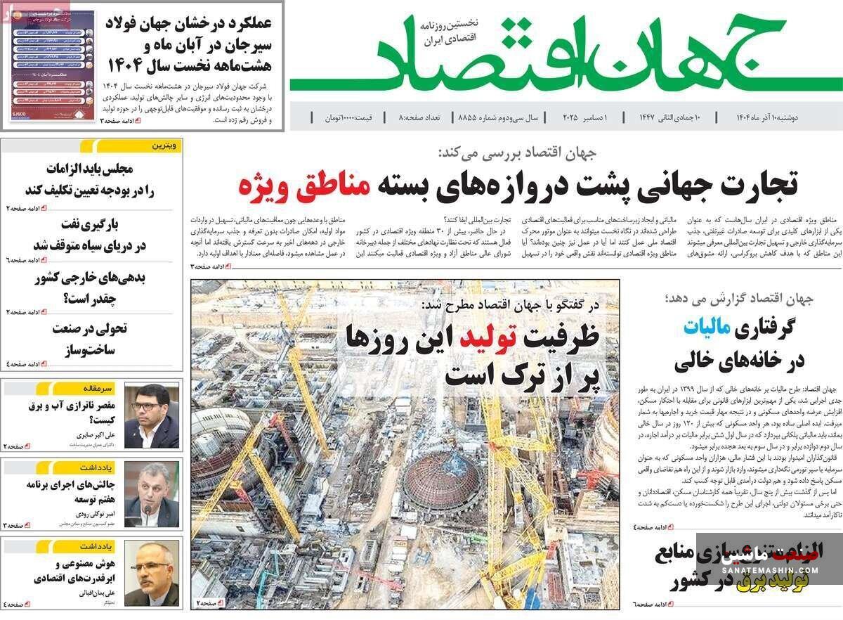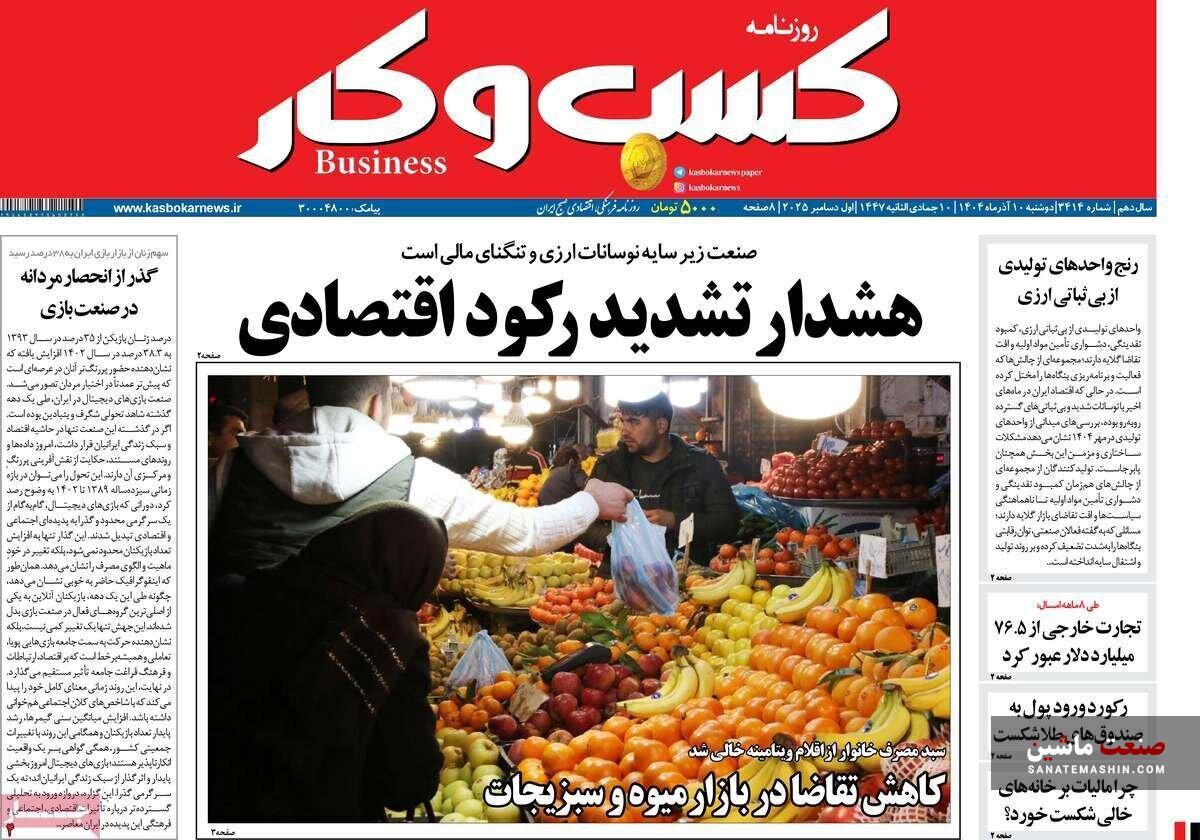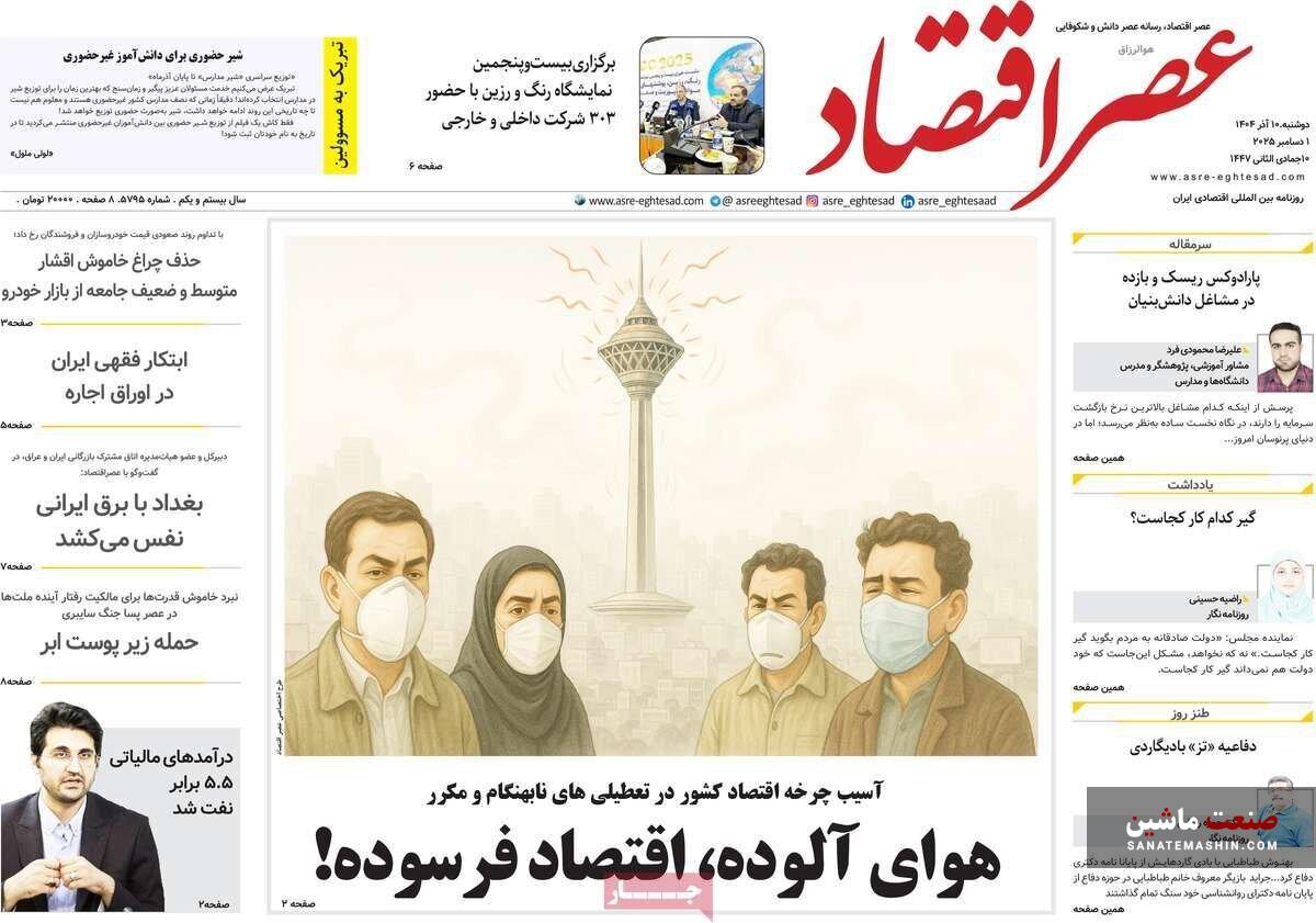 صفحه نخست روزنامه های اقتصادی 9 آذر 1404