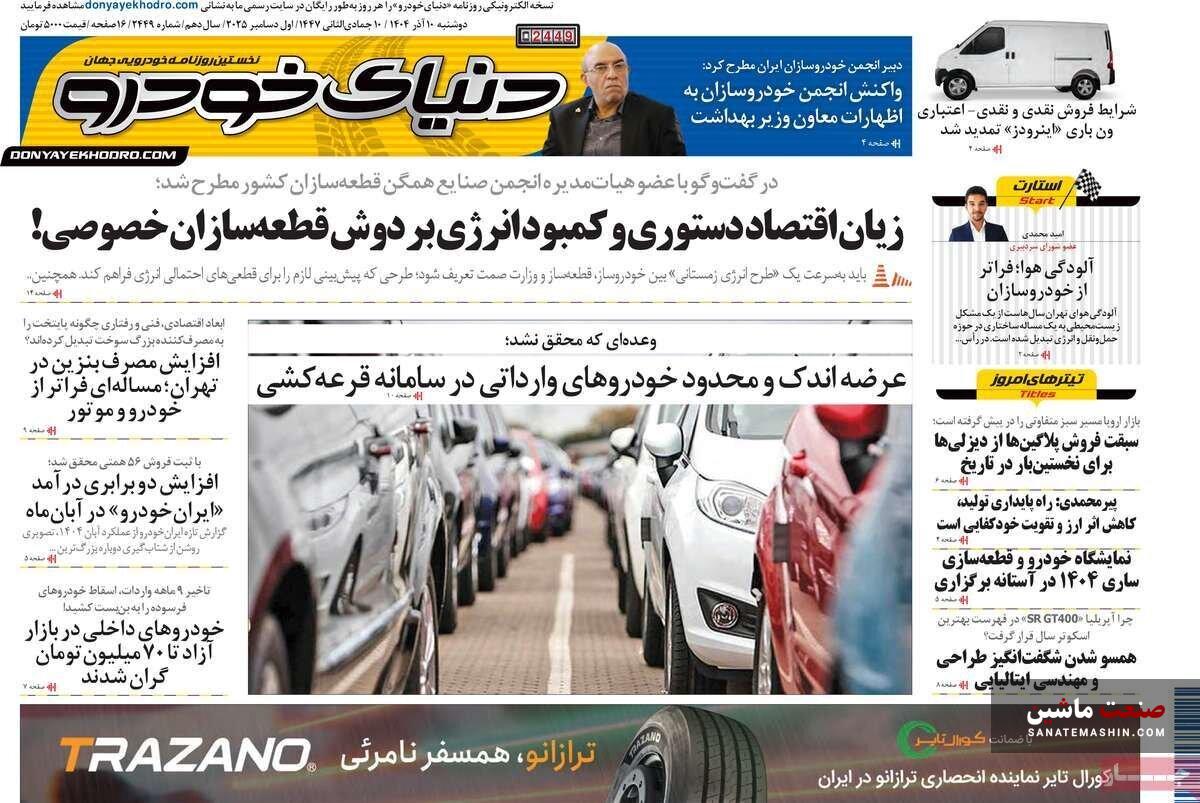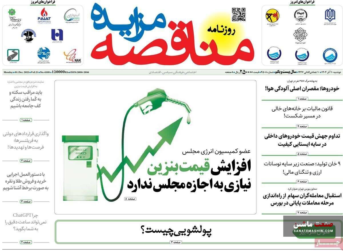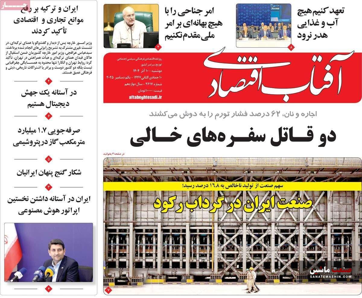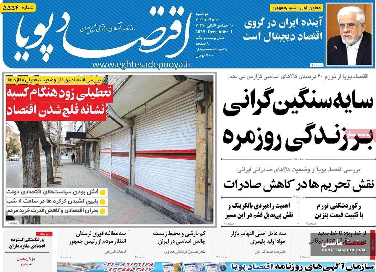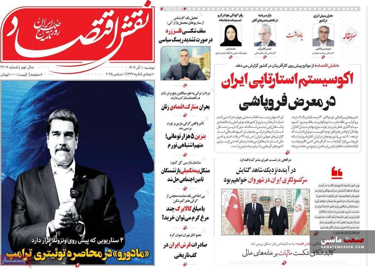 صفحه نخست روزنامه های اقتصادی 9 آذر 1404